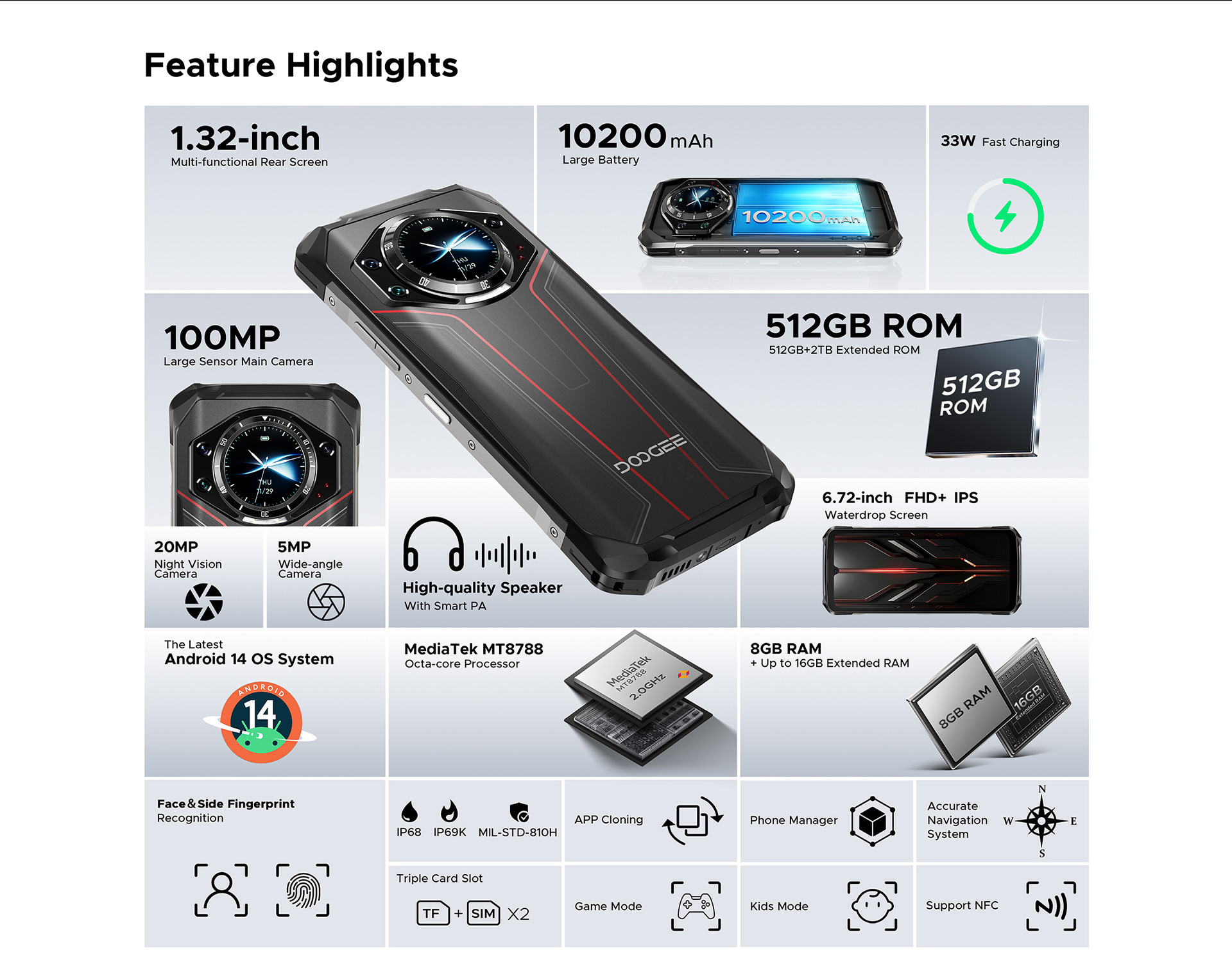 Doug DOOGEE s119 8 512GBg 6.72 "10100mAh NFC 3 개 휴대 전화 홍콩