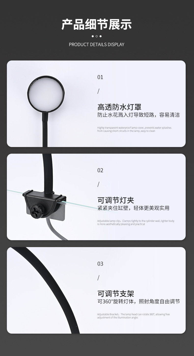 물 잔디 클립 램프 알루미늄 합금 led 수족관 조명 물 잔디 브래킷 램프 밝게하는 물고기 탱크 램프 조류 탱크 조명 작은 다운 라이트