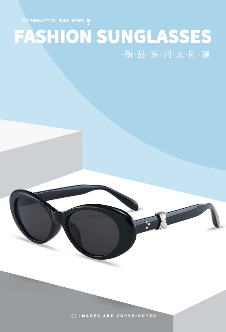 오스만 10007 한국 스타일 레트로 타원형 고양이 눈 선글라스 여성의 독특한 트렌디 착용 일반 선글라스스토어 가기