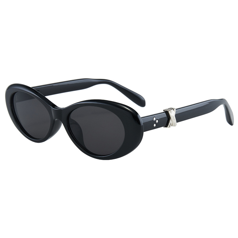 오스만 10007 한국 스타일 레트로 타원형 고양이 눈 선글라스 여성의 독특한 트렌디 착용 일반 선글라스