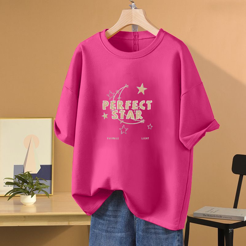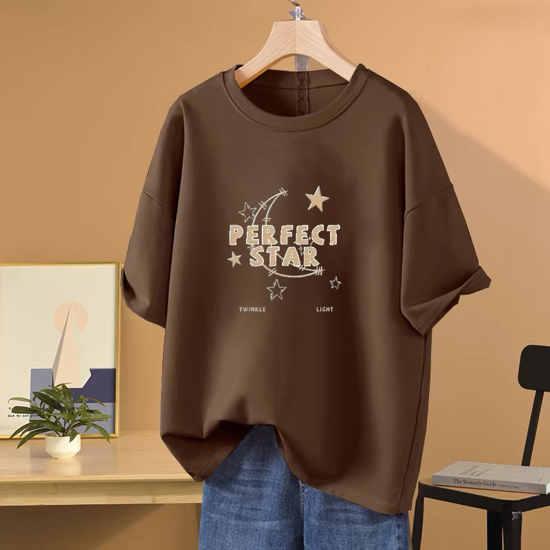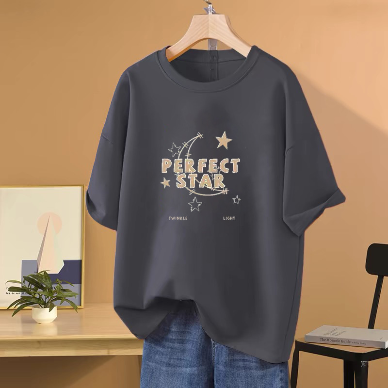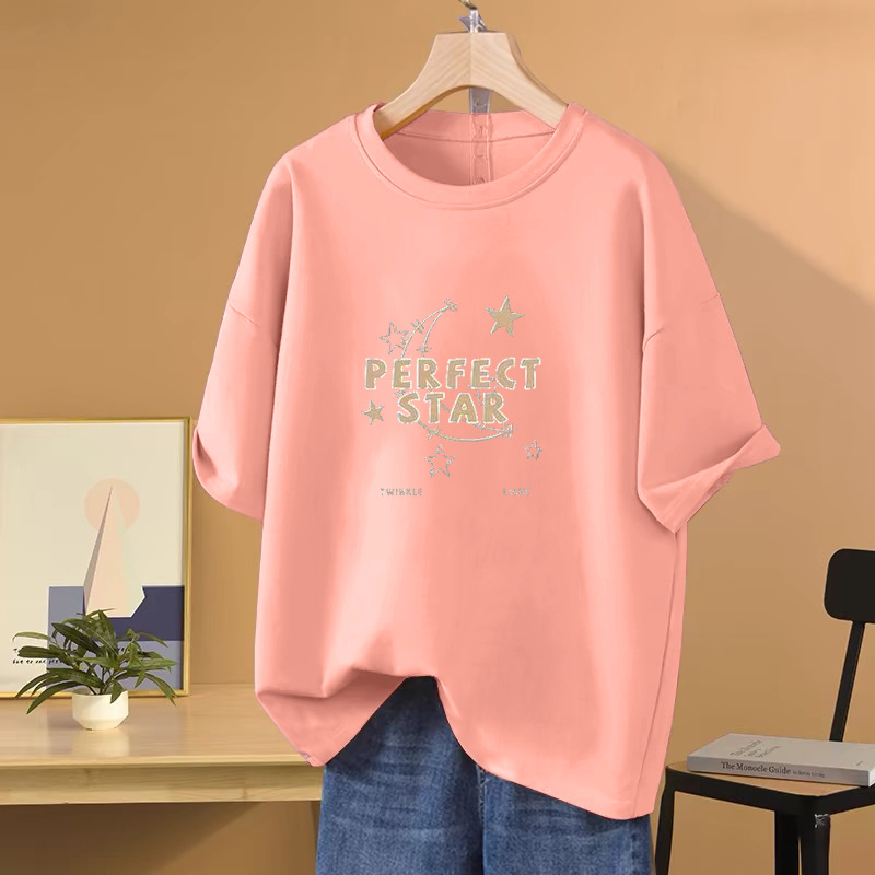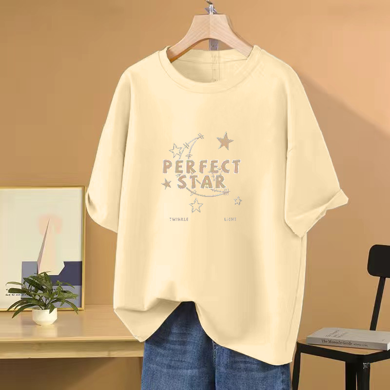하이 퀄리티 100 면 2025 뉴 여름 루즈 올 매치 쇼트 티셔츠 여성 웨스턴 스타일 올 매치 라운드 넥 하프 슬리브 티셔츠스토어 가기