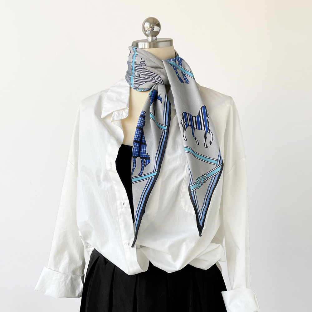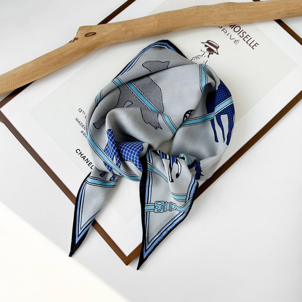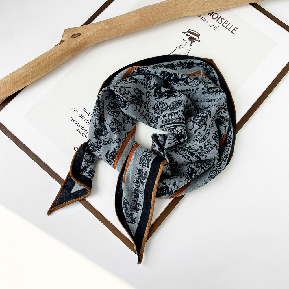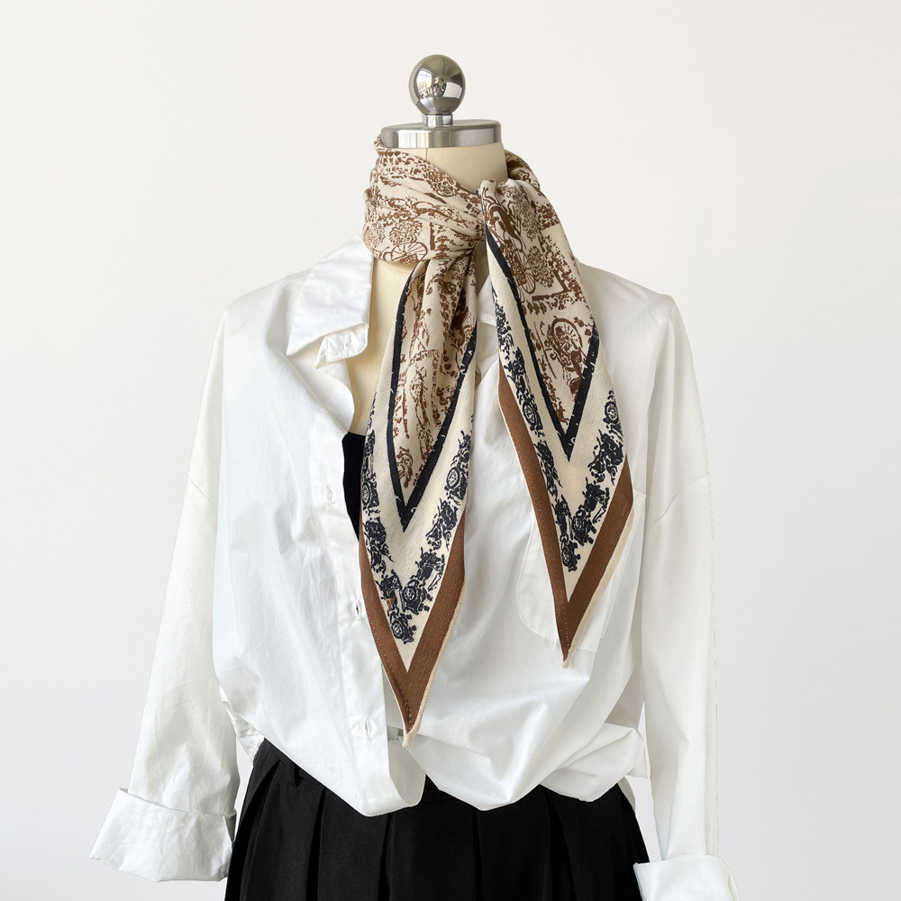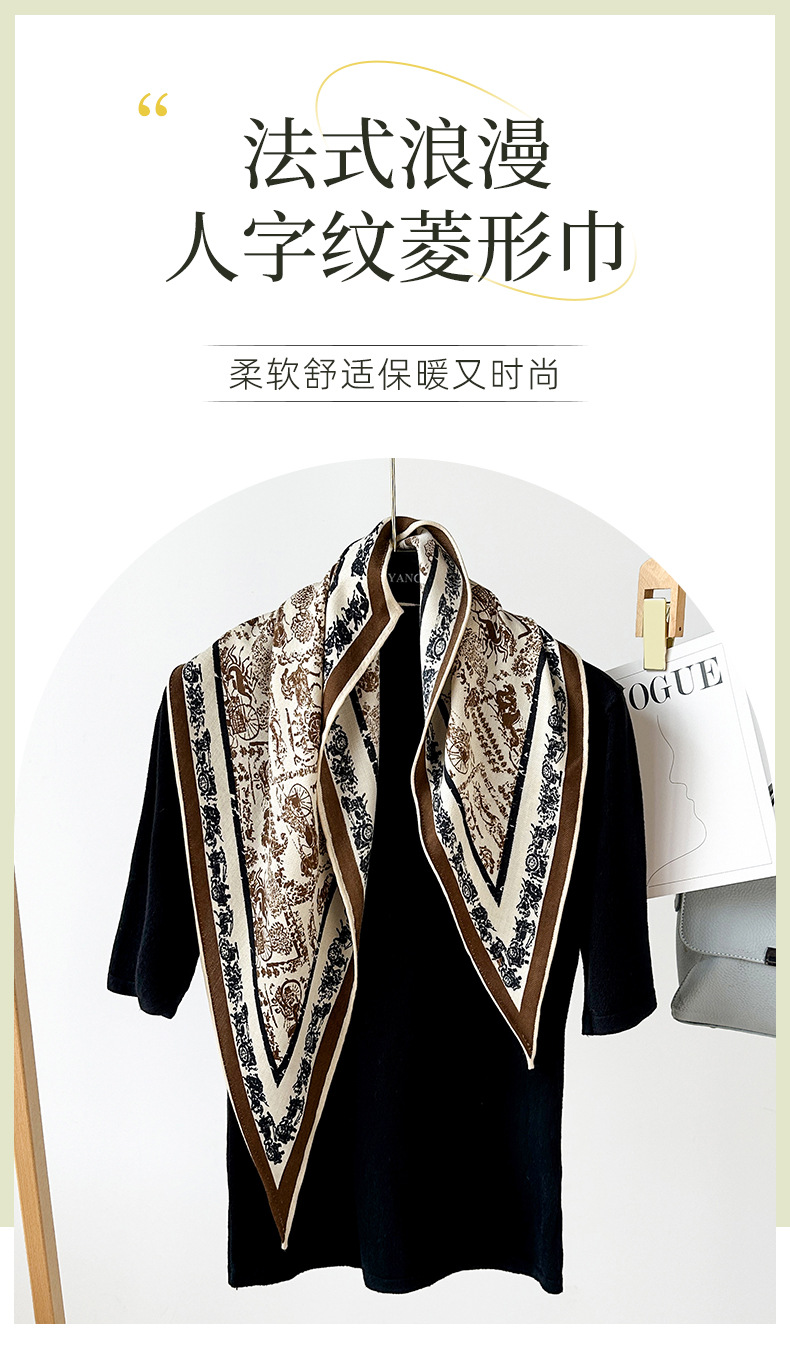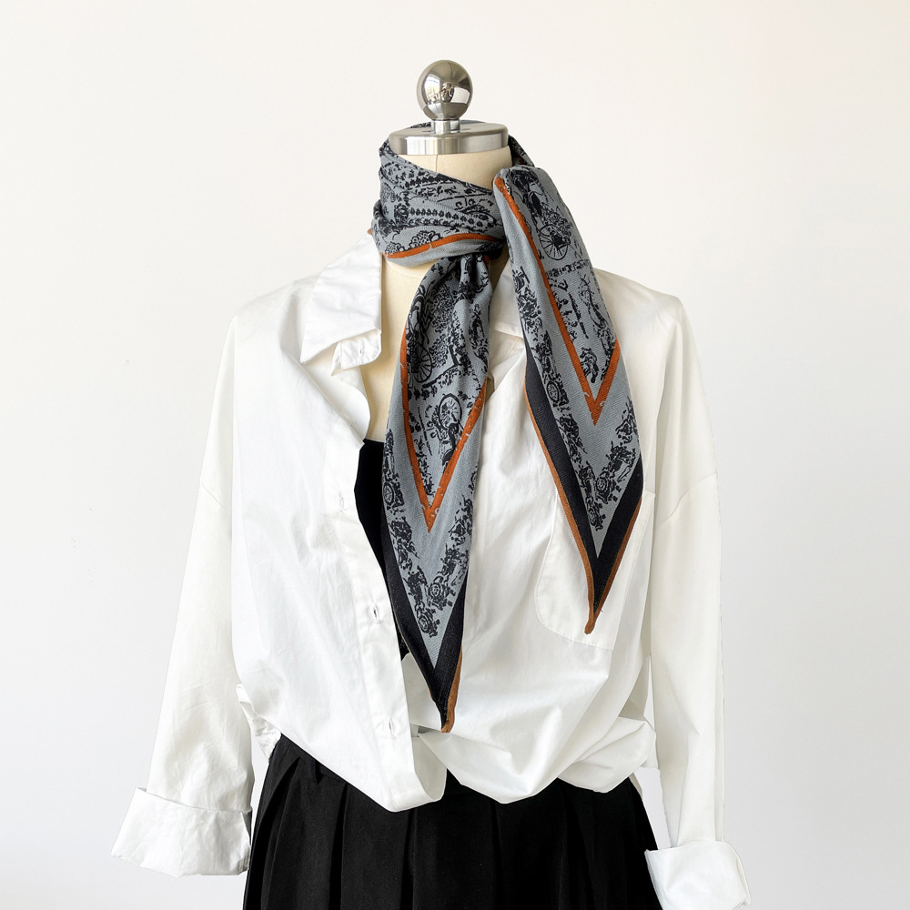 다이아몬드 모양의 작은 실크 스카프, 프랑스 레트로 프린트 헤링본 패턴 스카프, 패셔너블한 머리 스카프, 도매 레트로 스카프