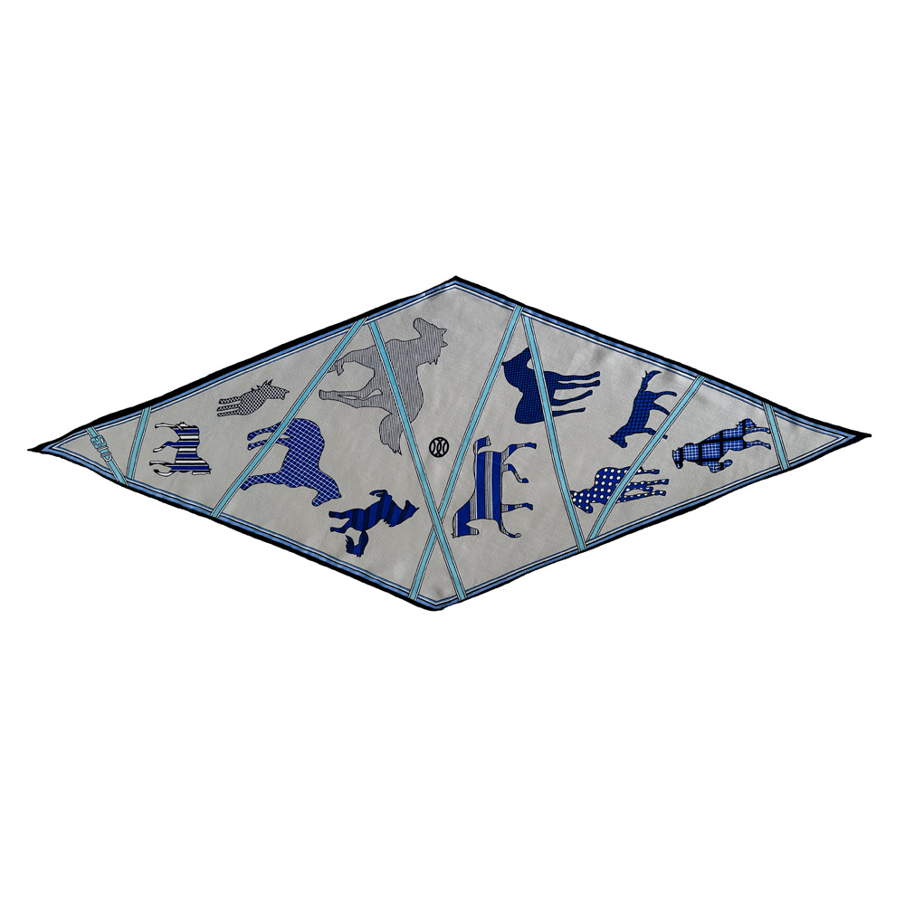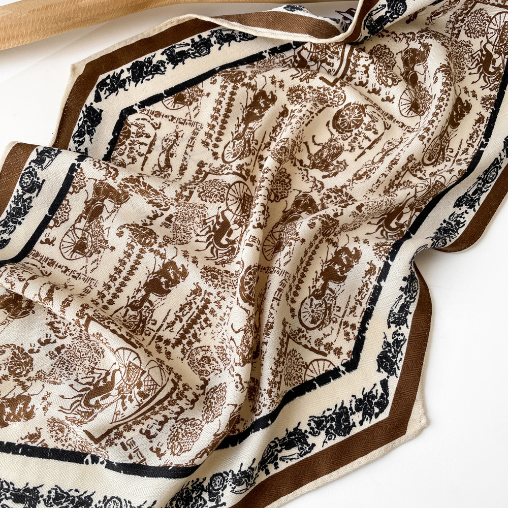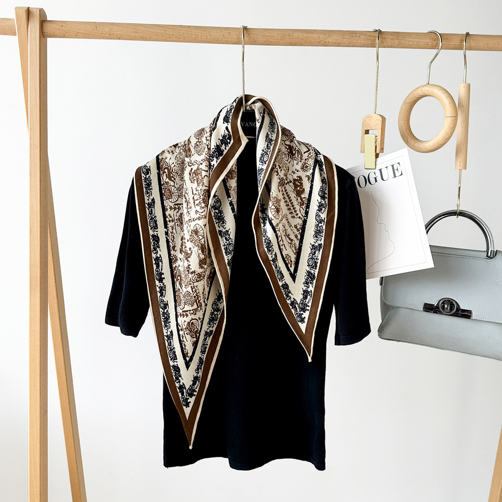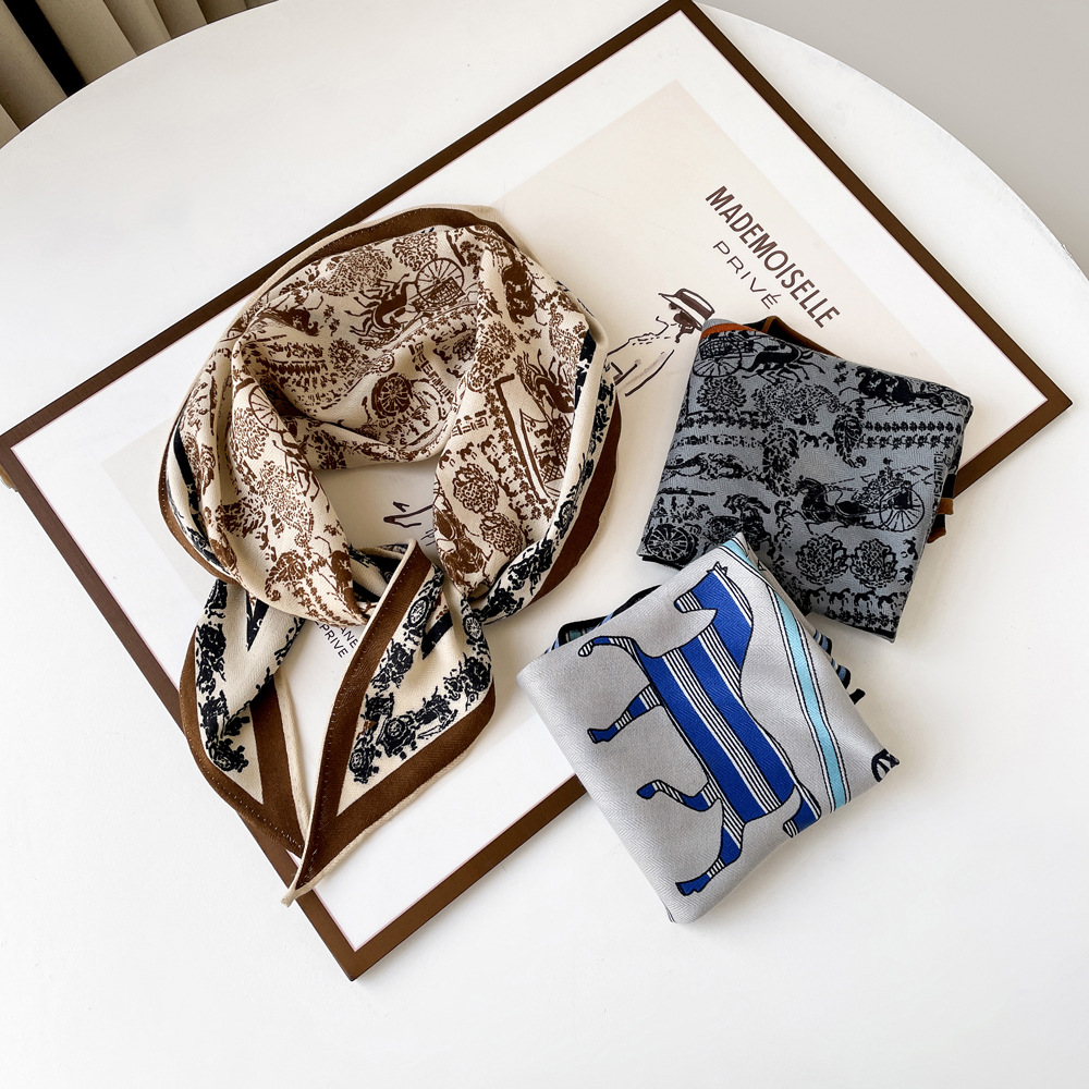 다이아몬드 모양의 작은 실크 스카프, 프랑스 레트로 프린트 헤링본 패턴 스카프, 패셔너블한 머리 스카프, 도매 레트로 스카프스토어 가기