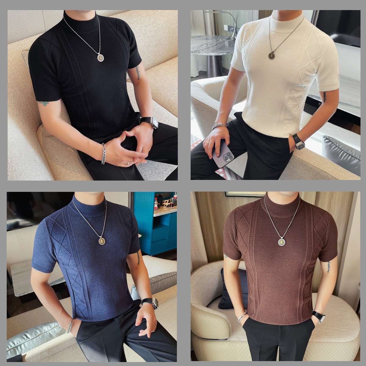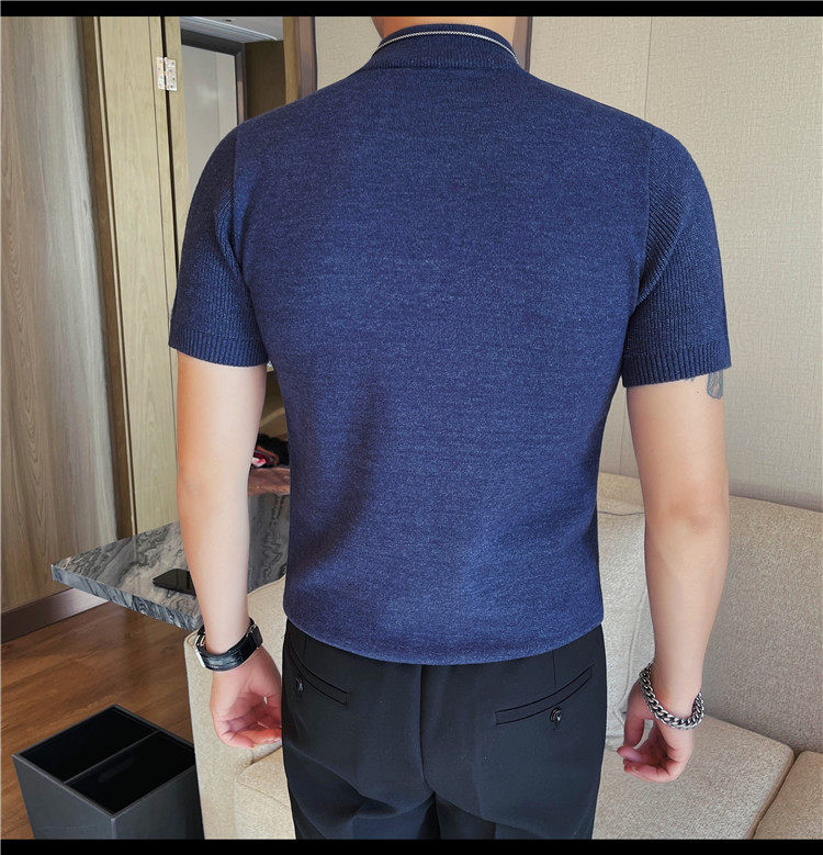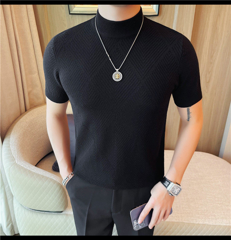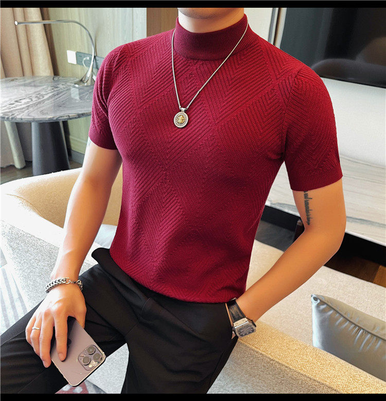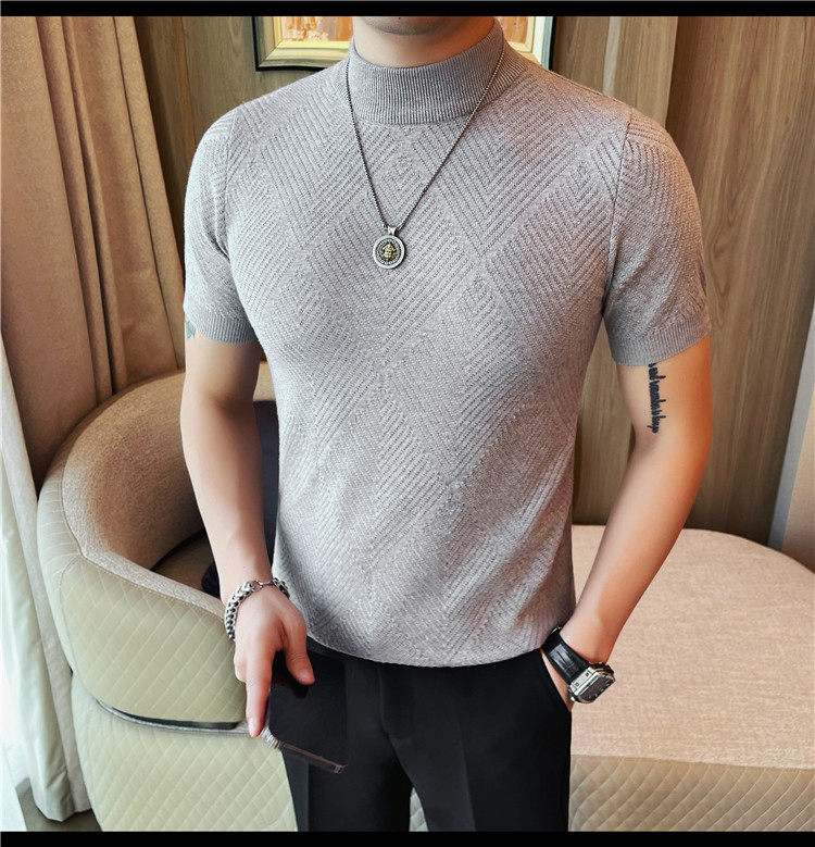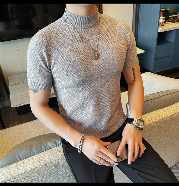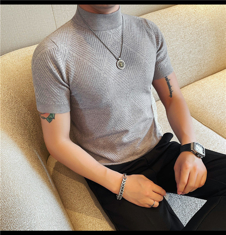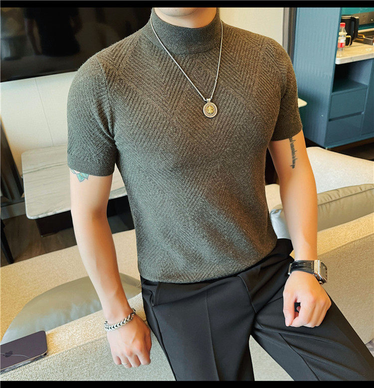 새로운 스타일의 남성용 반팔 니트 스웨터, 패셔너블한 니트 베이스 레이어, 봄 여름 남성용 중간 칼라 니트 반팔 스웨터스토어 가기