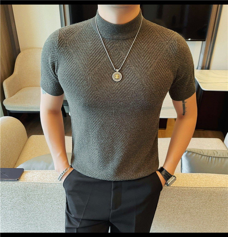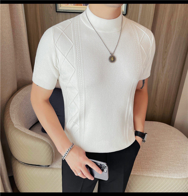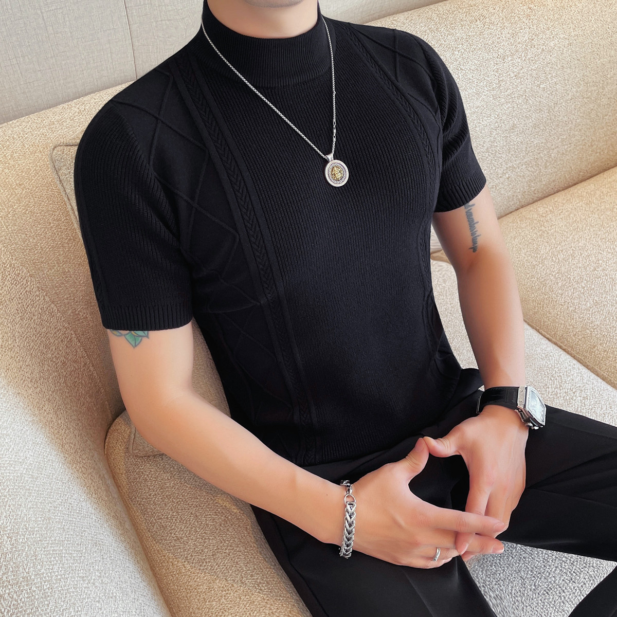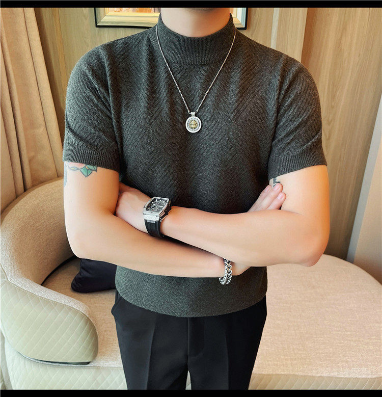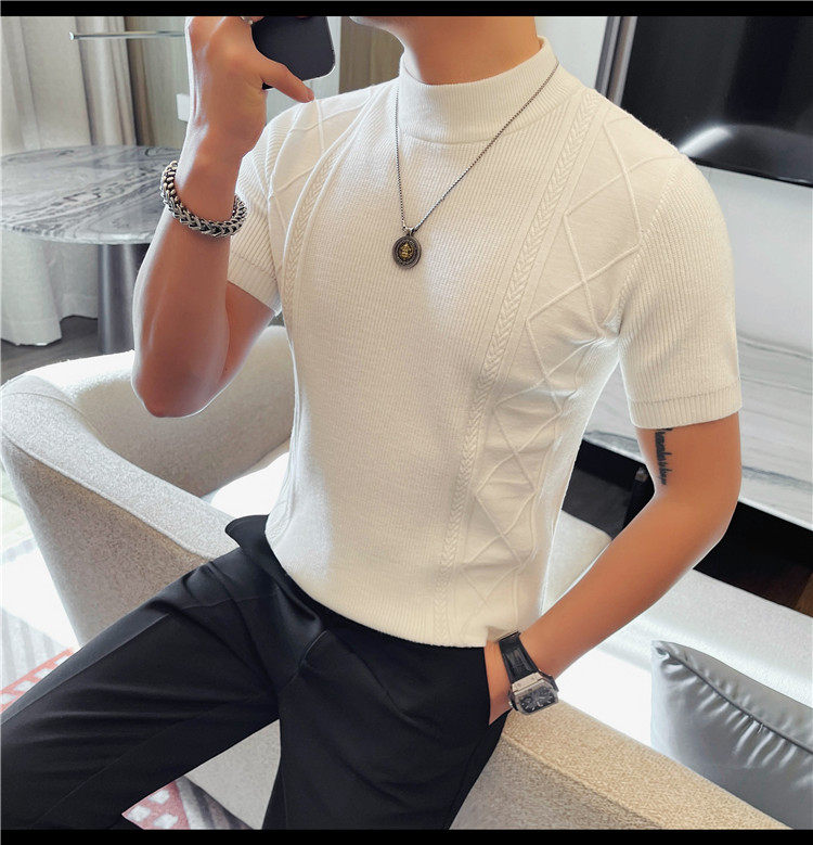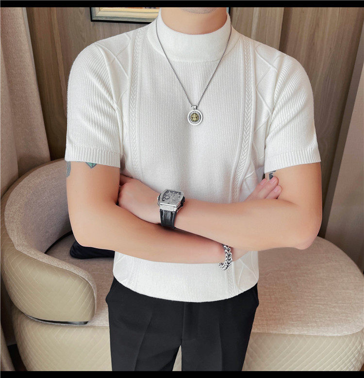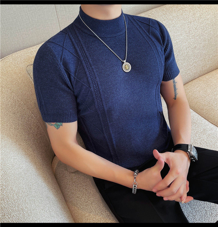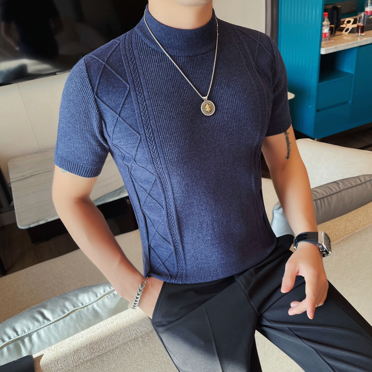 새로운 스타일의 남성용 반팔 니트 스웨터, 패셔너블한 니트 베이스 레이어, 봄 여름 남성용 중간 칼라 니트 반팔 스웨터