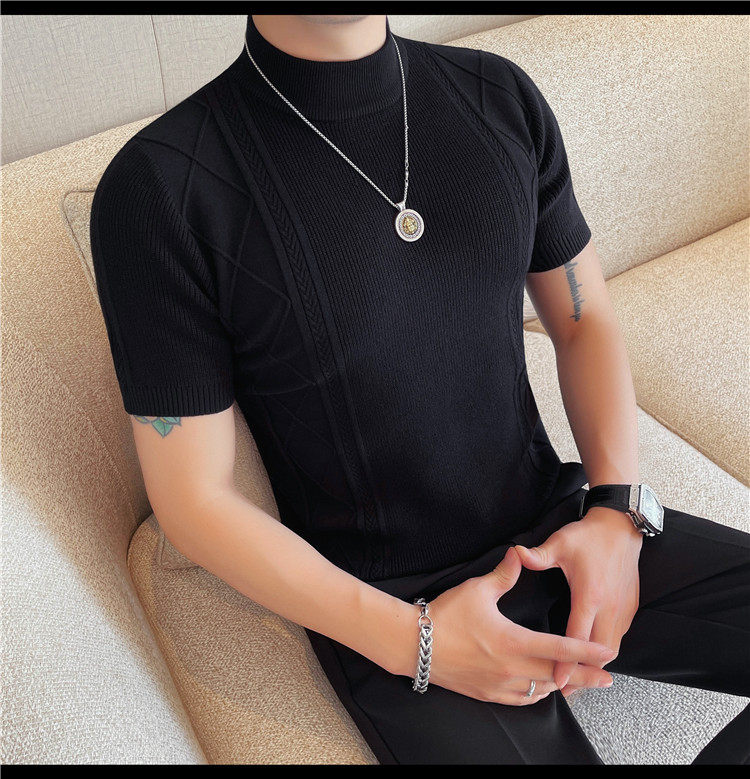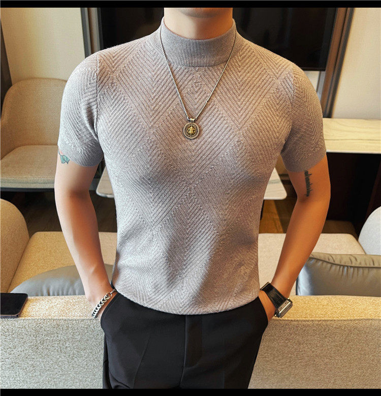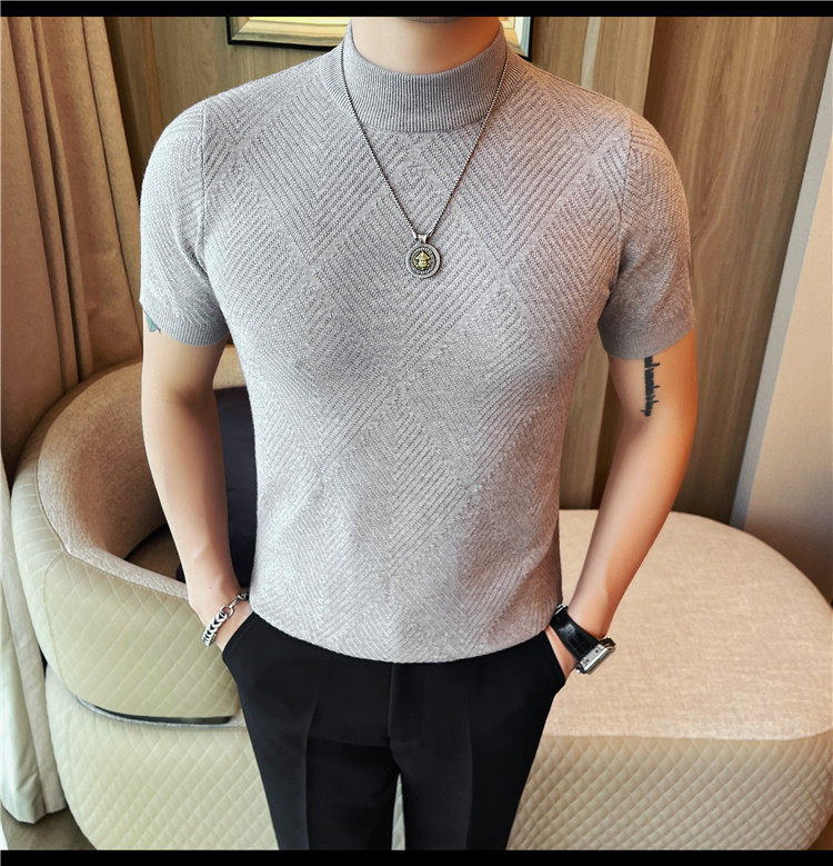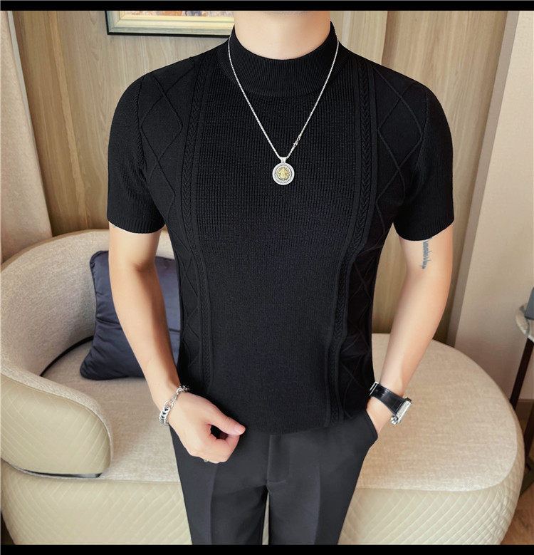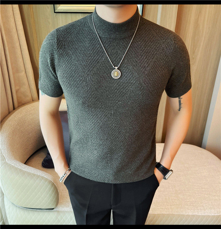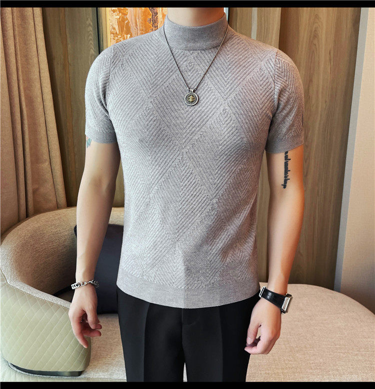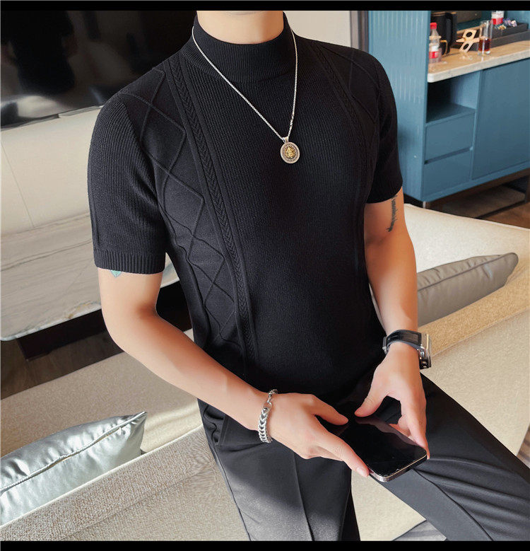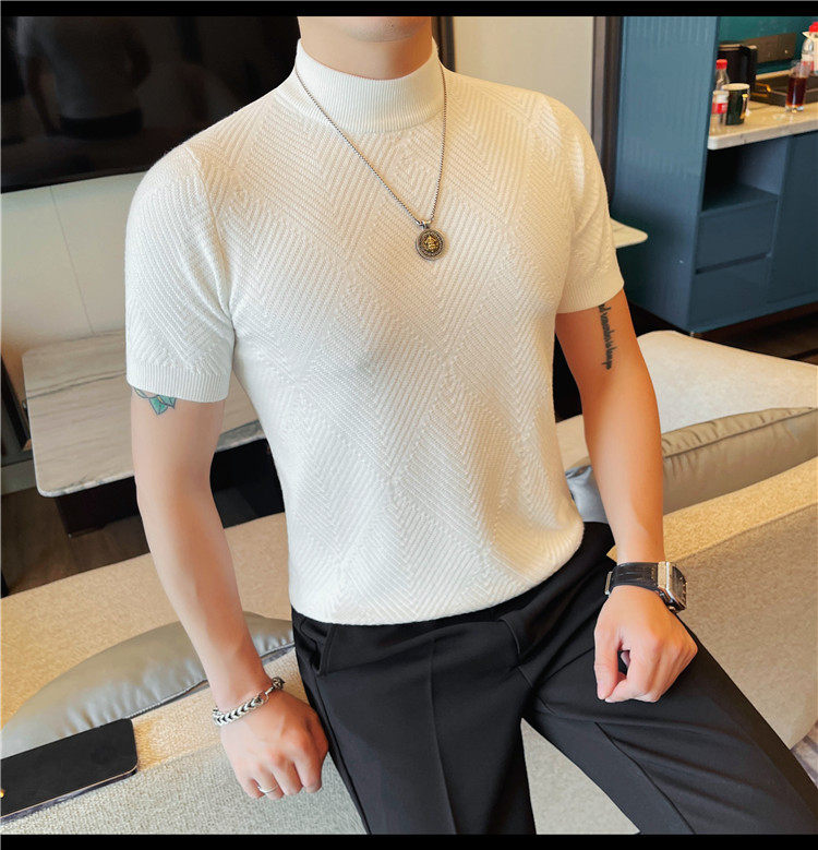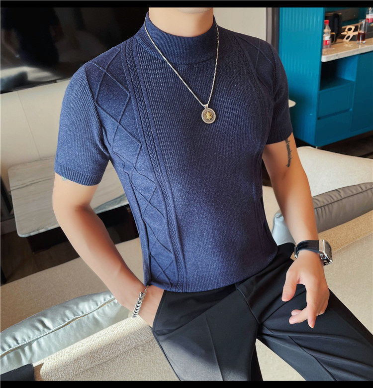 새로운 스타일의 남성용 반팔 니트 스웨터, 패셔너블한 니트 베이스 레이어, 봄 여름 남성용 중간 칼라 니트 반팔 스웨터