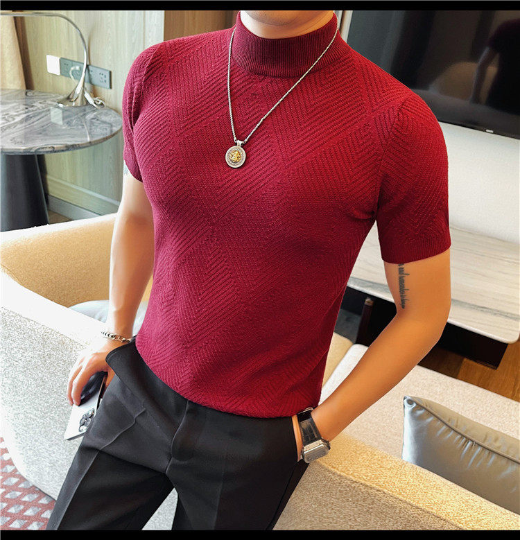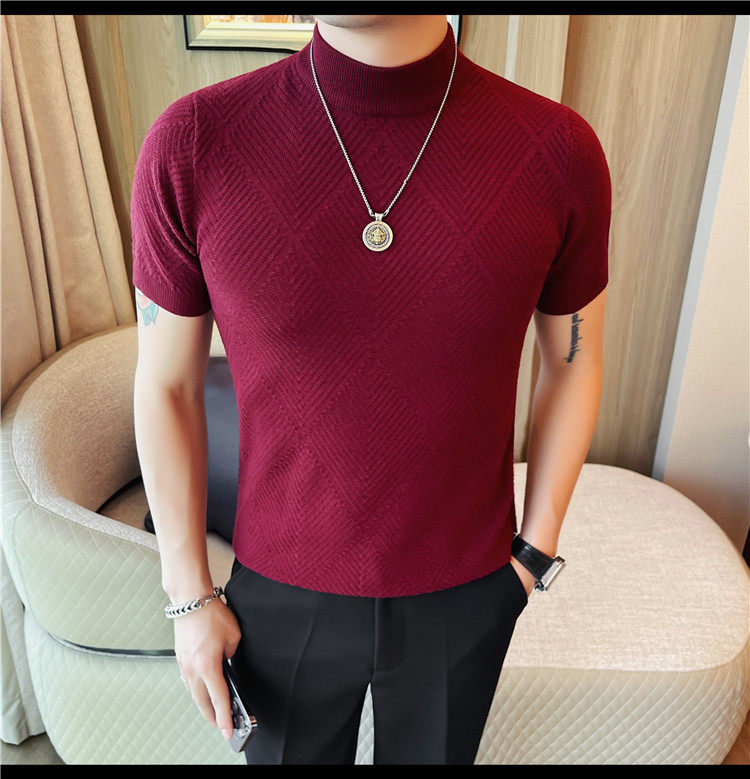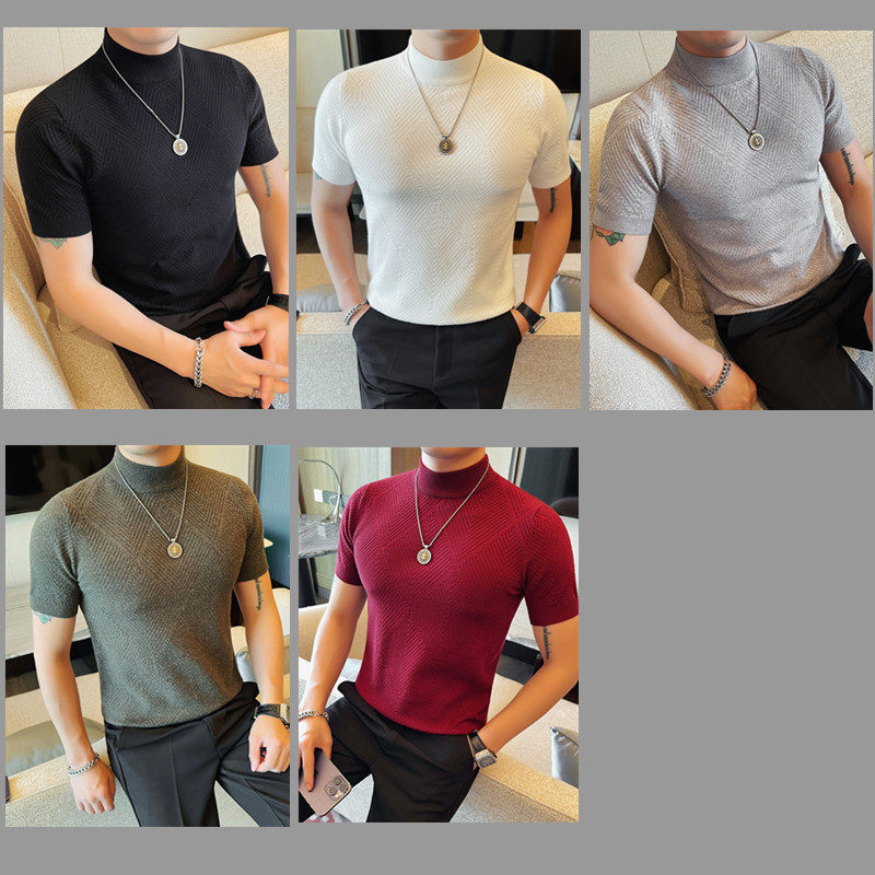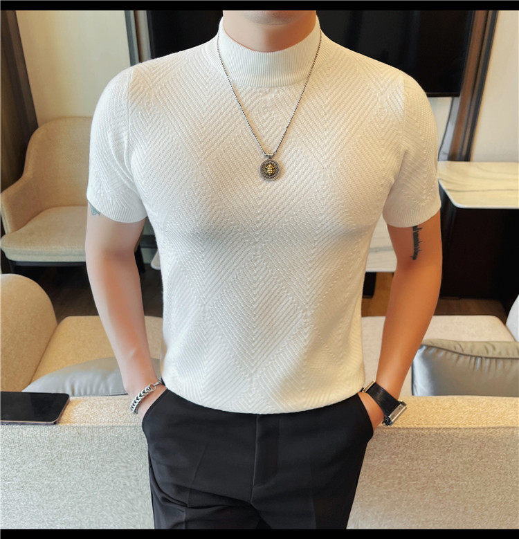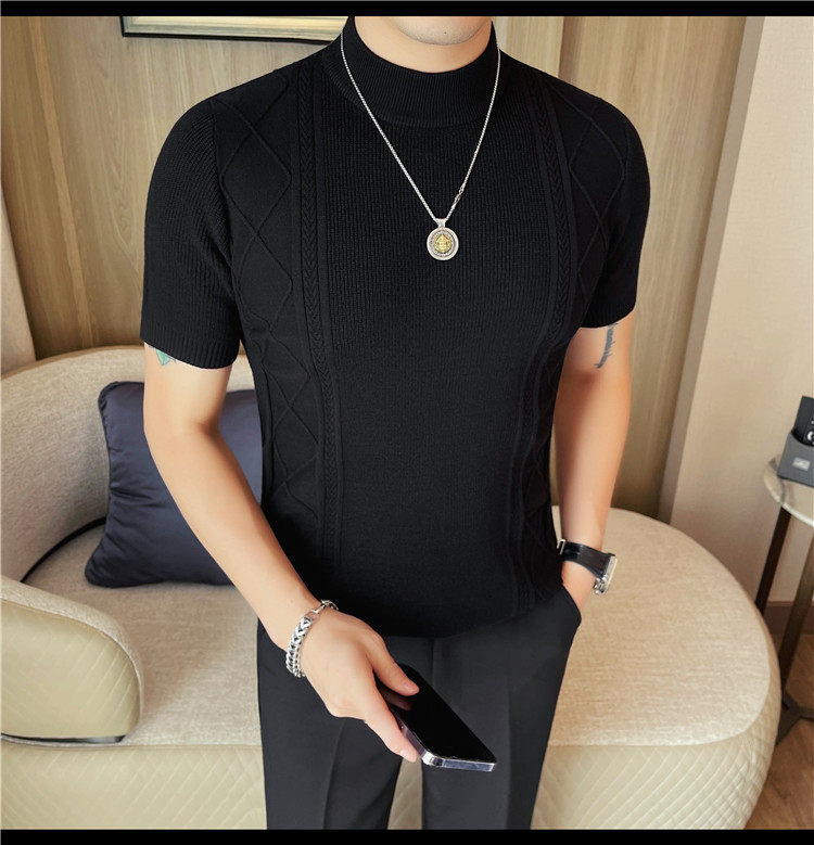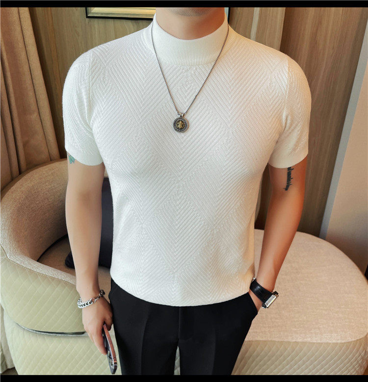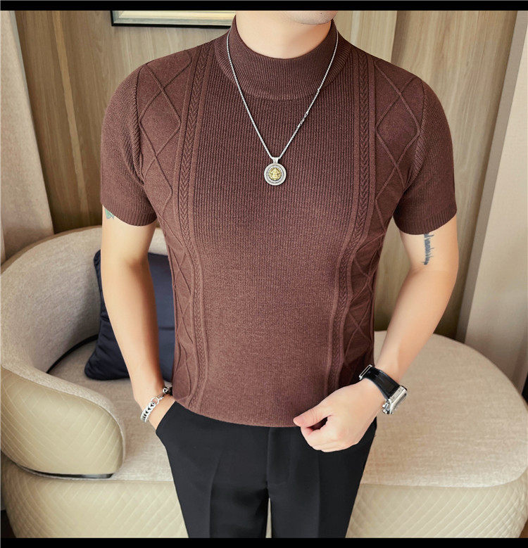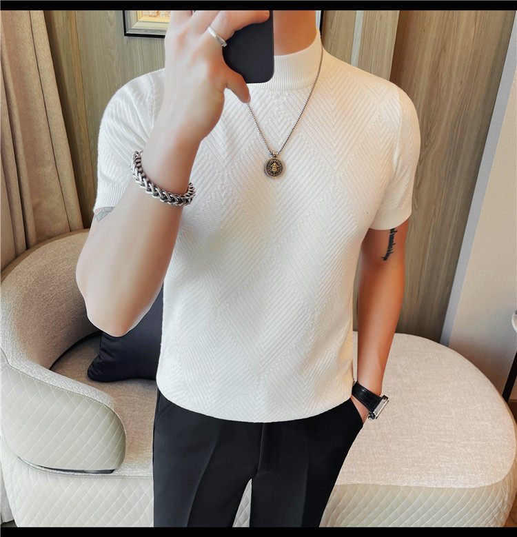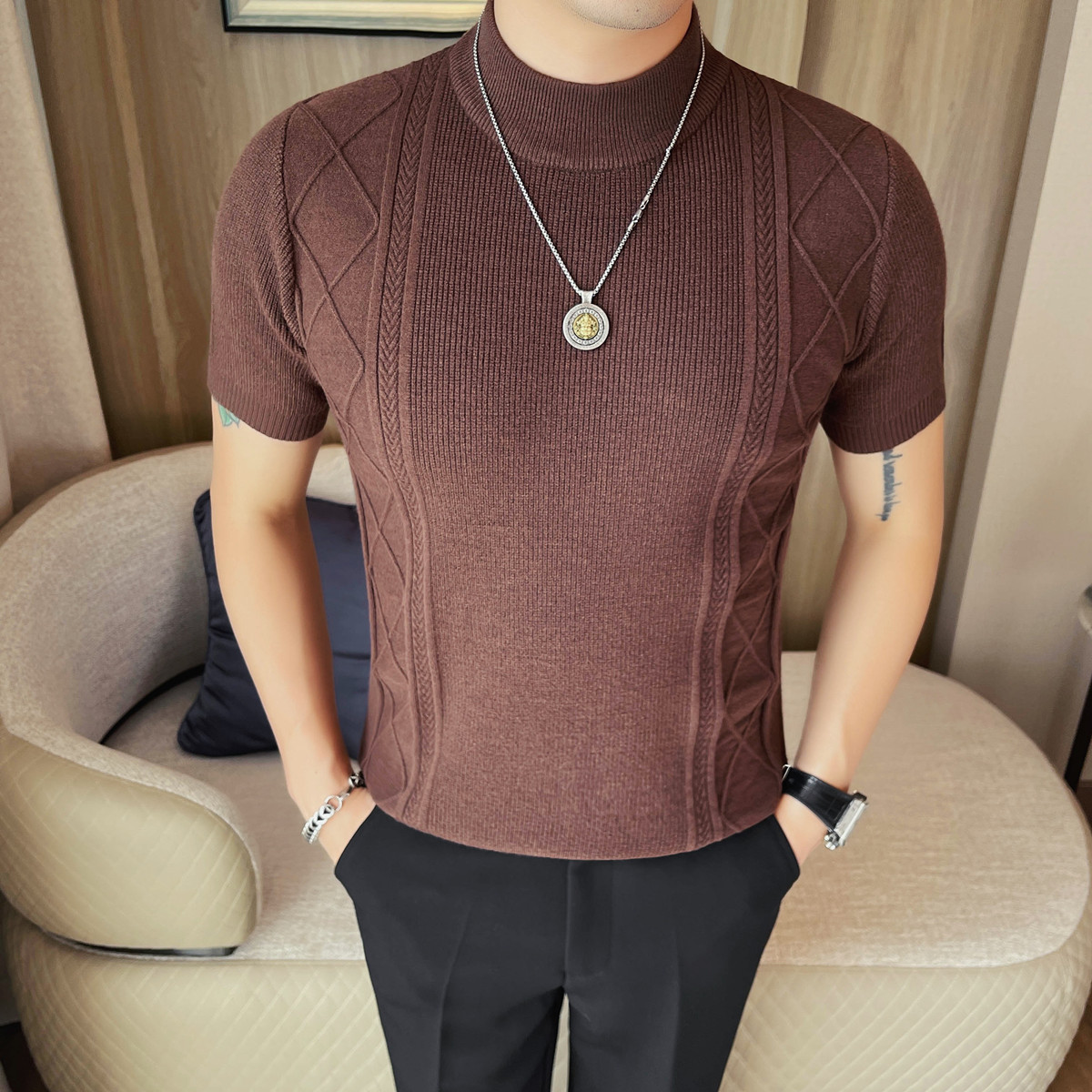 새로운 스타일의 남성용 반팔 니트 스웨터, 패셔너블한 니트 베이스 레이어, 봄 여름 남성용 중간 칼라 니트 반팔 스웨터