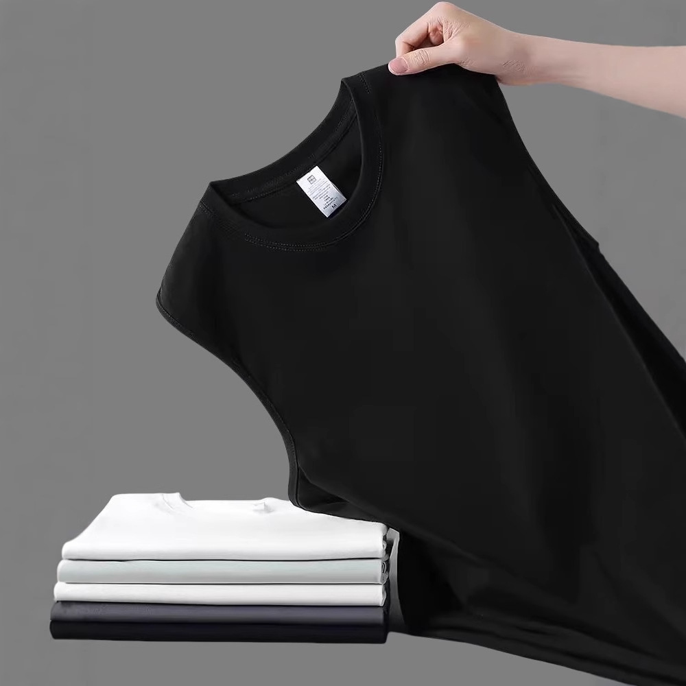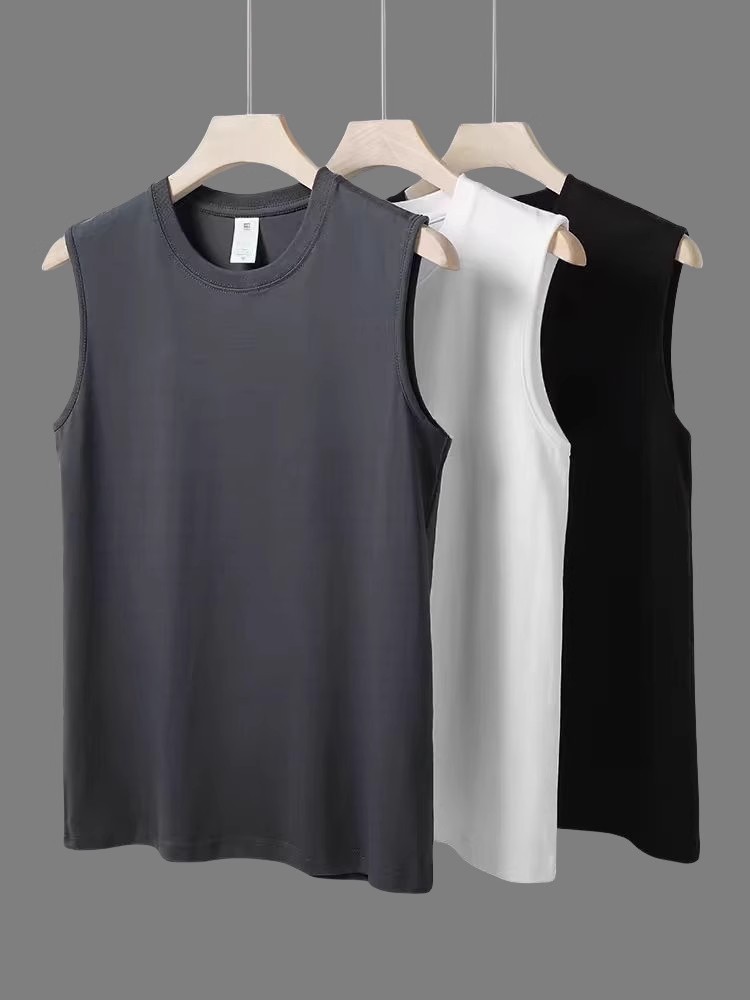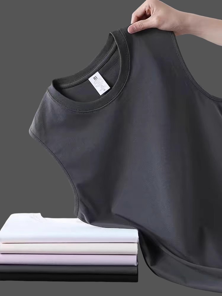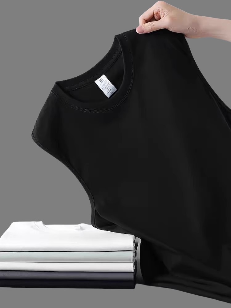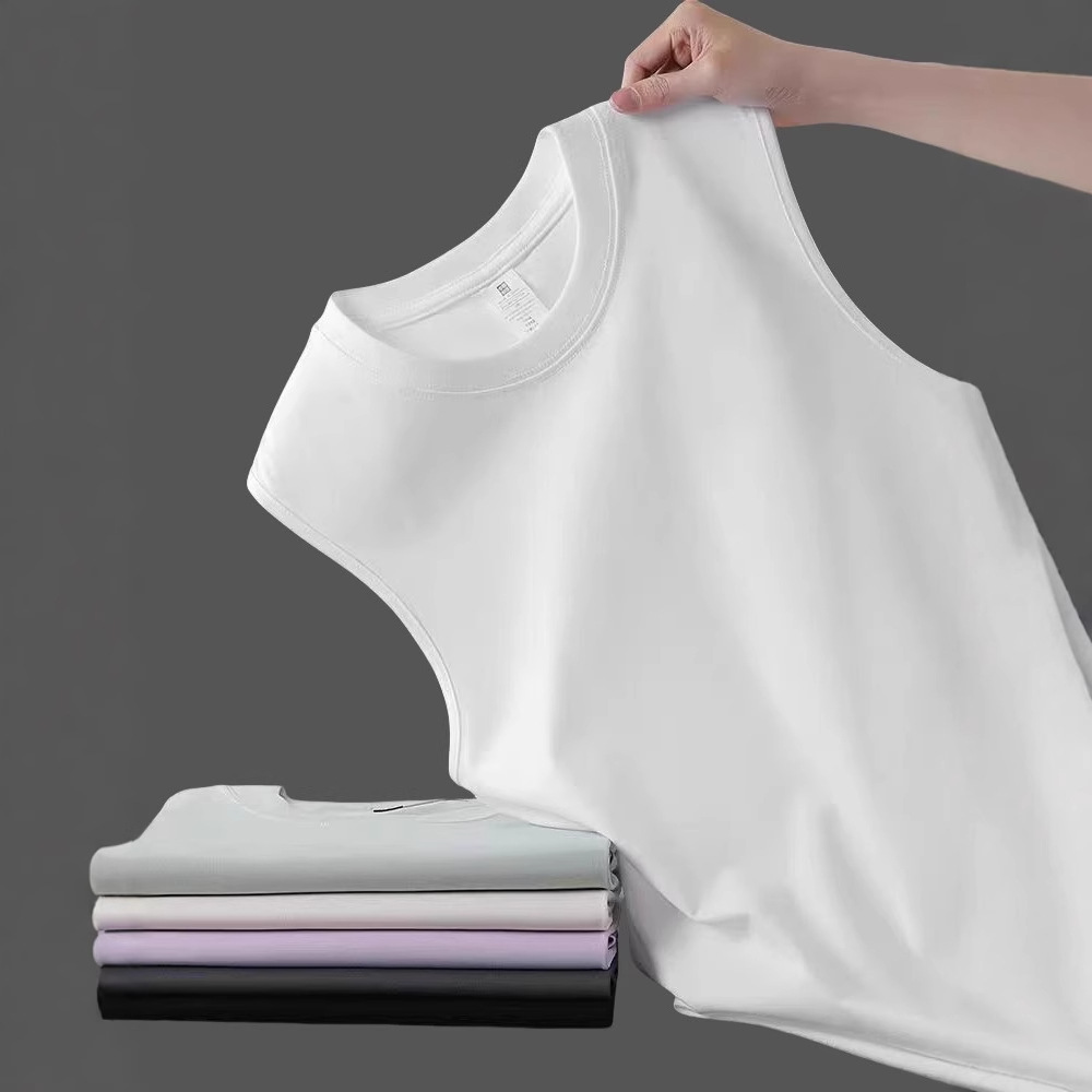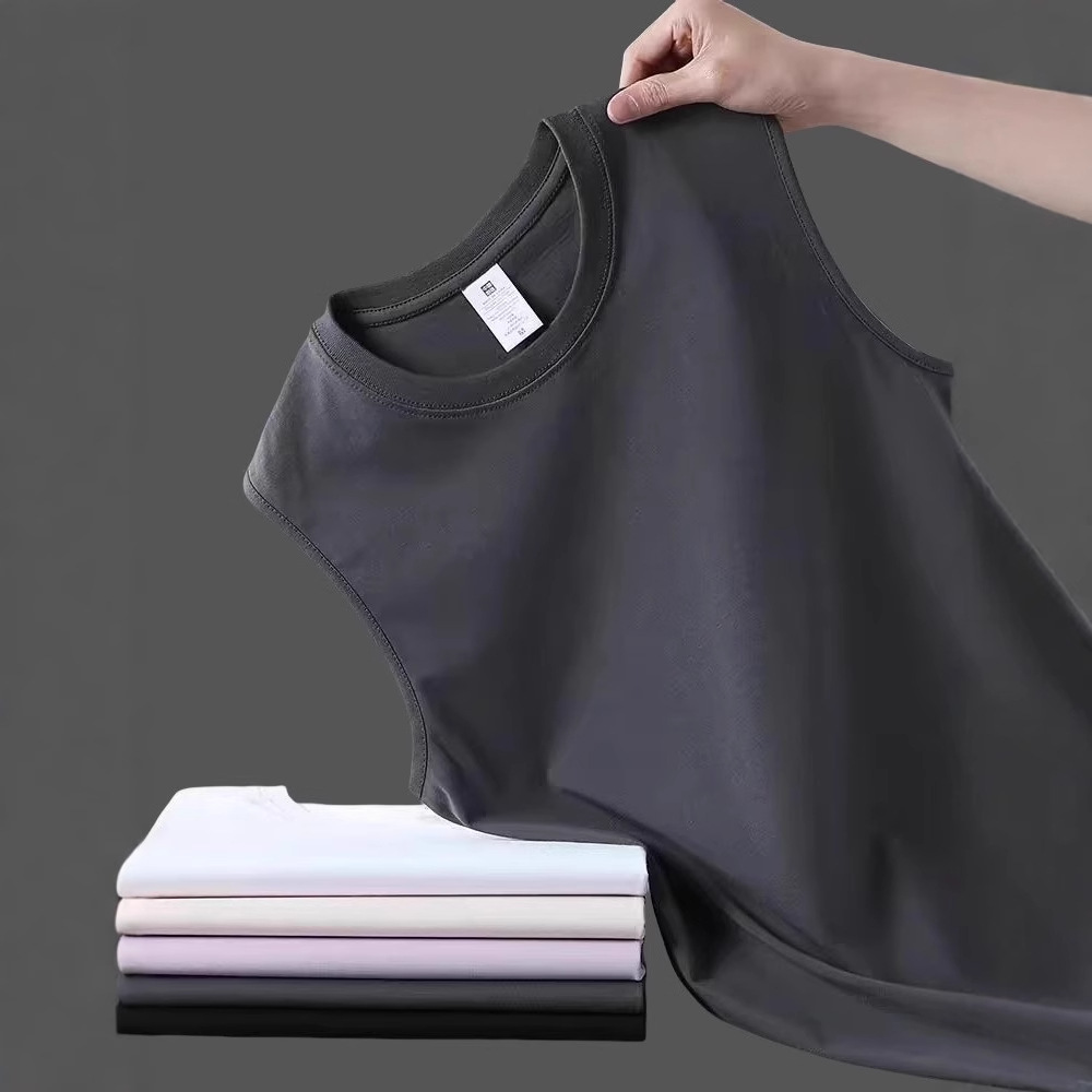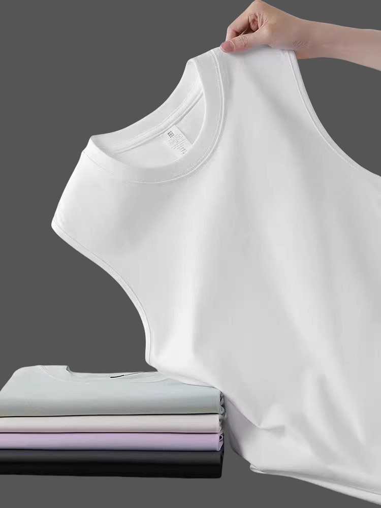 TikTok 라이브 폭발 코튼 티셔츠 남성용 중립 조끼 화이트 베이스 라운드 넥 솔리드 컬러 캐주얼 느슨한 민소매