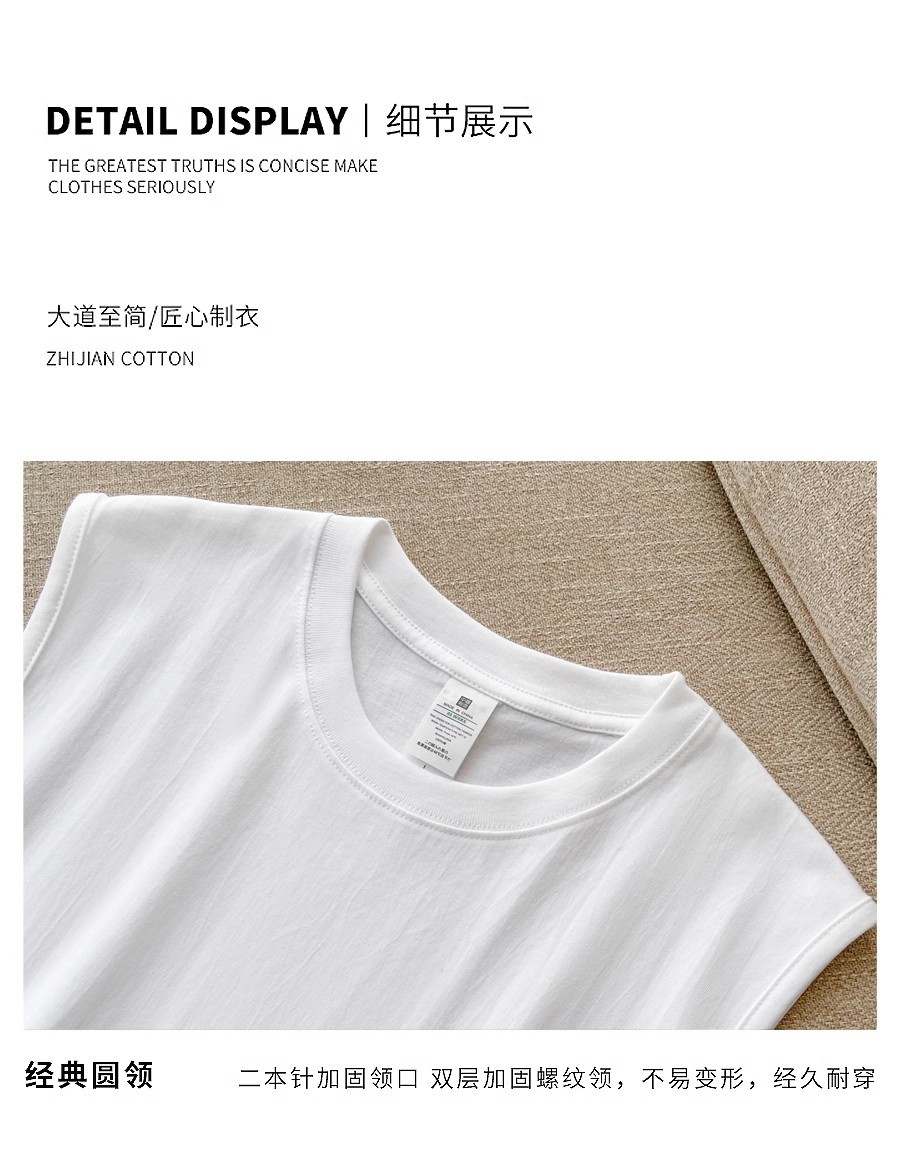 TikTok 라이브 폭발 코튼 티셔츠 남성용 중립 조끼 화이트 베이스 라운드 넥 솔리드 컬러 캐주얼 느슨한 민소매스토어 가기