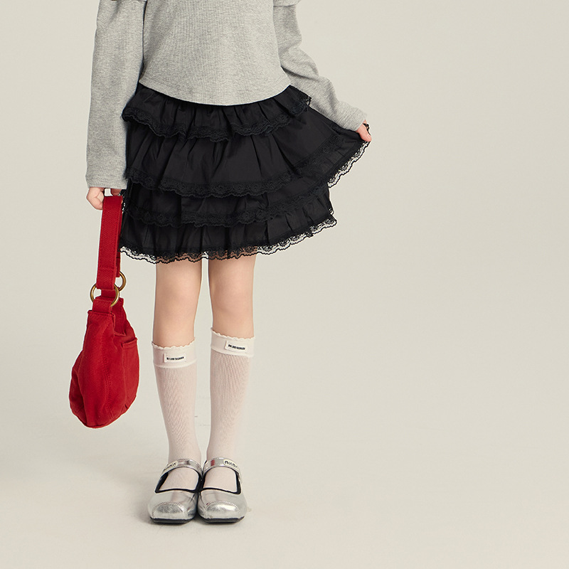 [특가 정리] 여아용 세련되고 사랑스러운 케이크 스커트, 레이스 패치워크 A라인 숏 스커트, 퍼프 공주 스커트