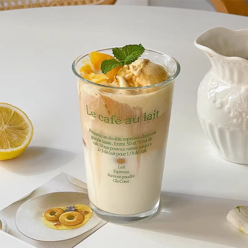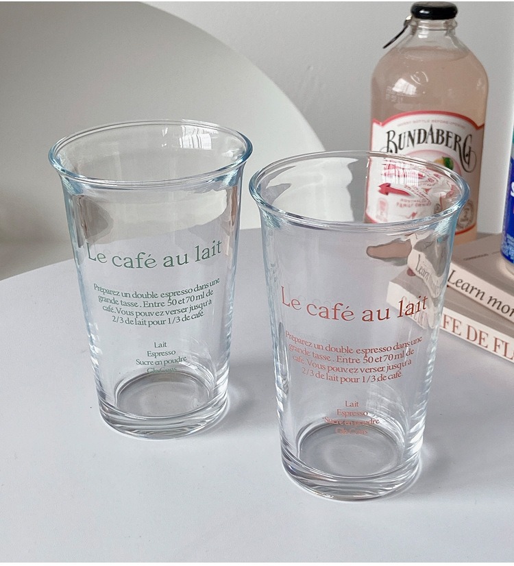 높은 가정용 유리 350ml 창조적 인 편지 음료 커피 컵 두꺼운 사무실 푸시 선물 컵스토어 가기