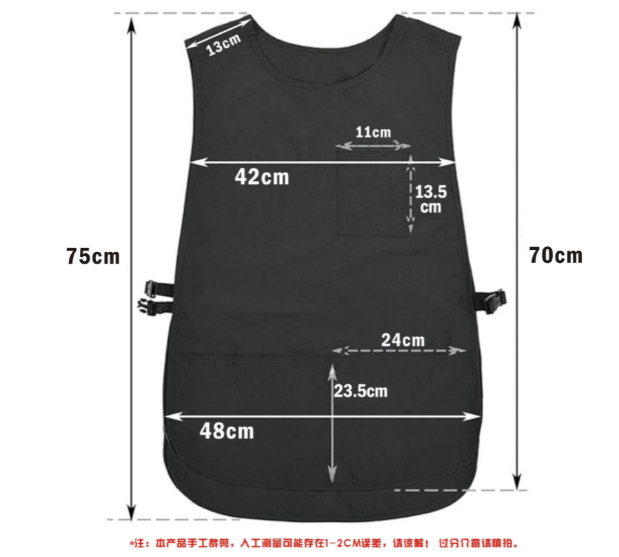 ●3个口袋设计:这款美发师背心配有两个大口袋和一个小口袋,为理发工具、手动工具等提供充足的存储空间。非常适合在美容、烹饪、清洁、服务或绘画时随身携带物品,提高您的效率。
