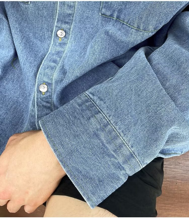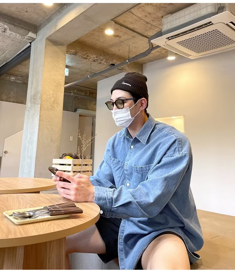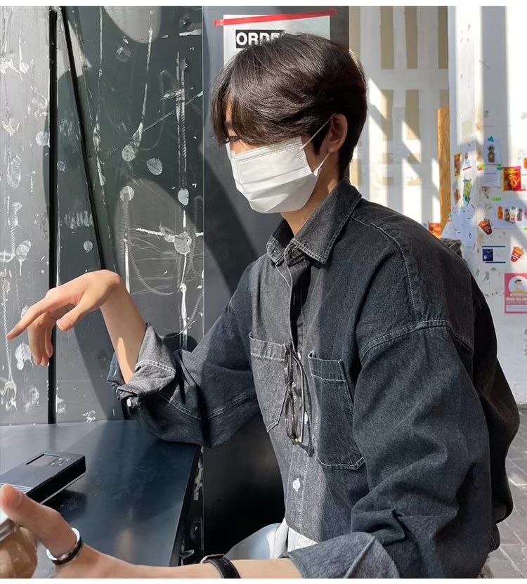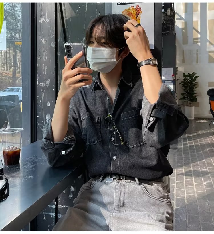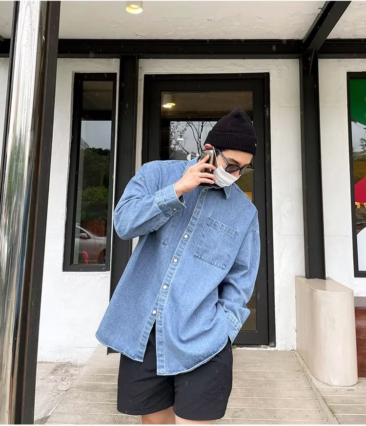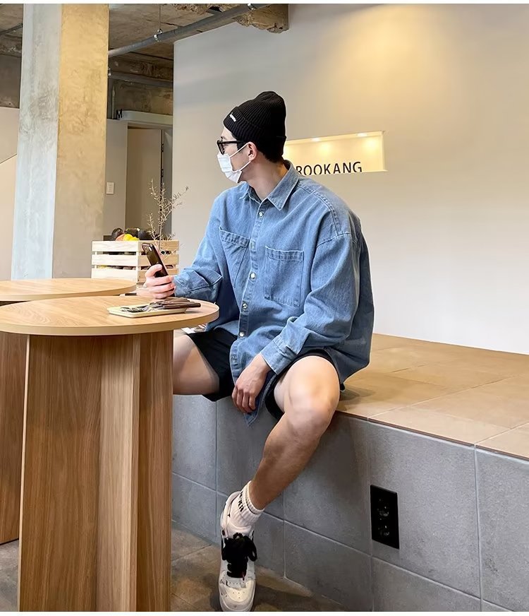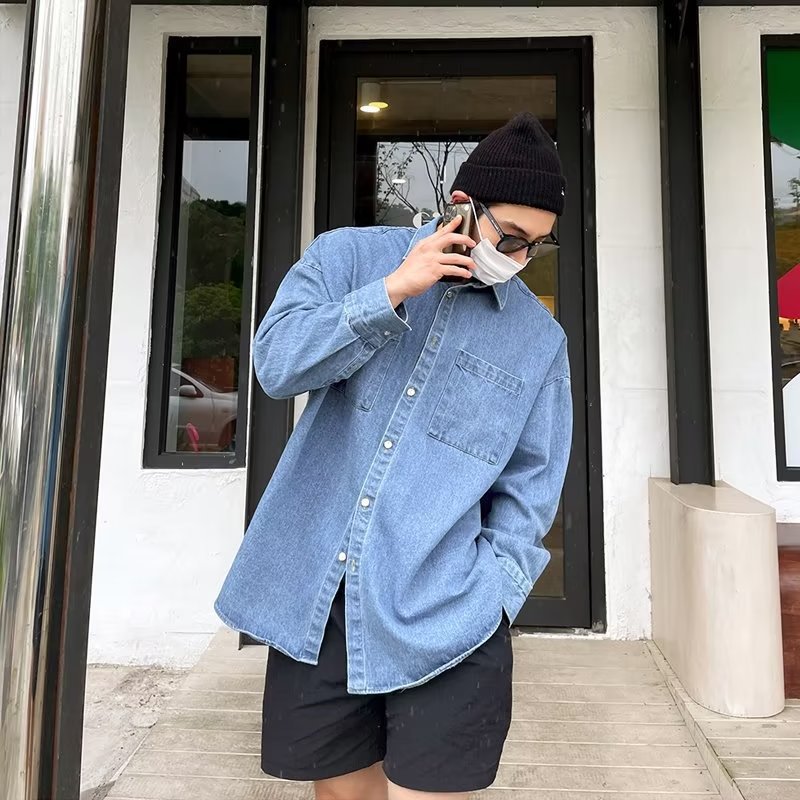 봄과 가을 일본 스타일 신선한 스타일 유행 작업복 긴팔 셔츠 남자 한국 스타일 올매치 느슨한 핸섬 데님 셔츠스토어 가기