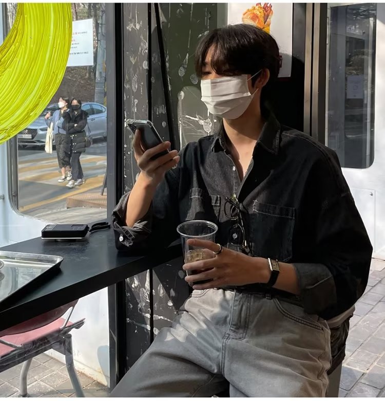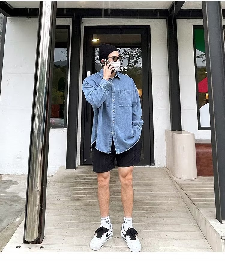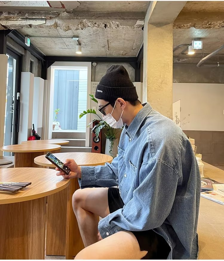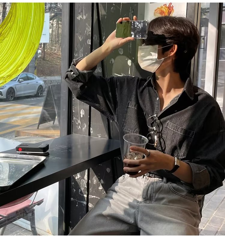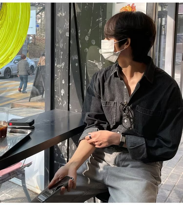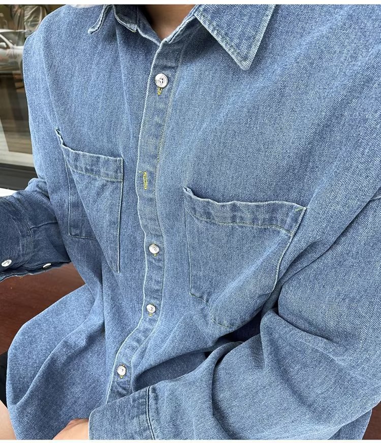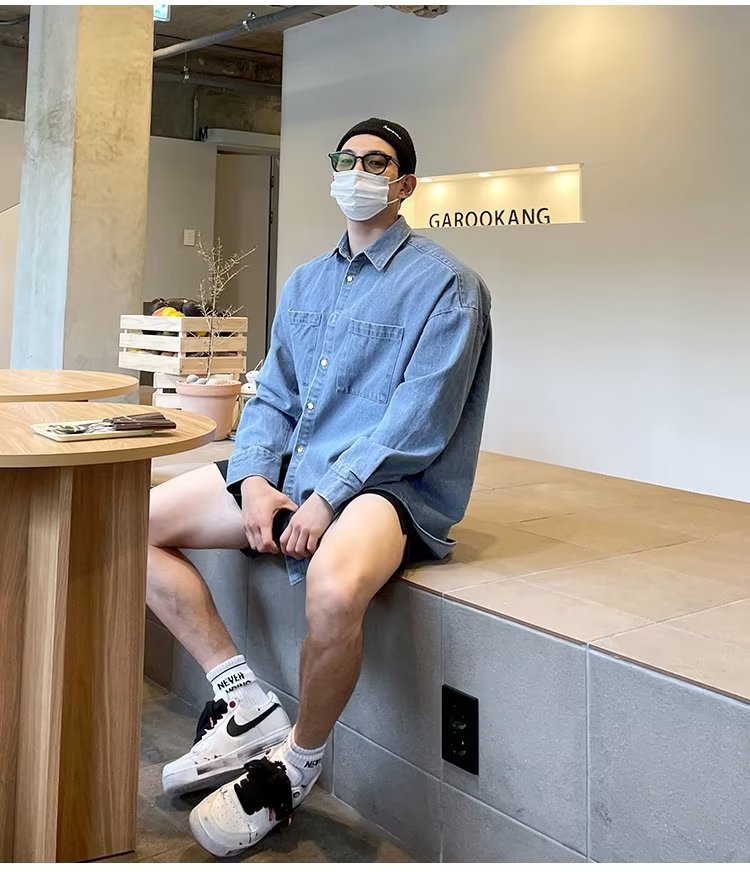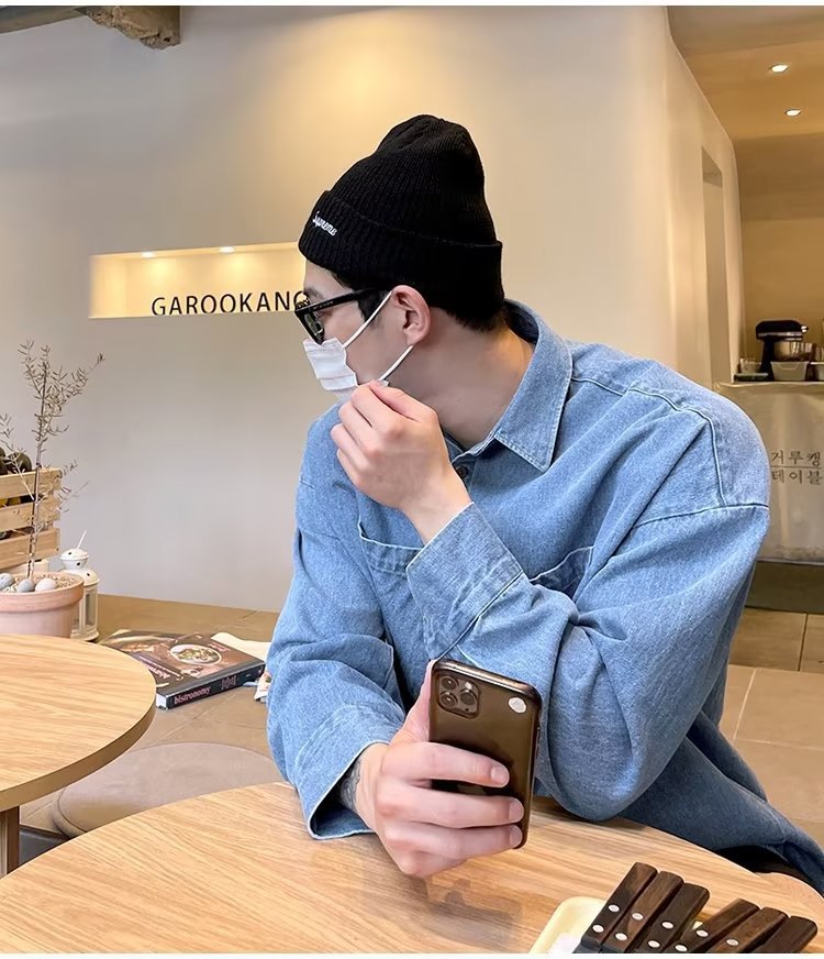 봄과 가을 일본 스타일 신선한 스타일 유행 작업복 긴팔 셔츠 남자 한국 스타일 올매치 느슨한 핸섬 데님 셔츠스토어 가기