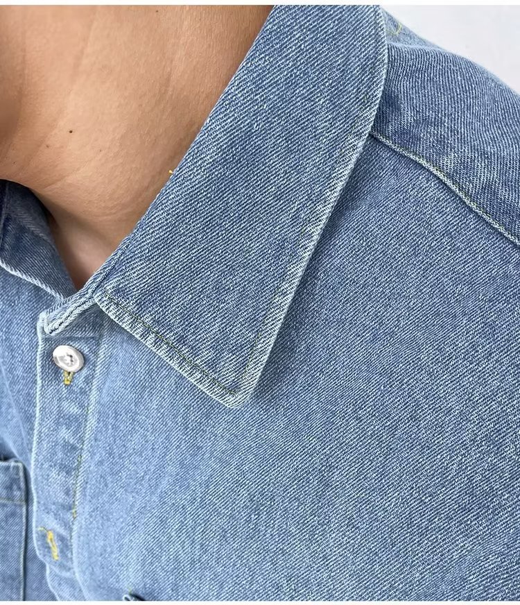 봄과 가을 일본 스타일 신선한 스타일 유행 작업복 긴팔 셔츠 남자 한국 스타일 올매치 느슨한 핸섬 데님 셔츠
