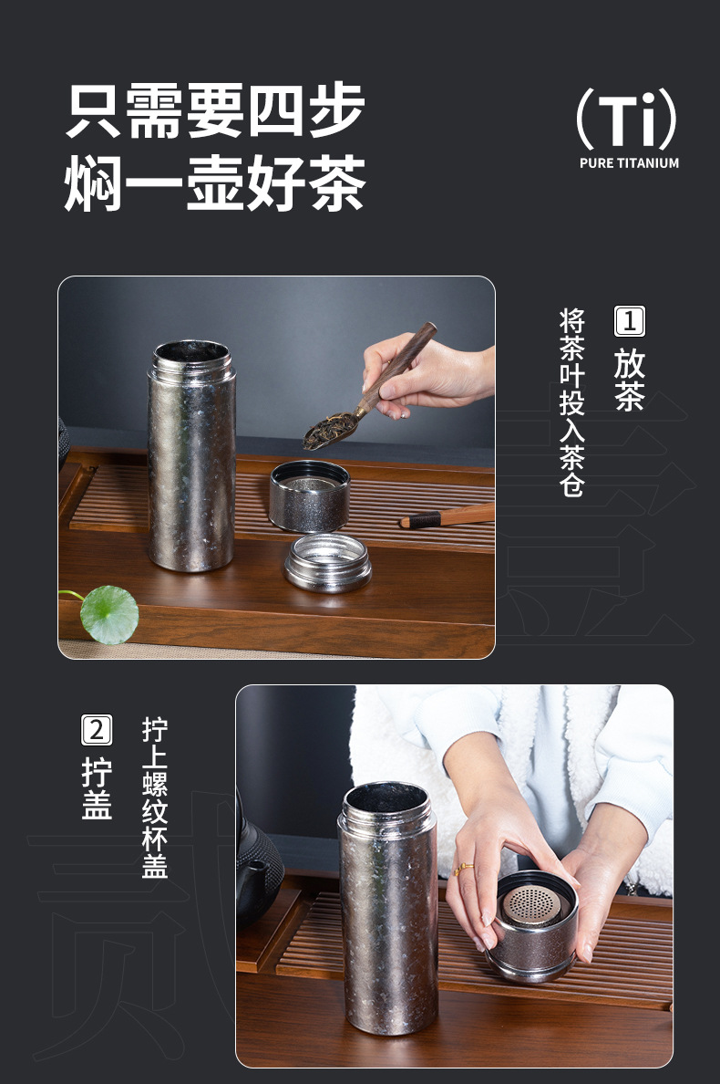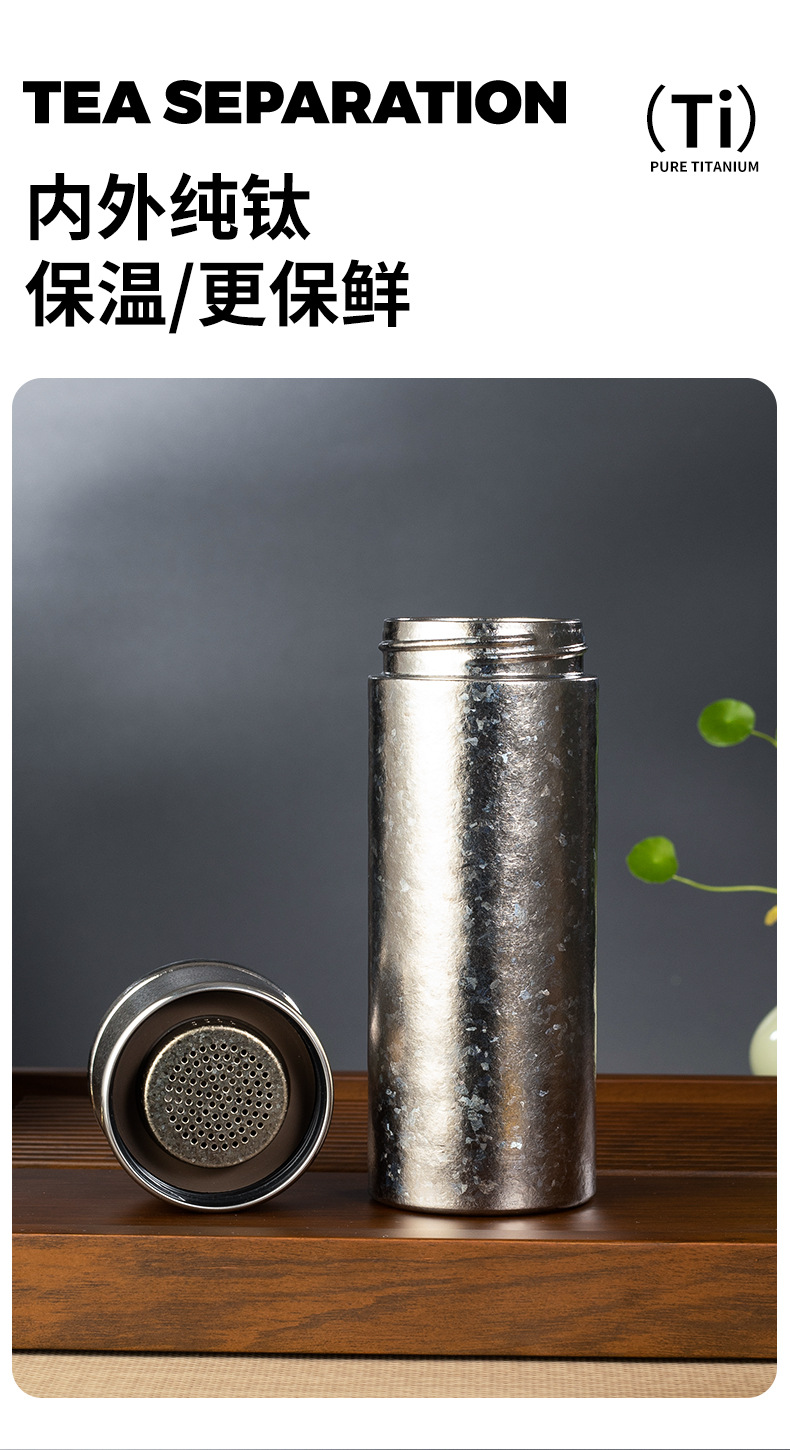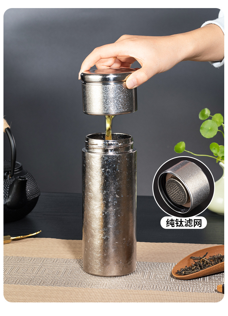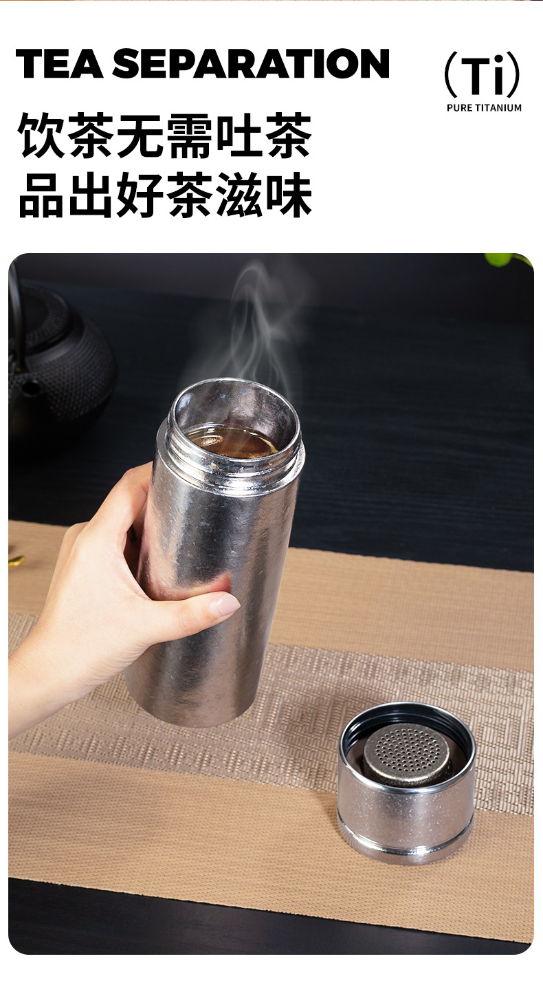 새로운 건강 간단한 차 분리 순수한 티타늄 기능성 티 컵 노화 컵 티 컵 보온병 컵 남자 워터 컵