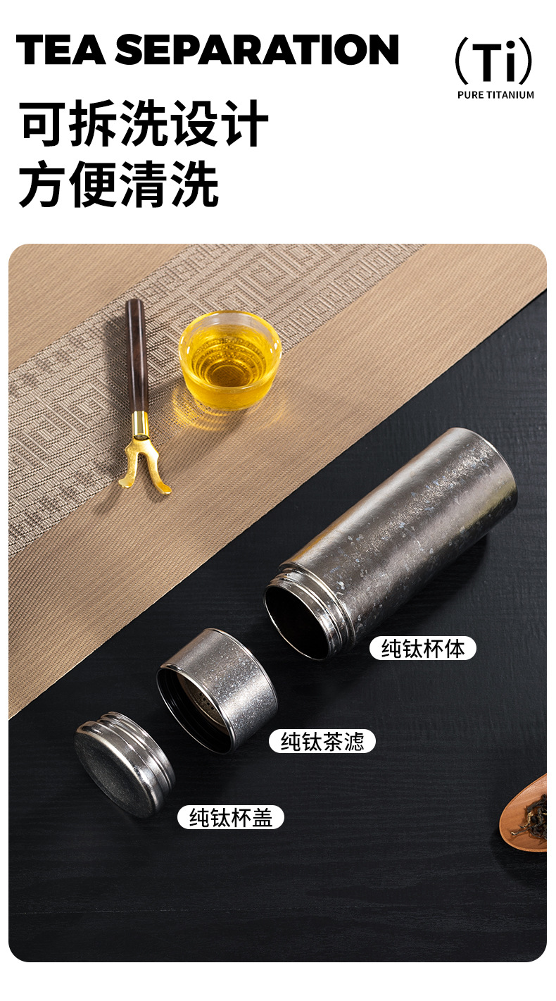 새로운 건강 간단한 차 분리 순수한 티타늄 기능성 티 컵 노화 컵 티 컵 보온병 컵 남자 워터 컵스토어 가기