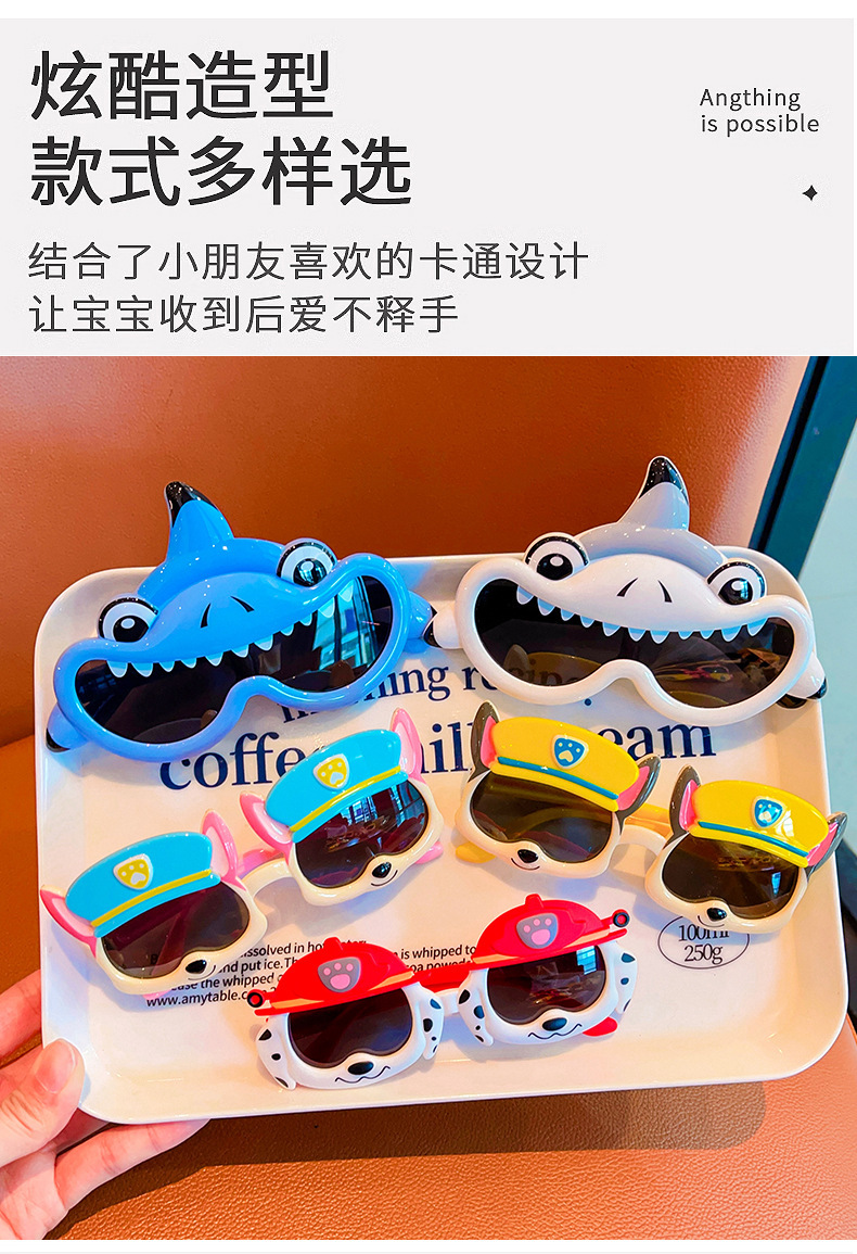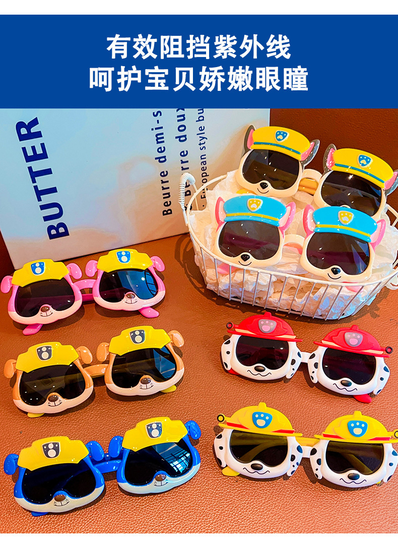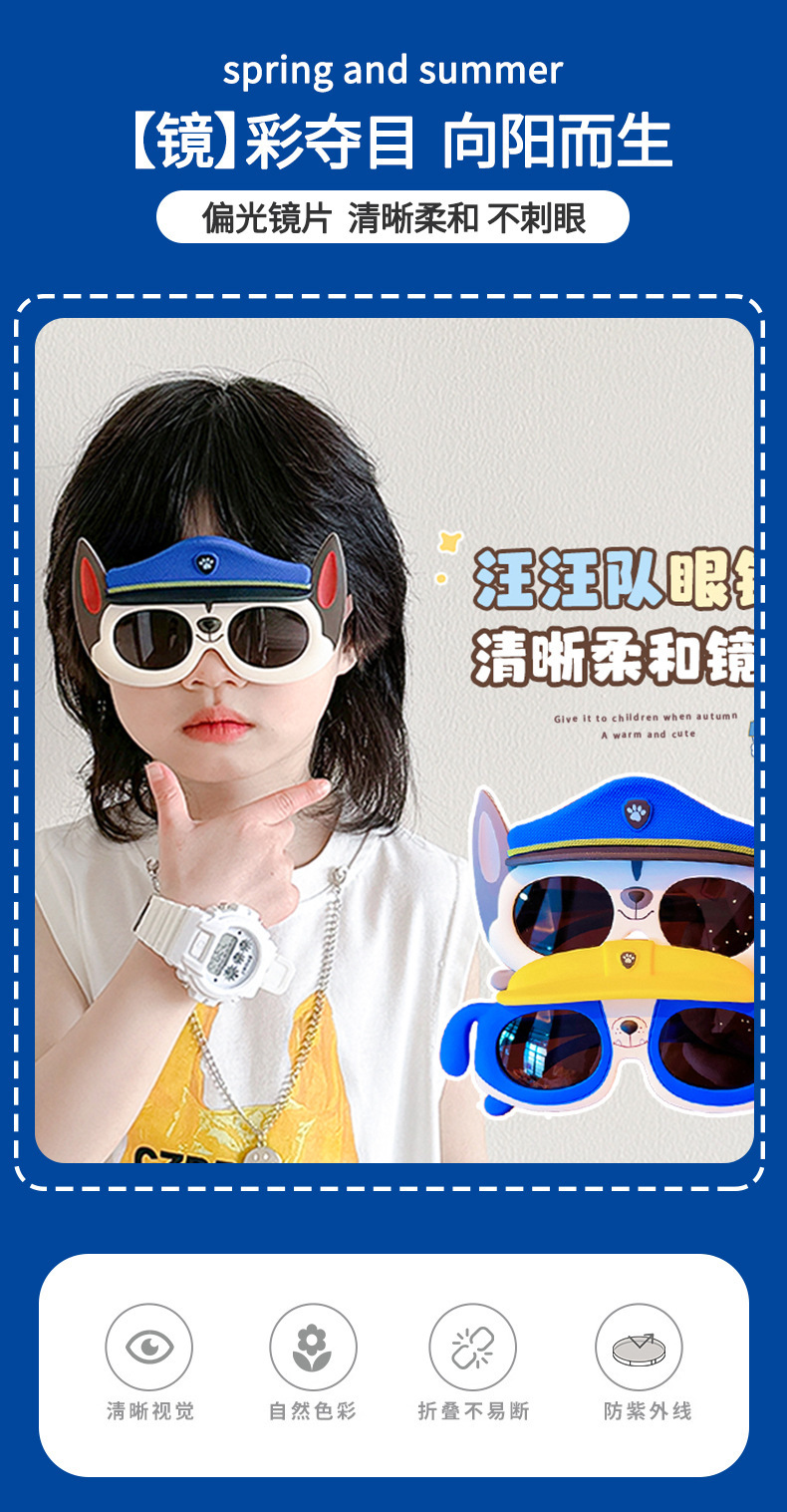 새로운 어린이용 선글라스, 귀여운 만화 강아지 팀 편광 안경, 남아 여아 선글라스, 선글라스, 차양 안경