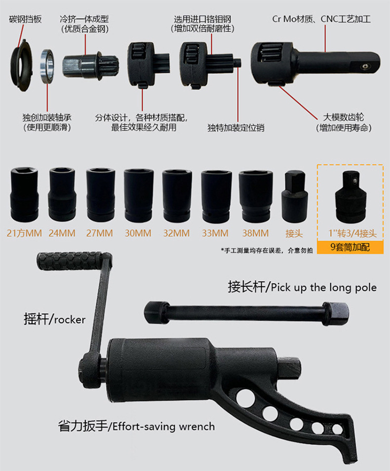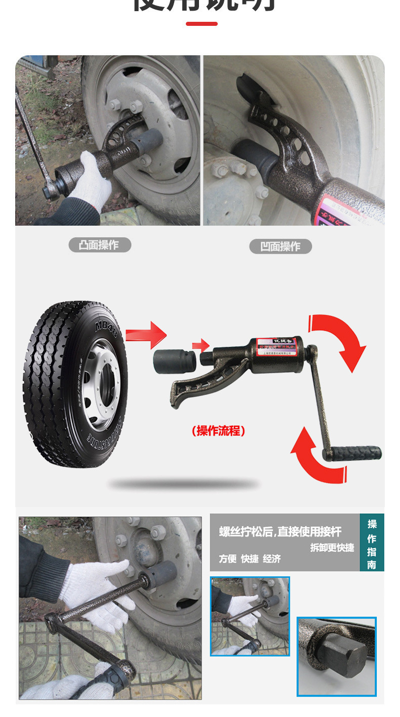 8 소켓 전력 증가 렌치 손 크랭크 노동 절약 렌치 트럭 타이어 제거 및 조립 도구가 장착 된 견고한 타이어 노동 절약 렌치