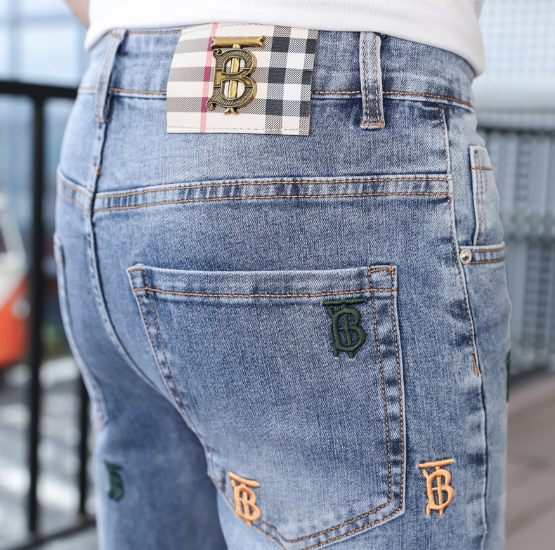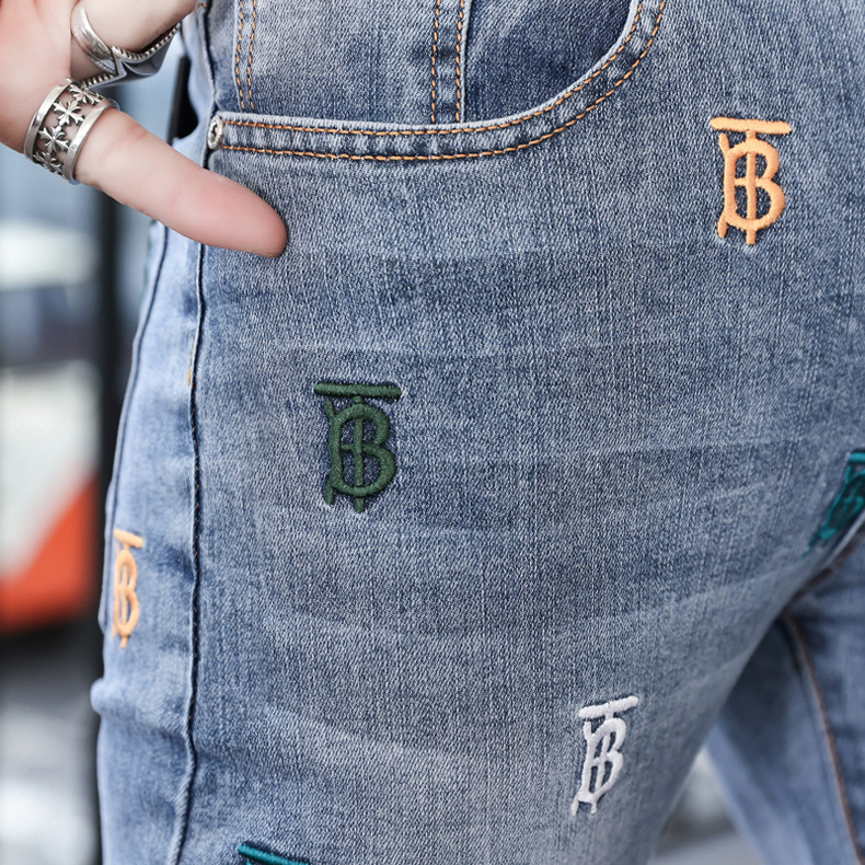 유럽 역 남자 2023 년 여름 새로운 유행 올매치 개인화 된 편지 자수 세척 슬림 핏 청소년 청바지스토어 가기