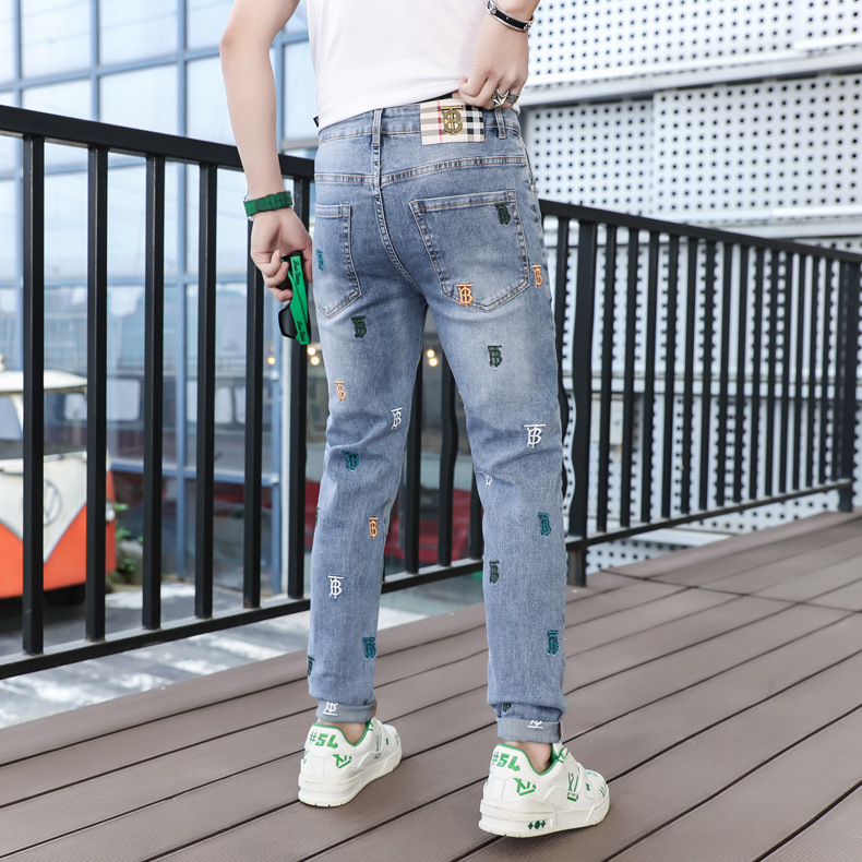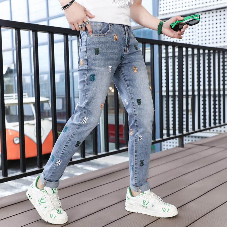 유럽 역 남자 2023 년 여름 새로운 유행 올매치 개인화 된 편지 자수 세척 슬림 핏 청소년 청바지