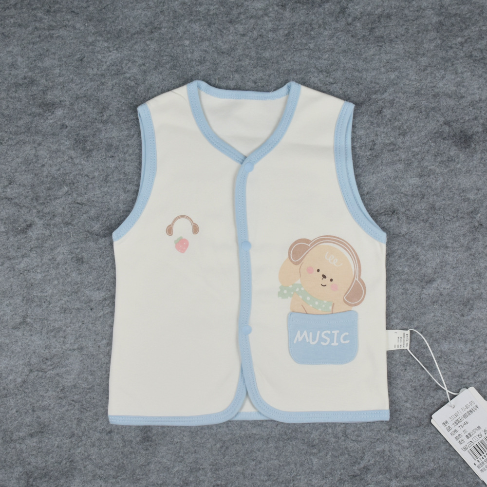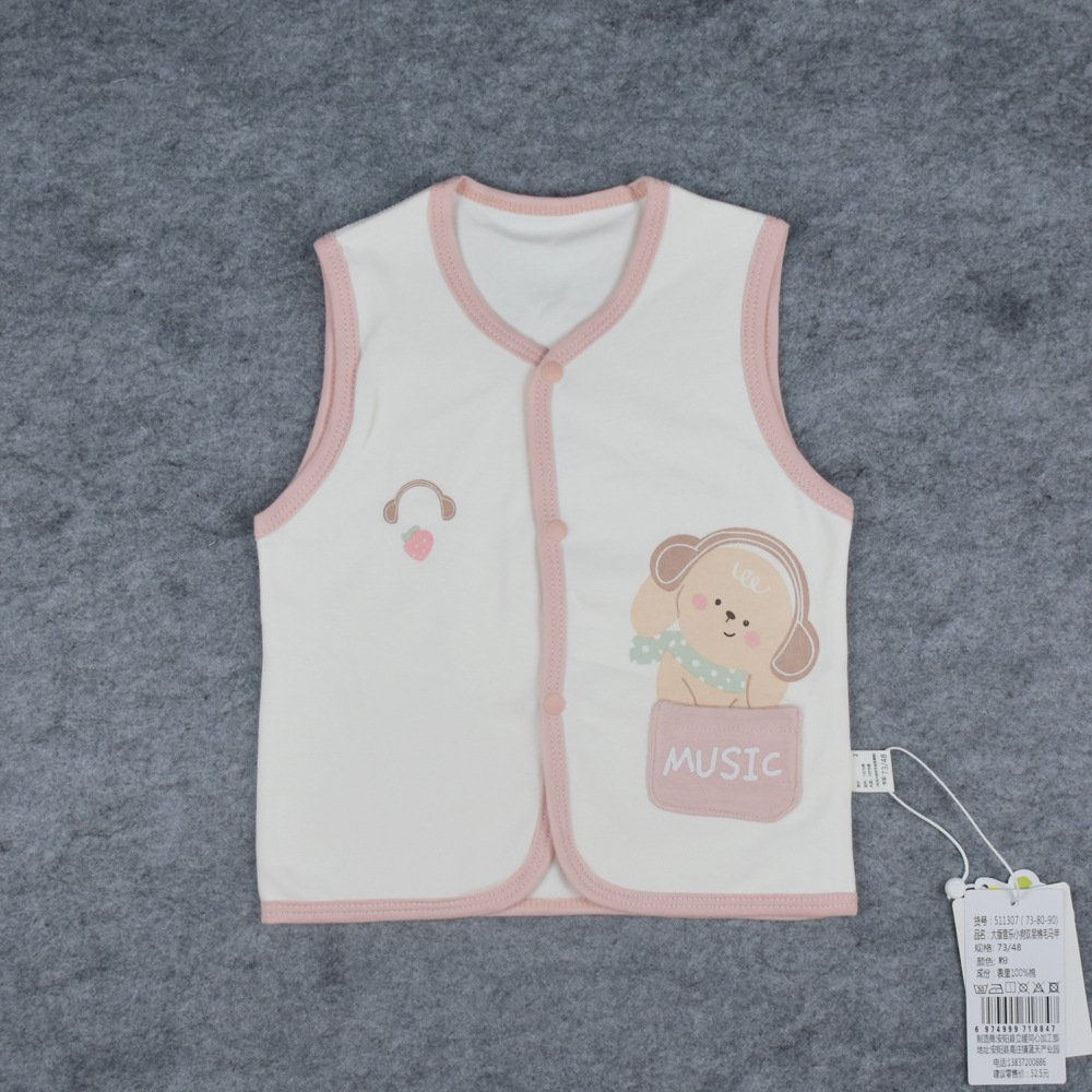 봄, 가을 신상 아기 이중 조끼, 면 소재, 무봉제 앞면 버튼, 만화 캐릭터 아기 조끼, 73-90 사이즈