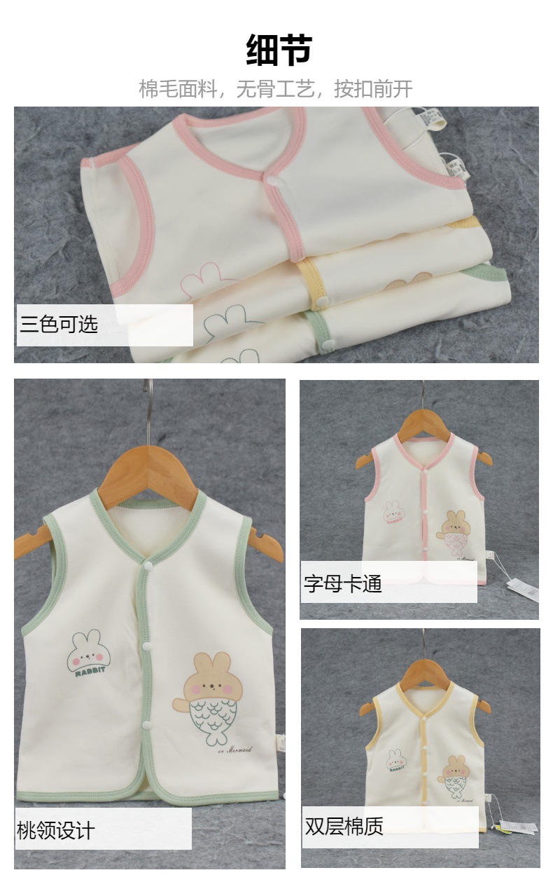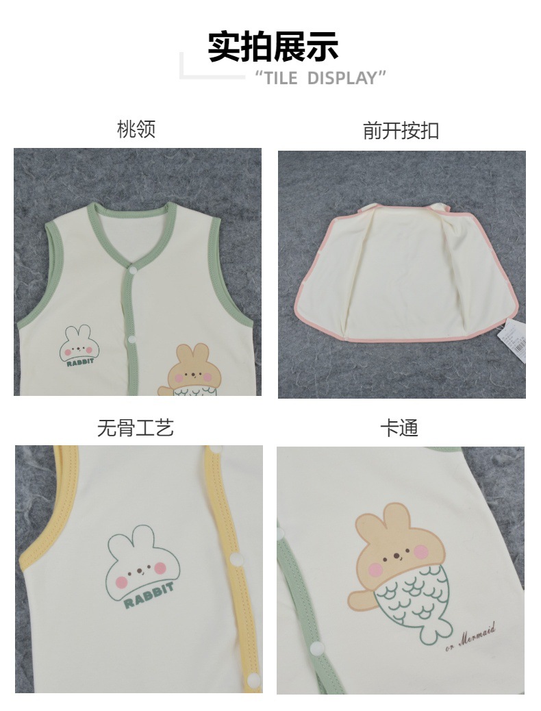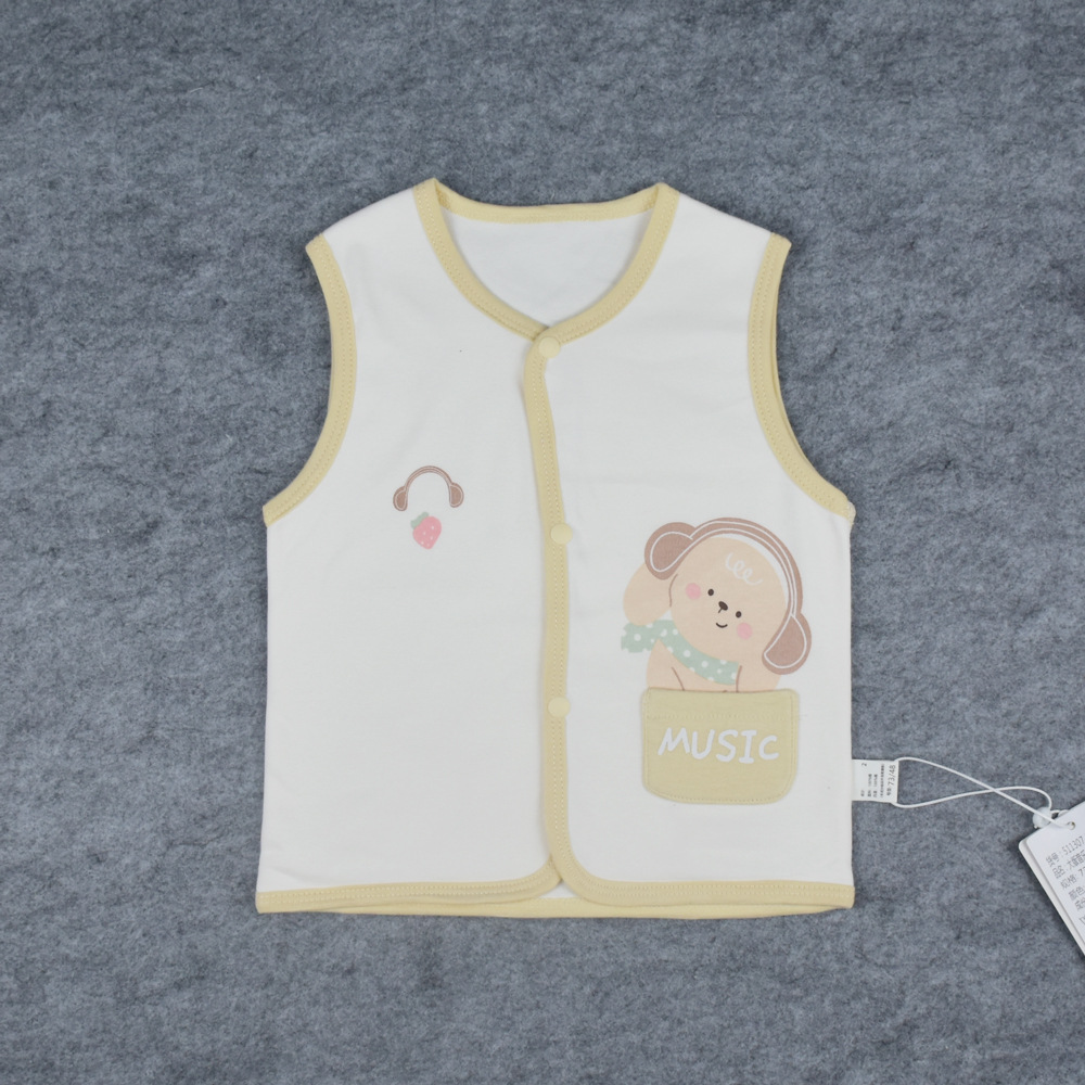 봄, 가을 신상 아기 이중 조끼, 면 소재, 무봉제 앞면 버튼, 만화 캐릭터 아기 조끼, 73-90 사이즈스토어 가기