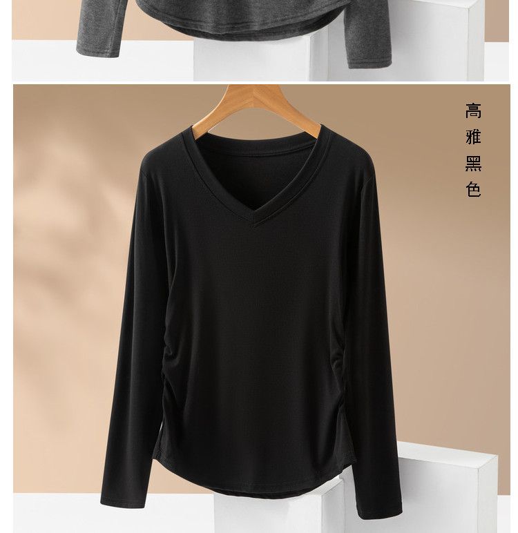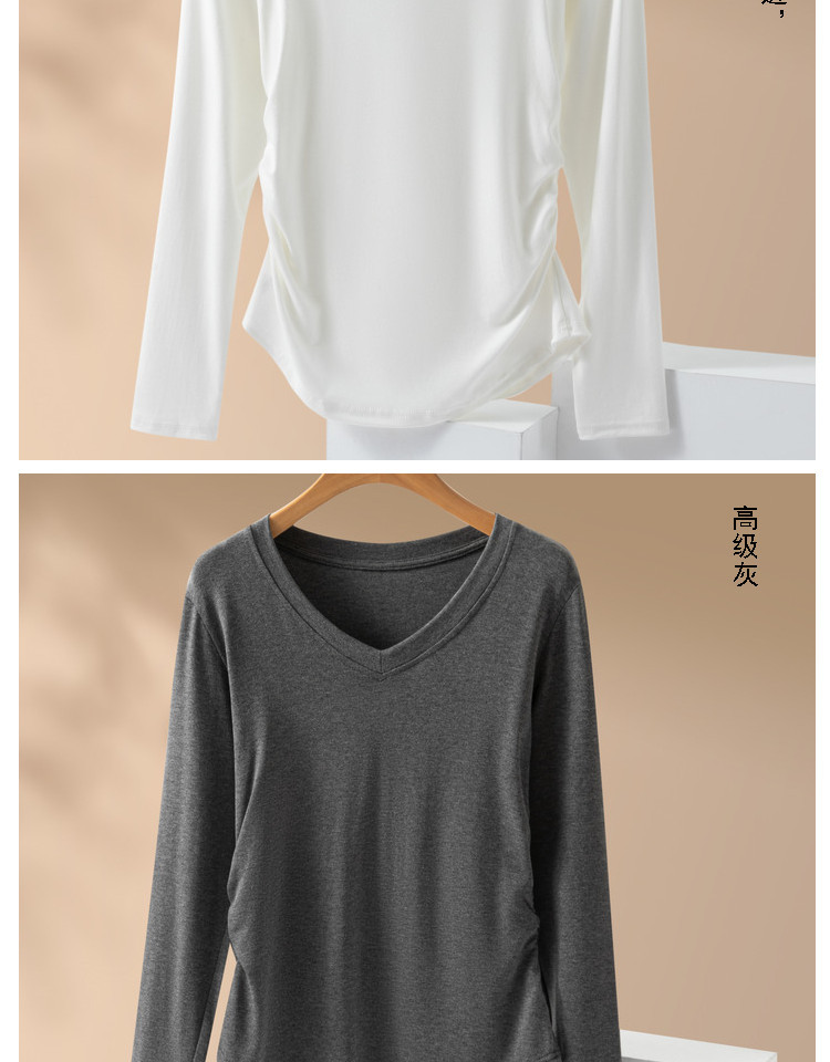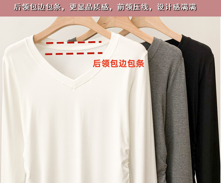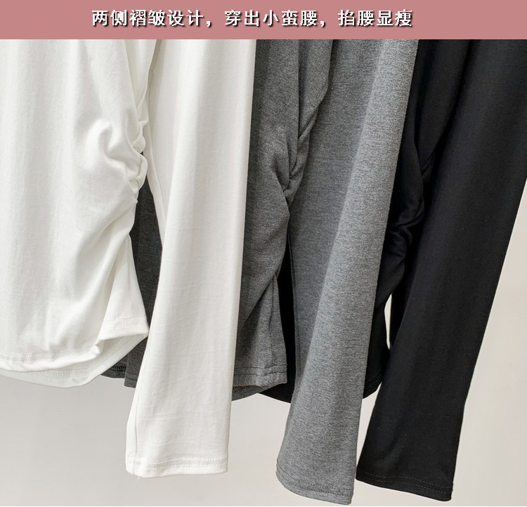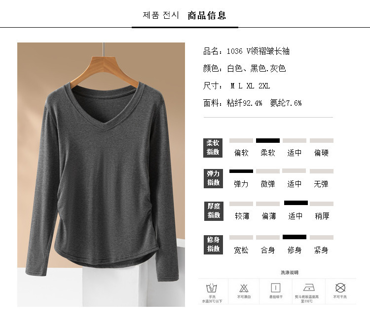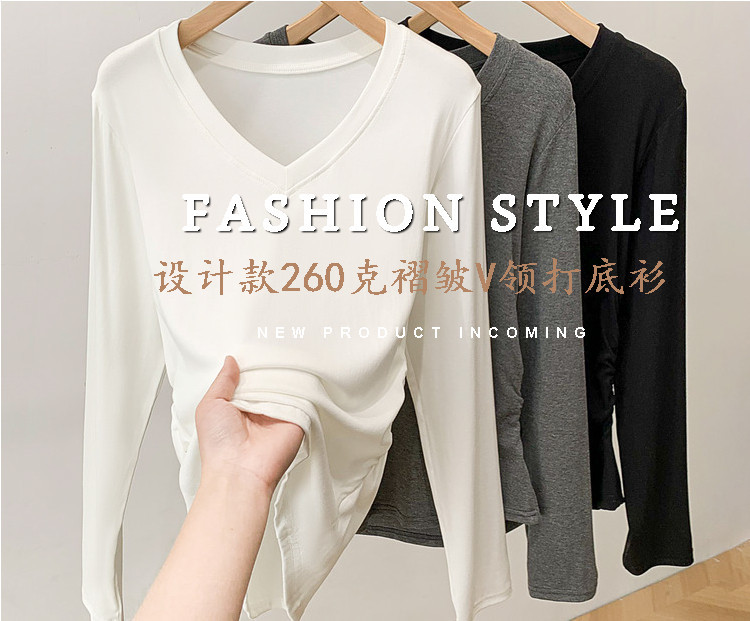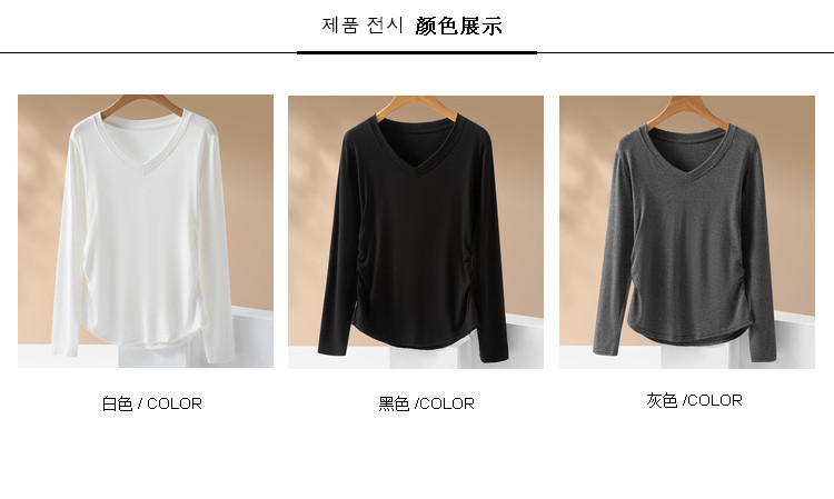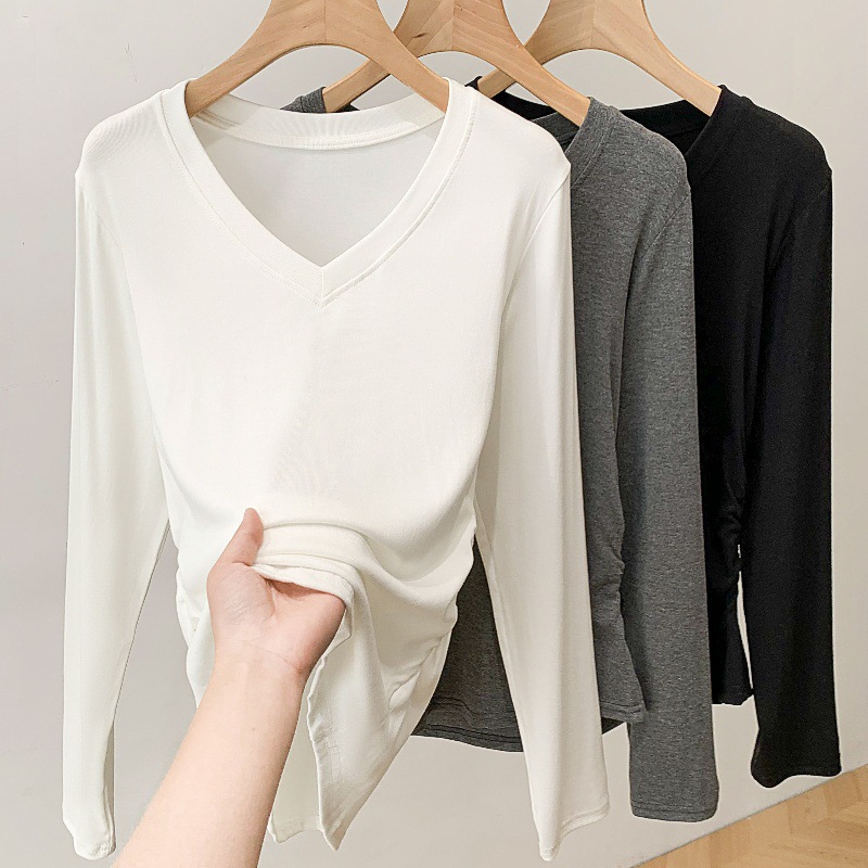 브이넥 여성용 주름 허리라인 블라우스 신상 고급스러운 화이트 티셔츠 가을 슬림핏 다용도 이너웨어스토어 가기