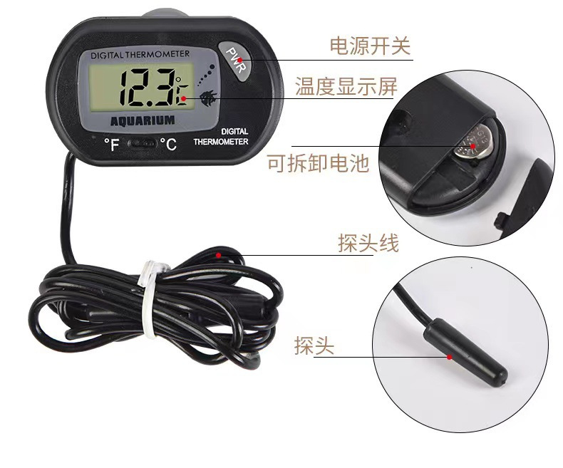 물고기 탱크 온도계 파충류 거북이 흡입 컵 다이빙 애완 동물 상자 프로브 방수 전자 온도계 ST-3