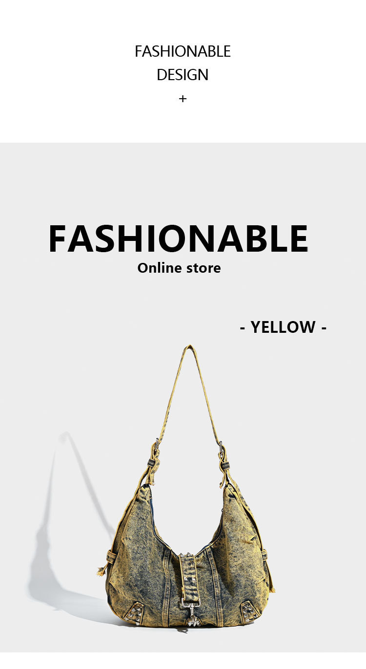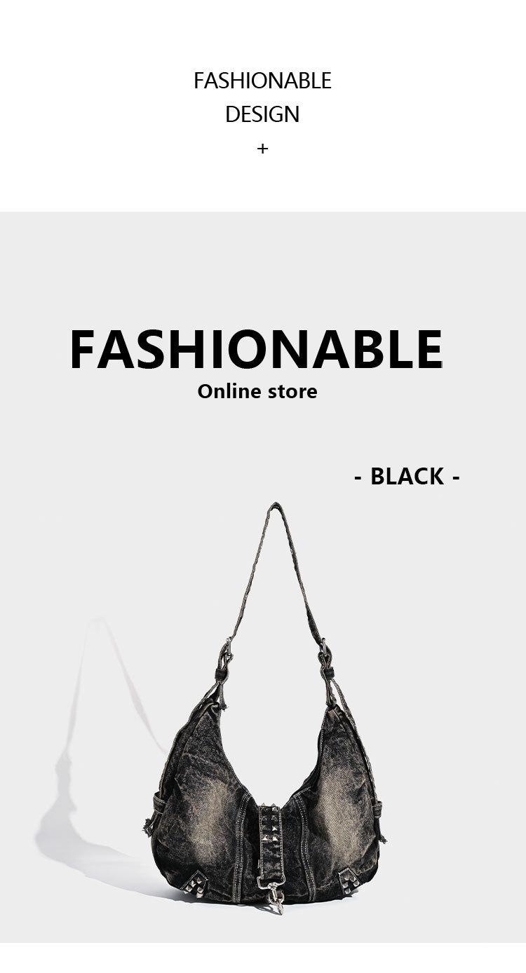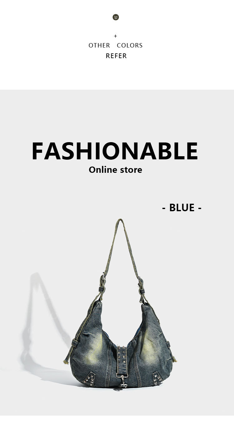 대용량 토트 백 세탁 데님 가방 리벳 아메리칸 스타일 유행 인 어깨 가방 통근 크로스 바디 백