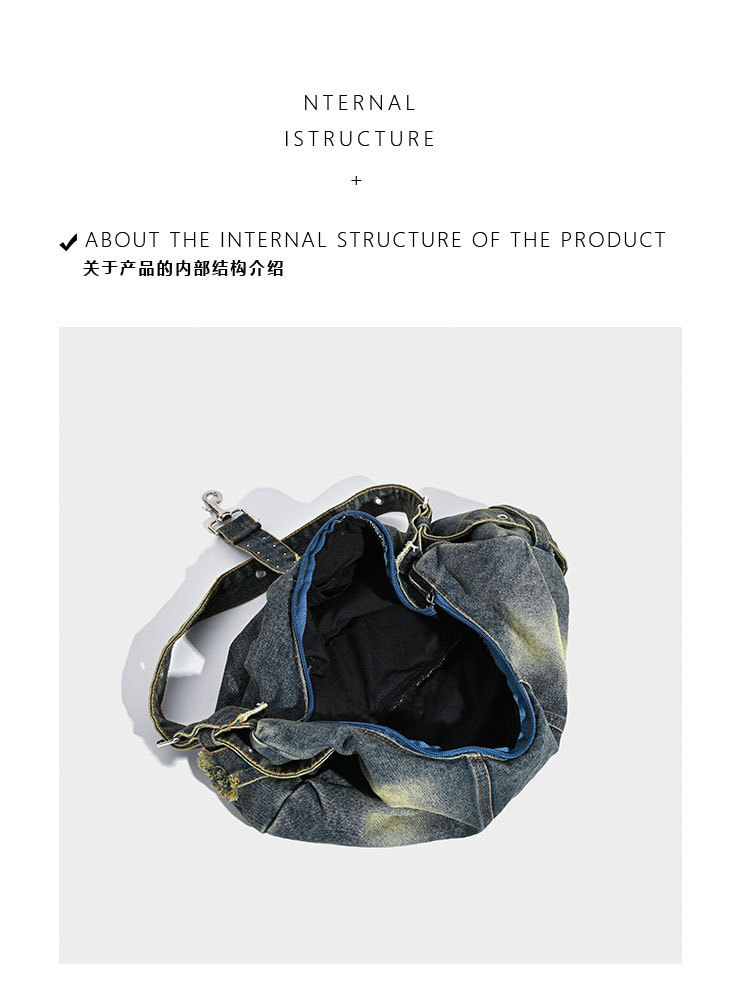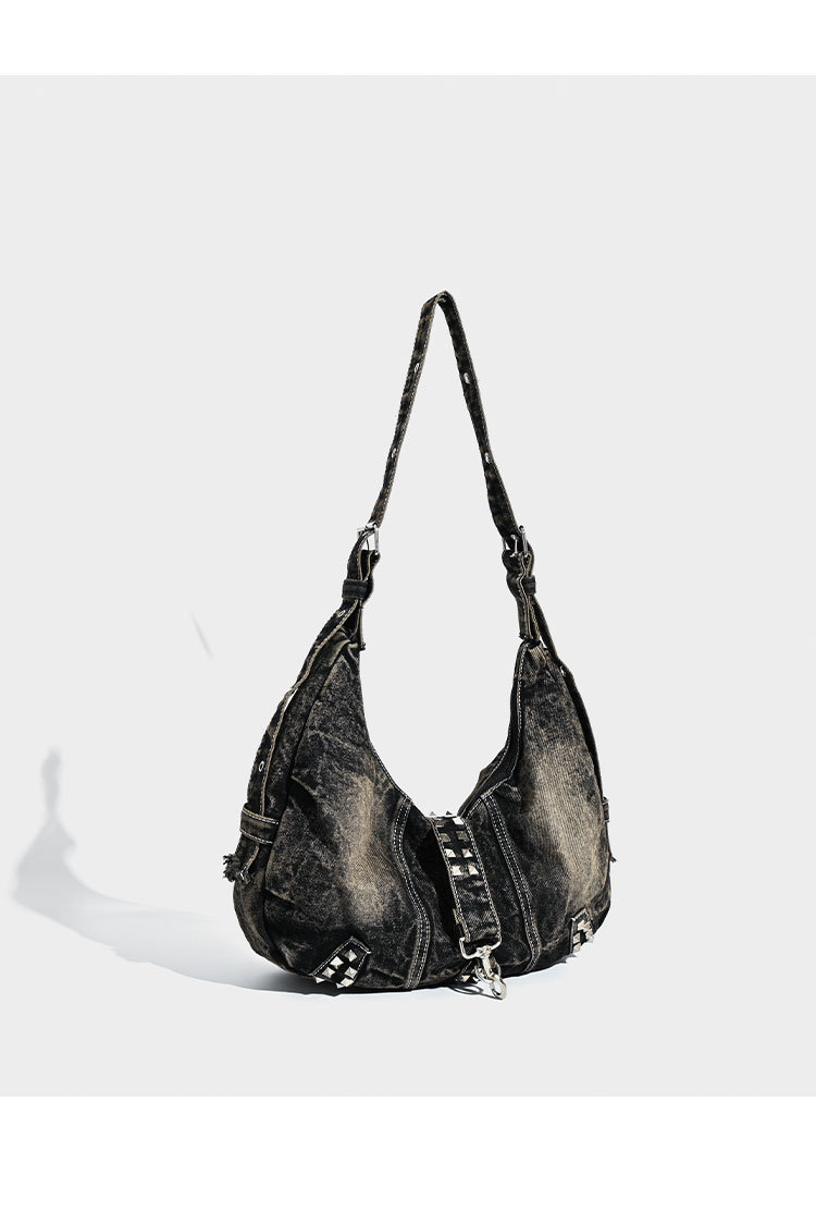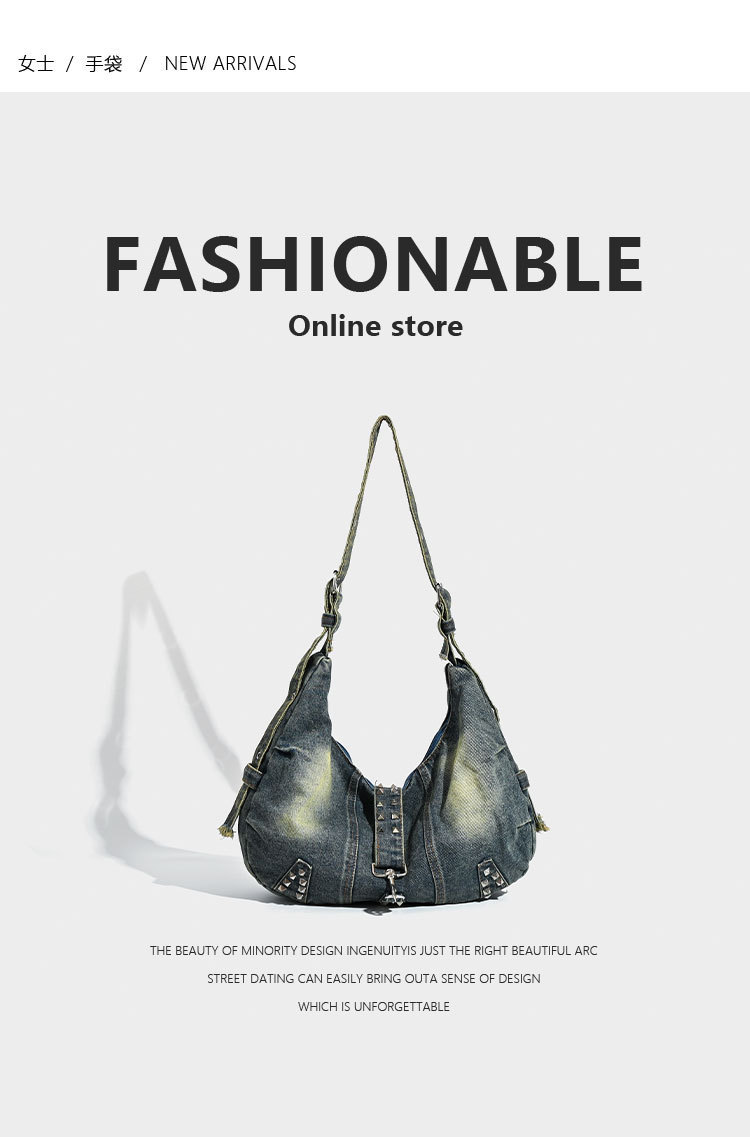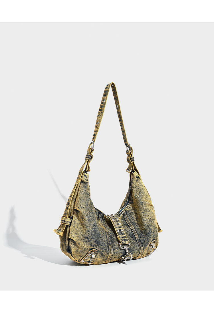 대용량 토트 백 세탁 데님 가방 리벳 아메리칸 스타일 유행 인 어깨 가방 통근 크로스 바디 백