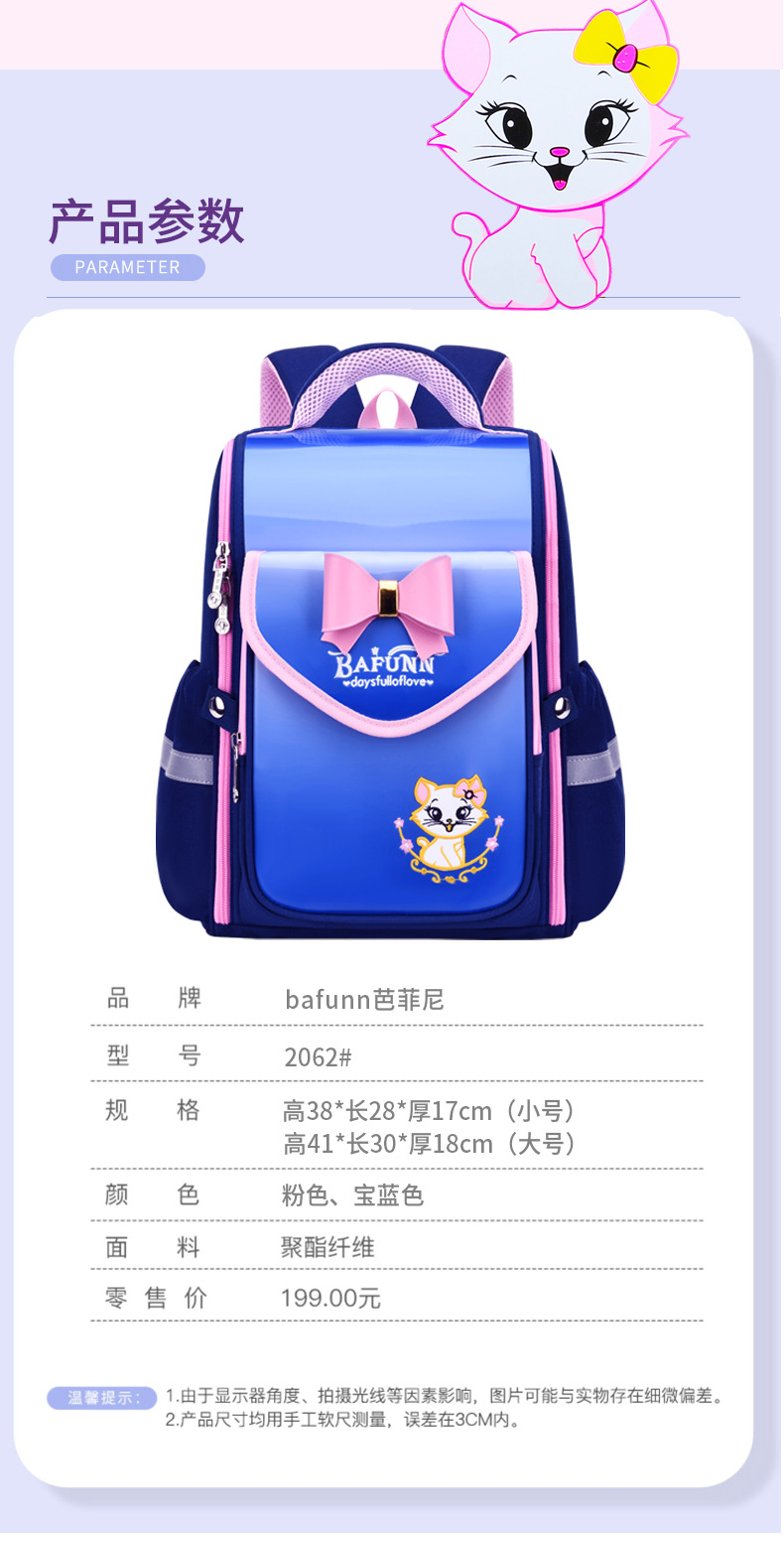 2024 년 새 여아 초등학생 123 ~ 456 학년 어린이 부담 감소 및 능선 보호 대용량 책가방