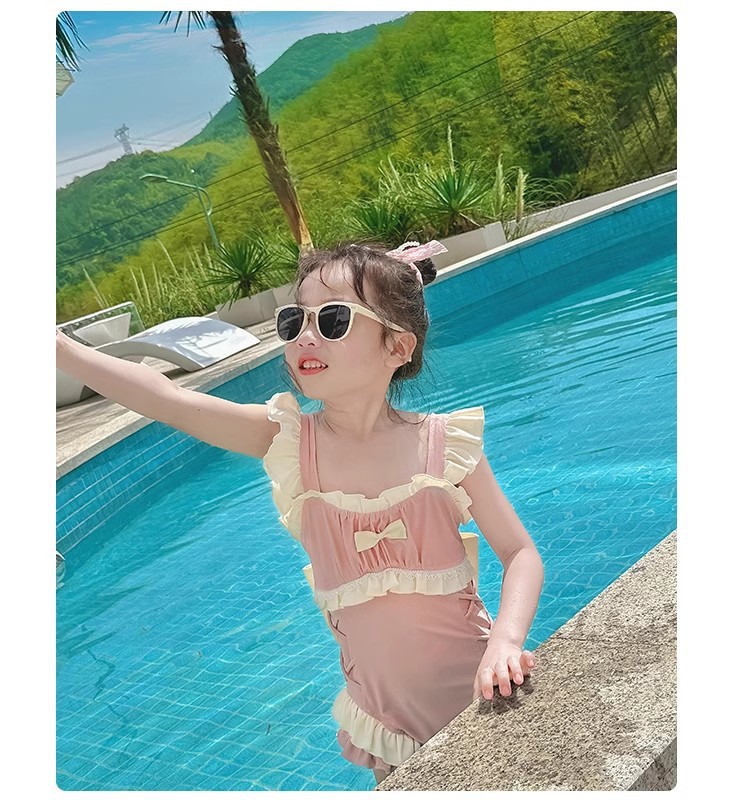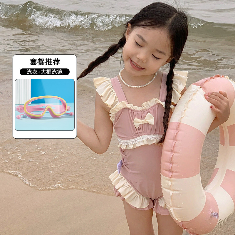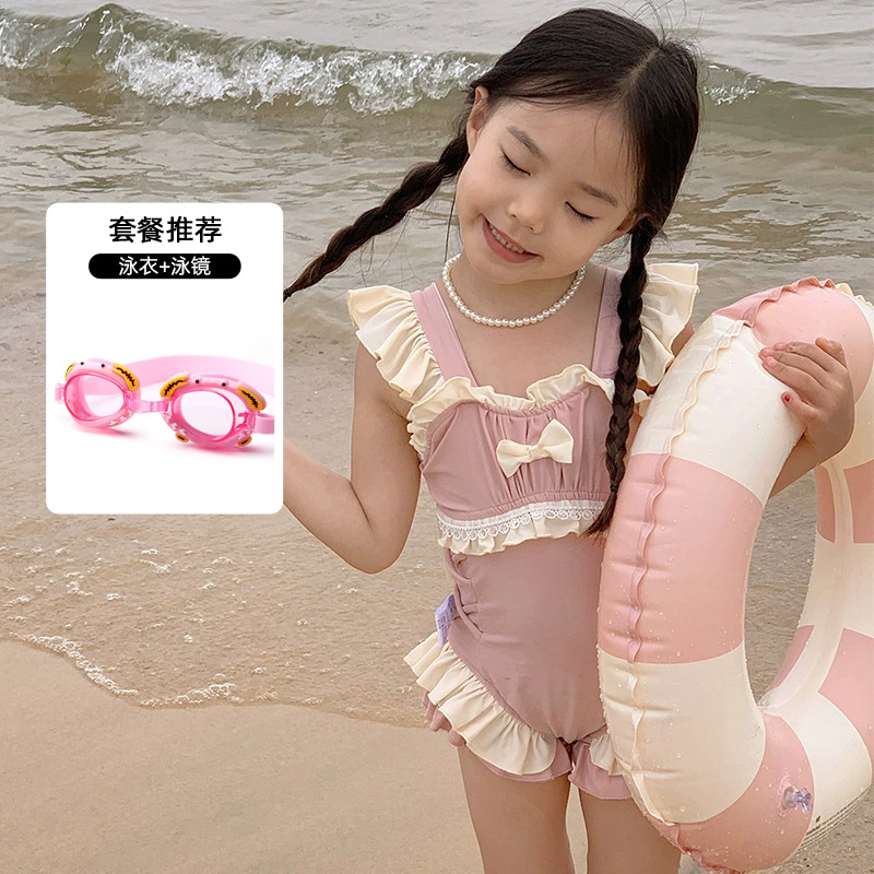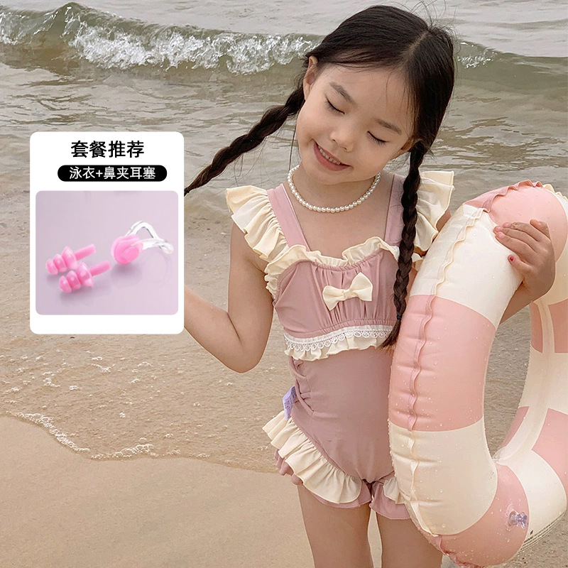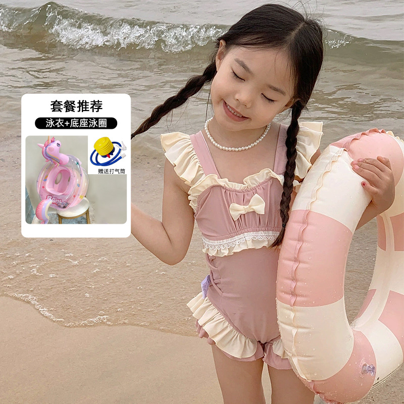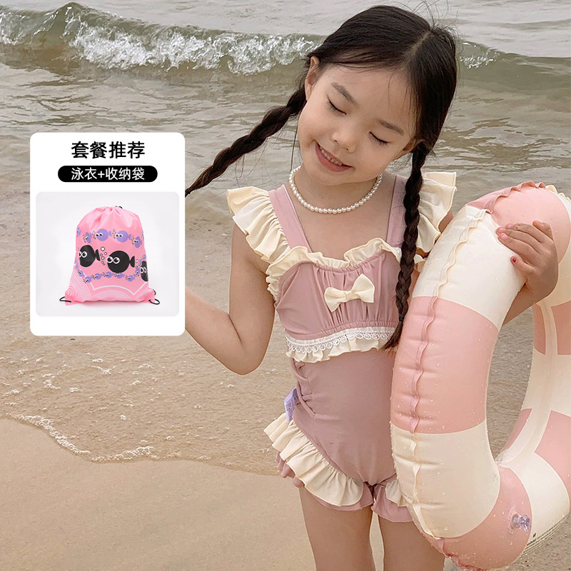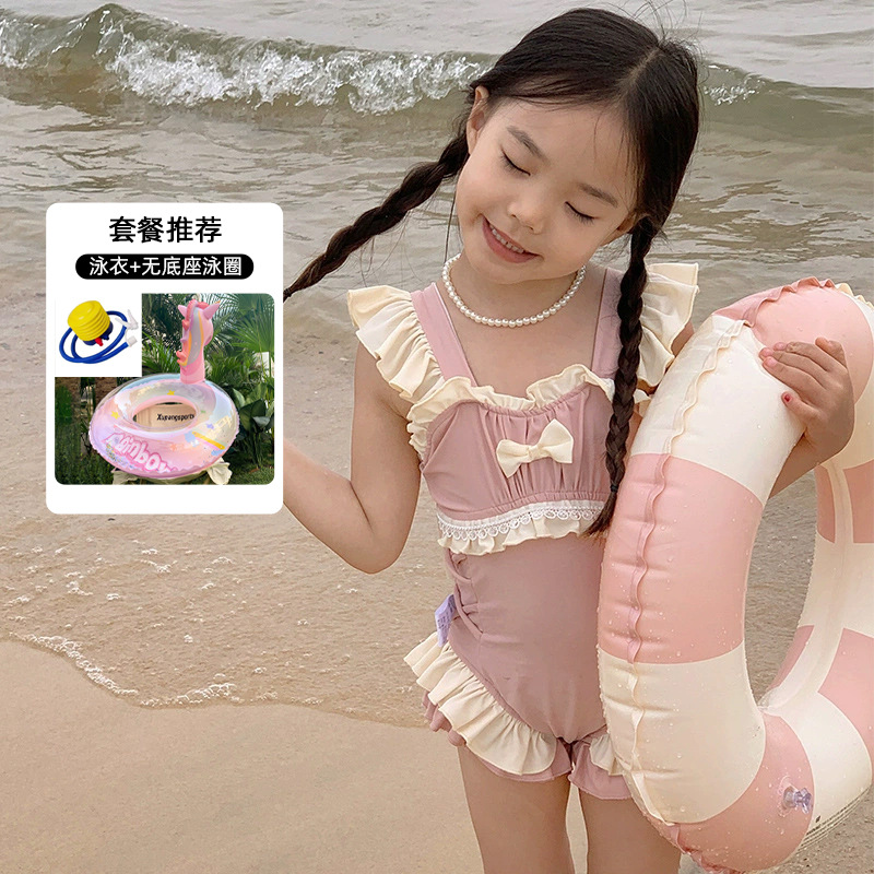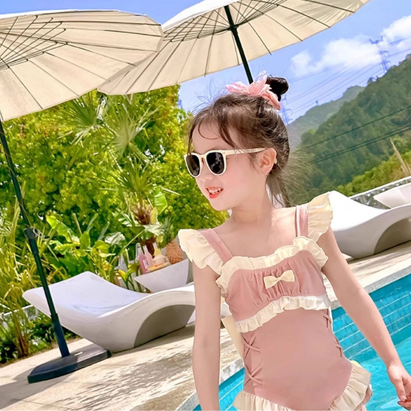 신상 여아용 스트랩 수영복 한국 스타일 아동 수영복 여자 아기 온천복 원피스 수영복