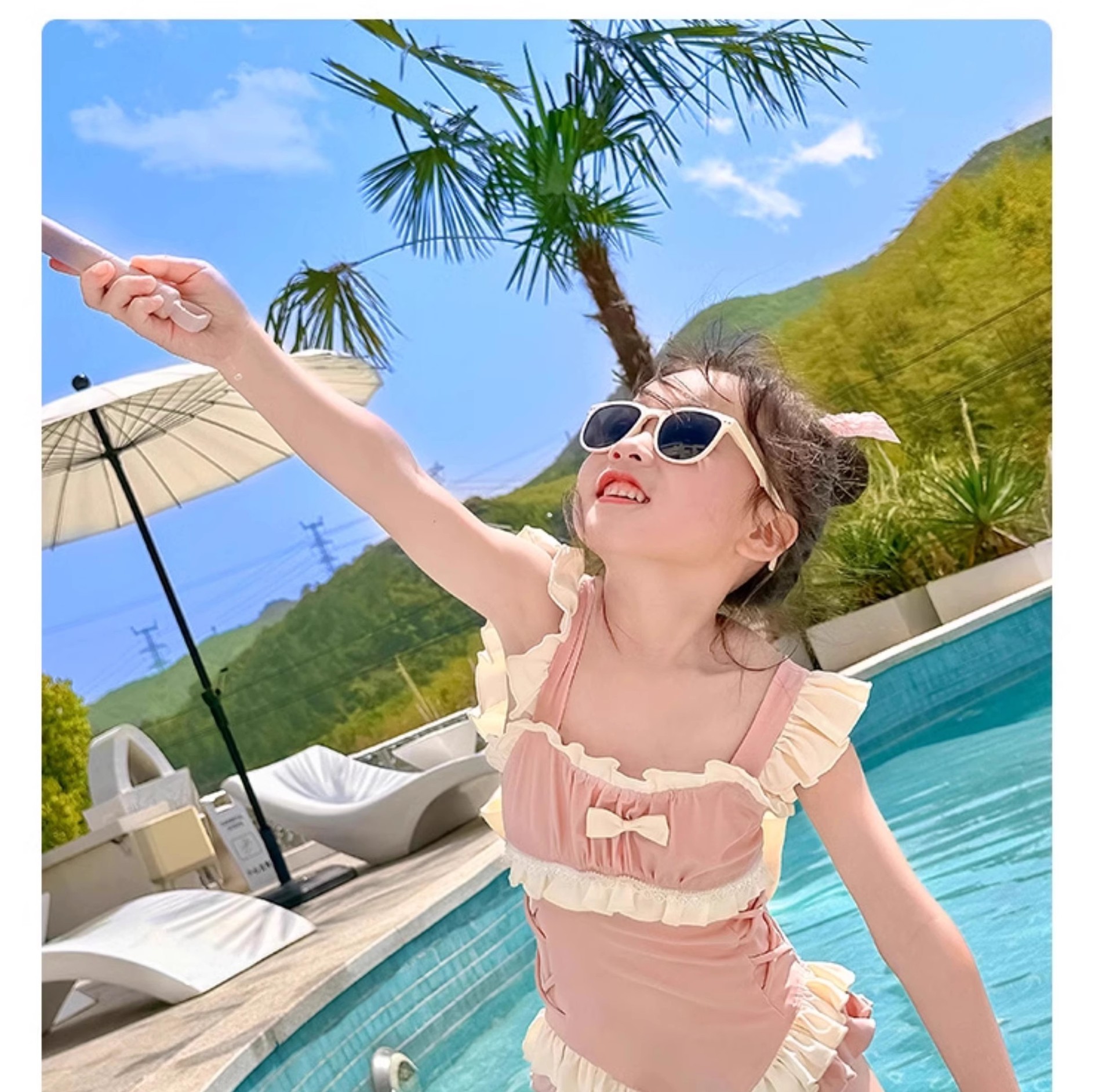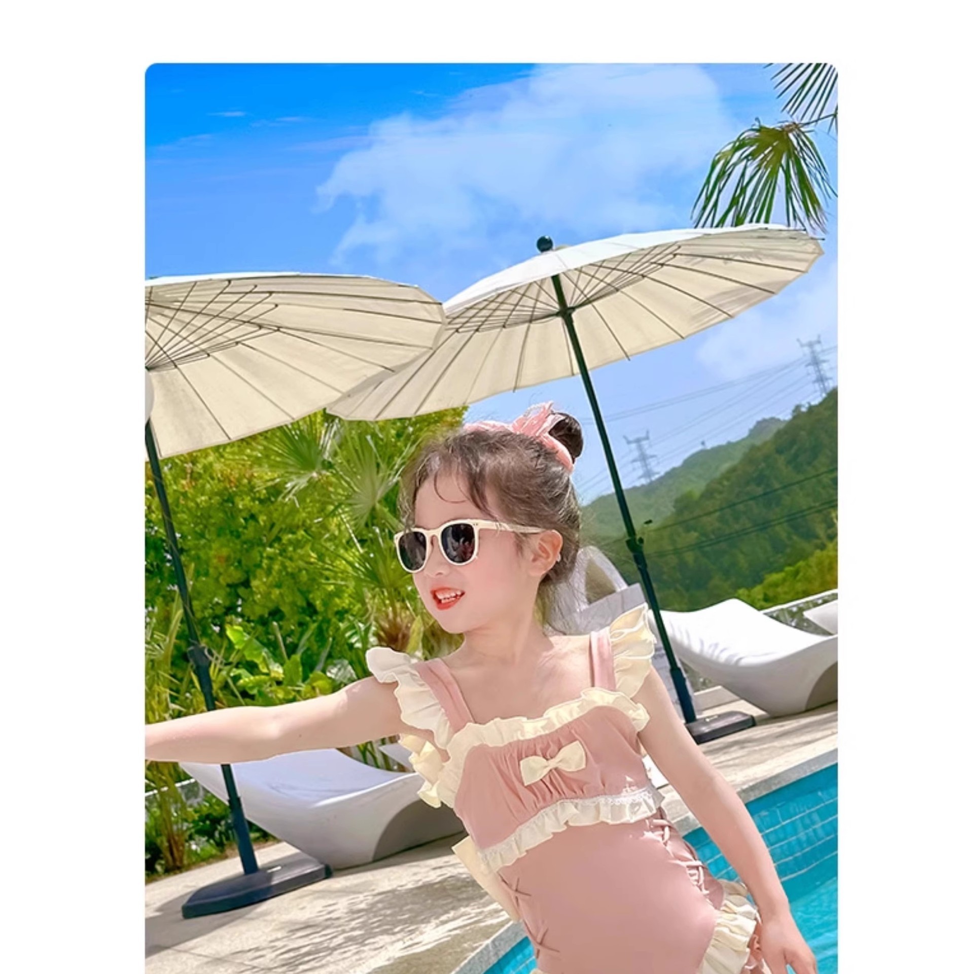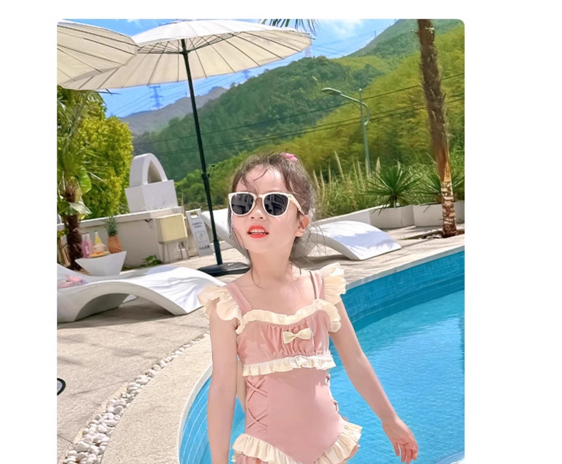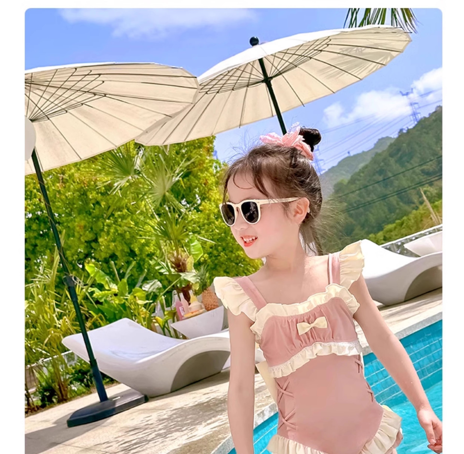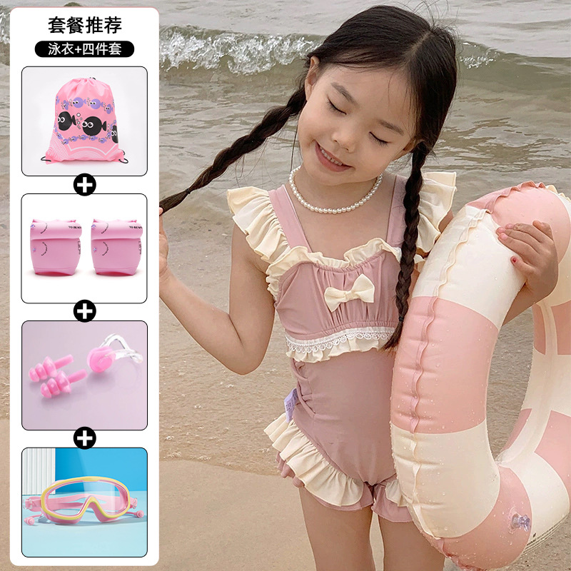 신상 여아용 스트랩 수영복 한국 스타일 아동 수영복 여자 아기 온천복 원피스 수영복