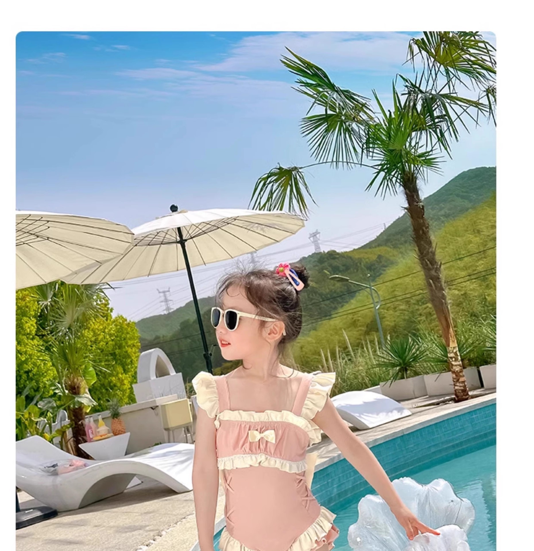 신상 여아용 스트랩 수영복 한국 스타일 아동 수영복 여자 아기 온천복 원피스 수영복스토어 가기