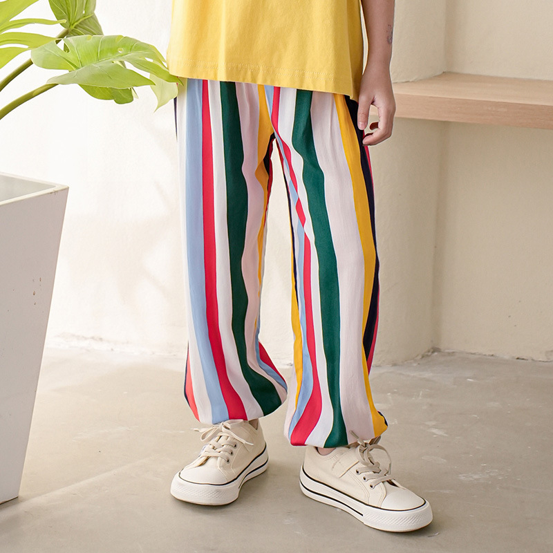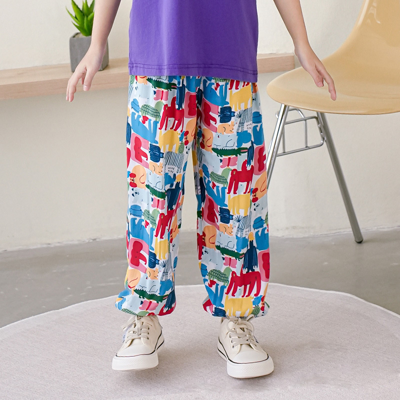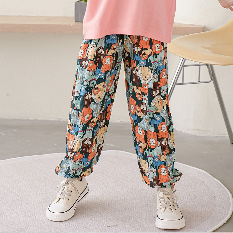 여름 어린이 홈 바지 2025 새로운 소년과 소녀 안티 모기 바지 블루머스 쿨 바지 부모-어린이 태양 보호 바지스토어 가기