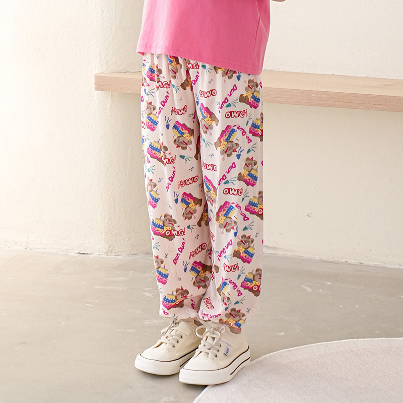 여름 어린이 홈 바지 2025 새로운 소년과 소녀 안티 모기 바지 블루머스 쿨 바지 부모-어린이 태양 보호 바지