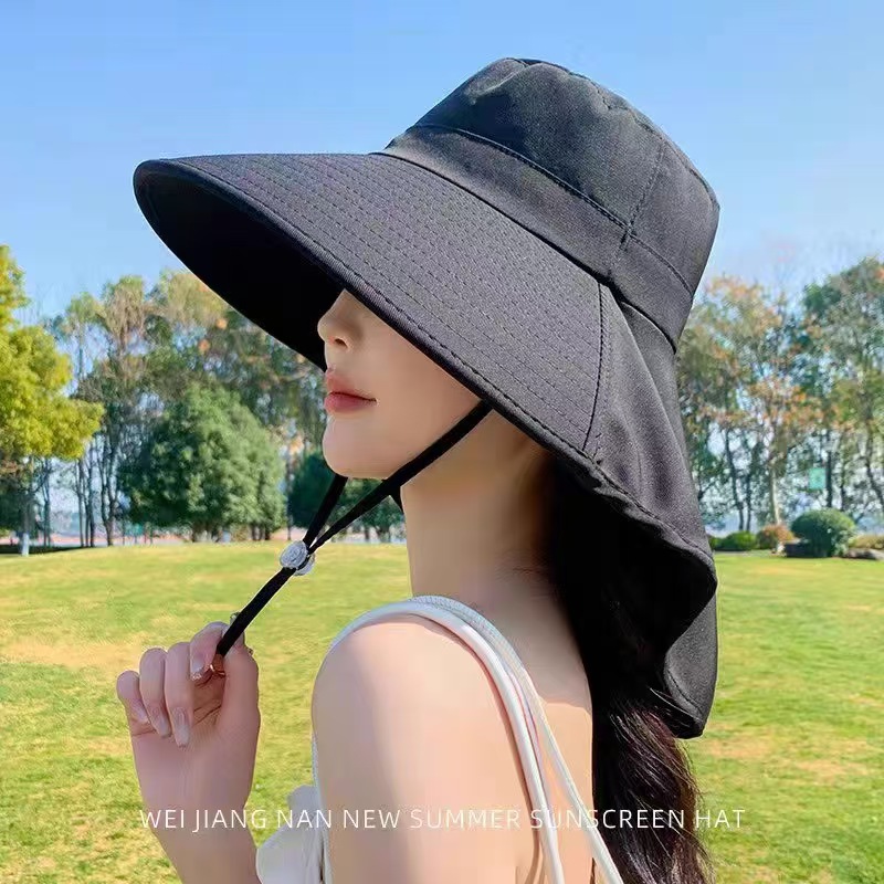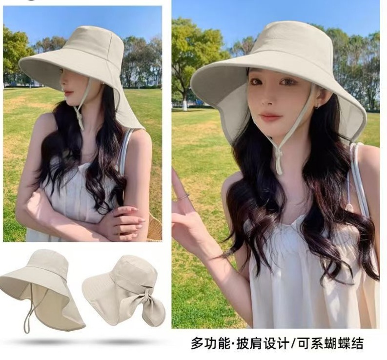 2025 년 새로운 여름은 포니 테일 큰 테두리 태양 모자 여성의 안티 자외선 목 어부 모자 선 스크린 모자를 묶을 수 있습니다.