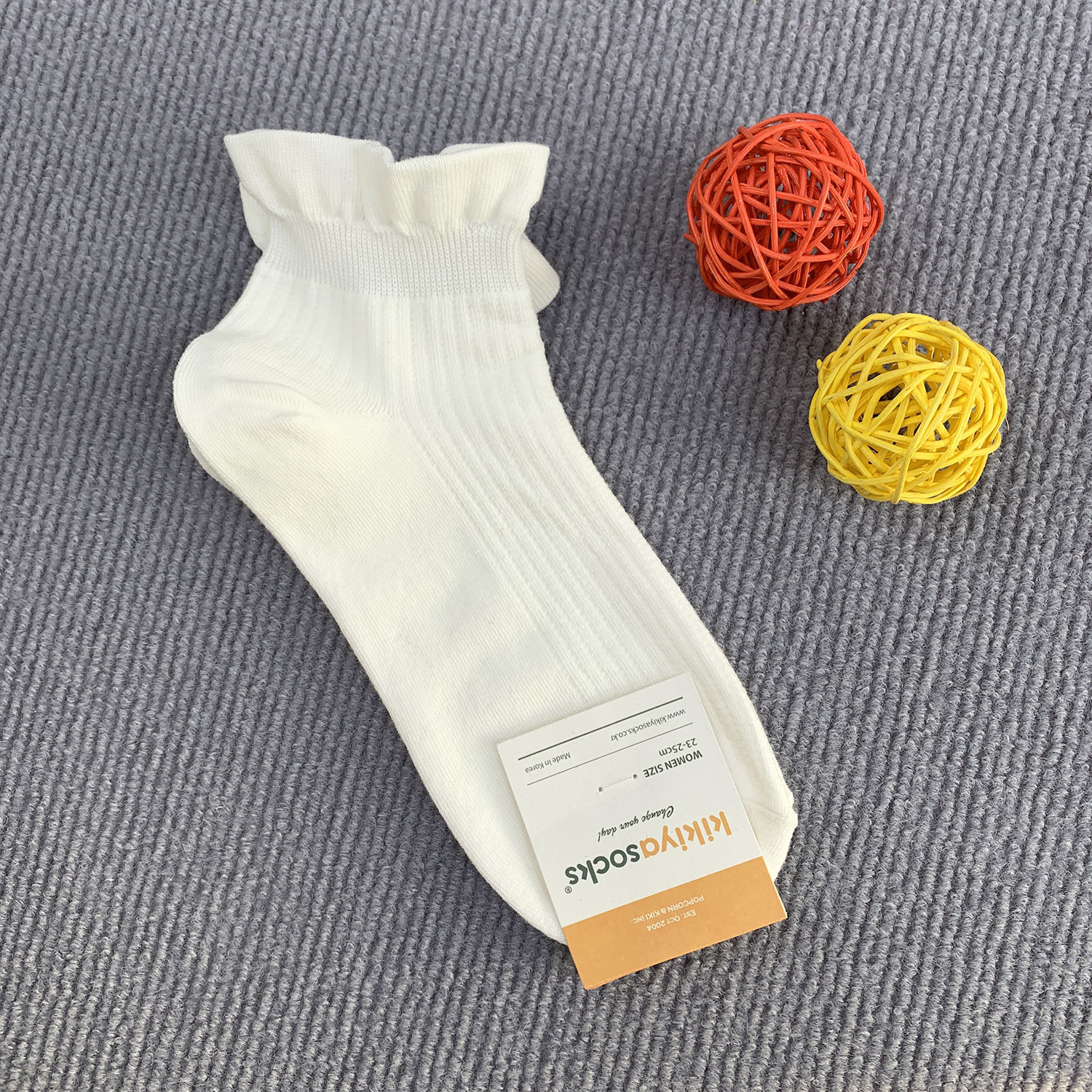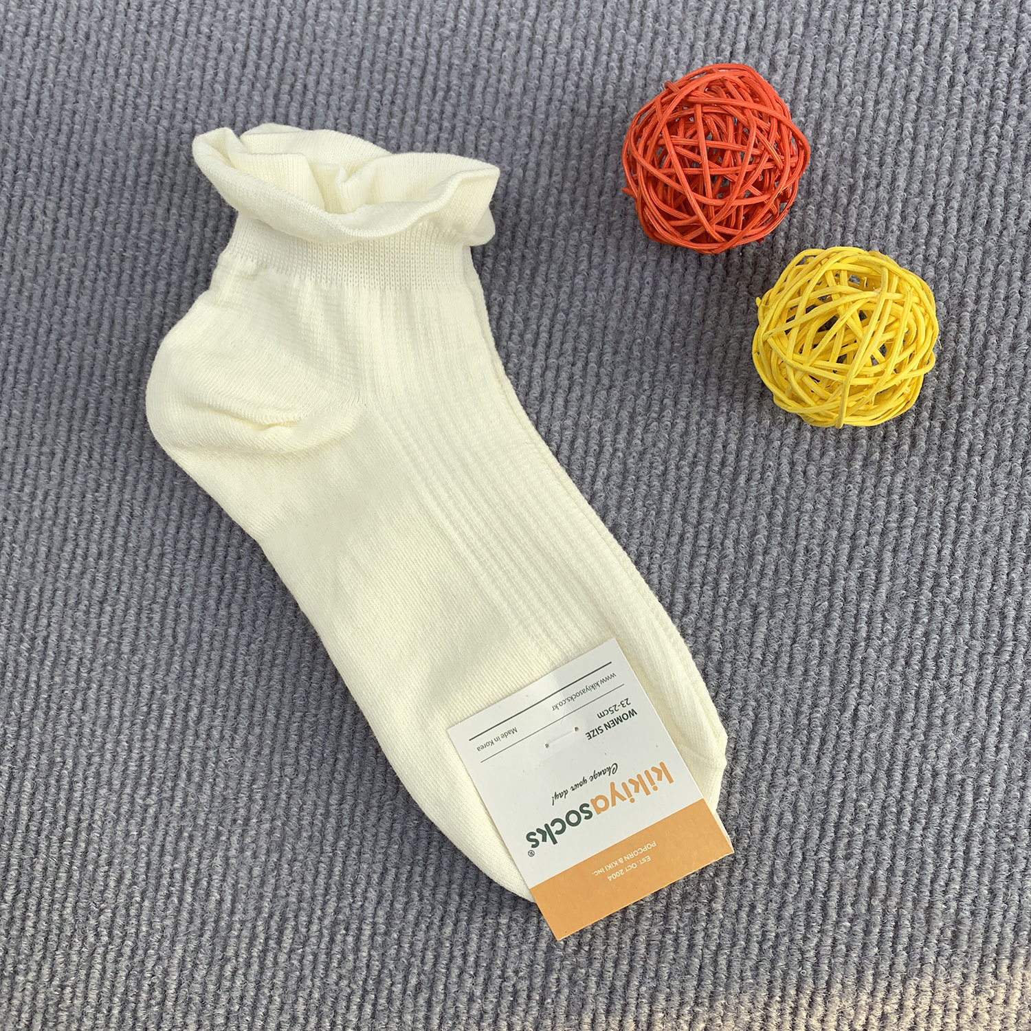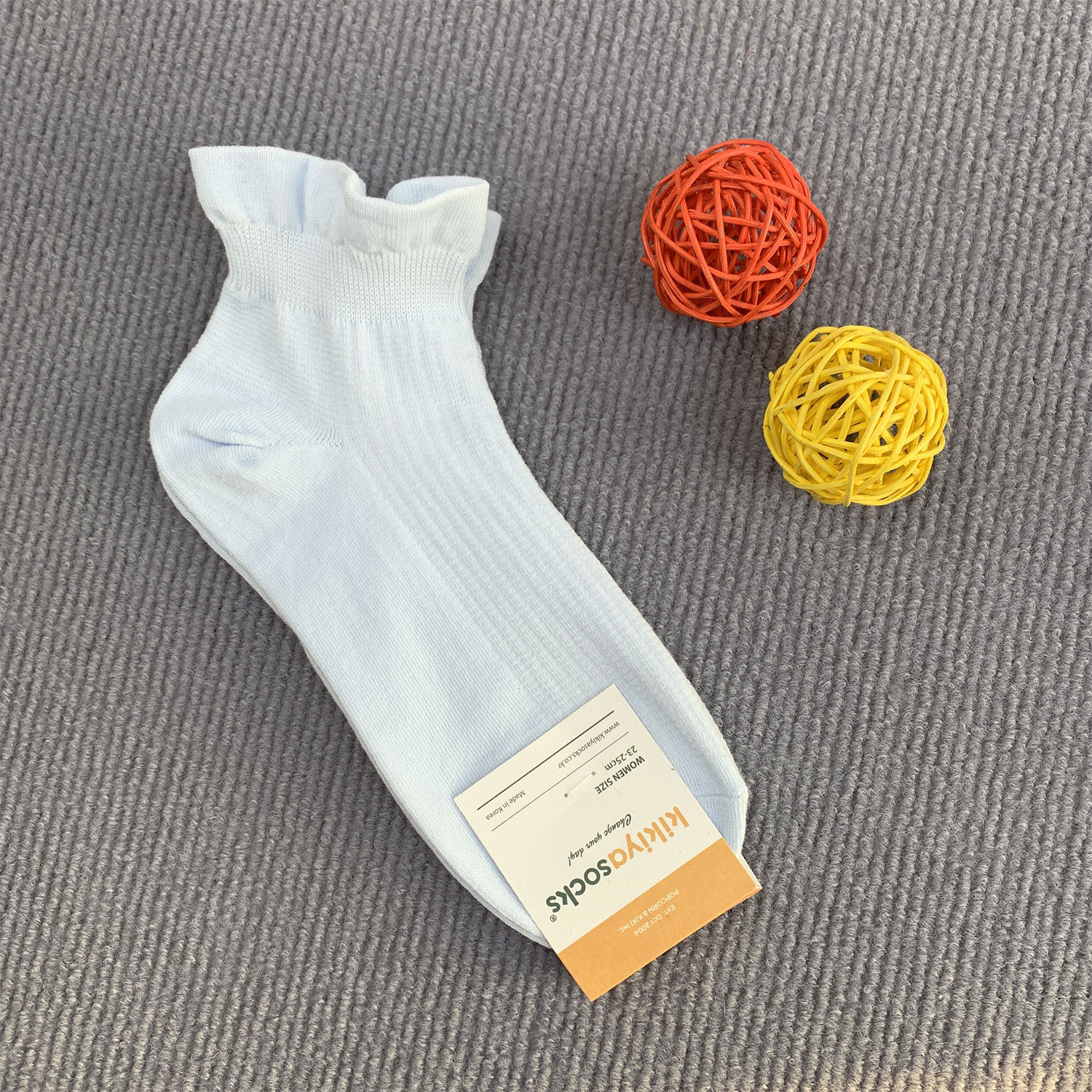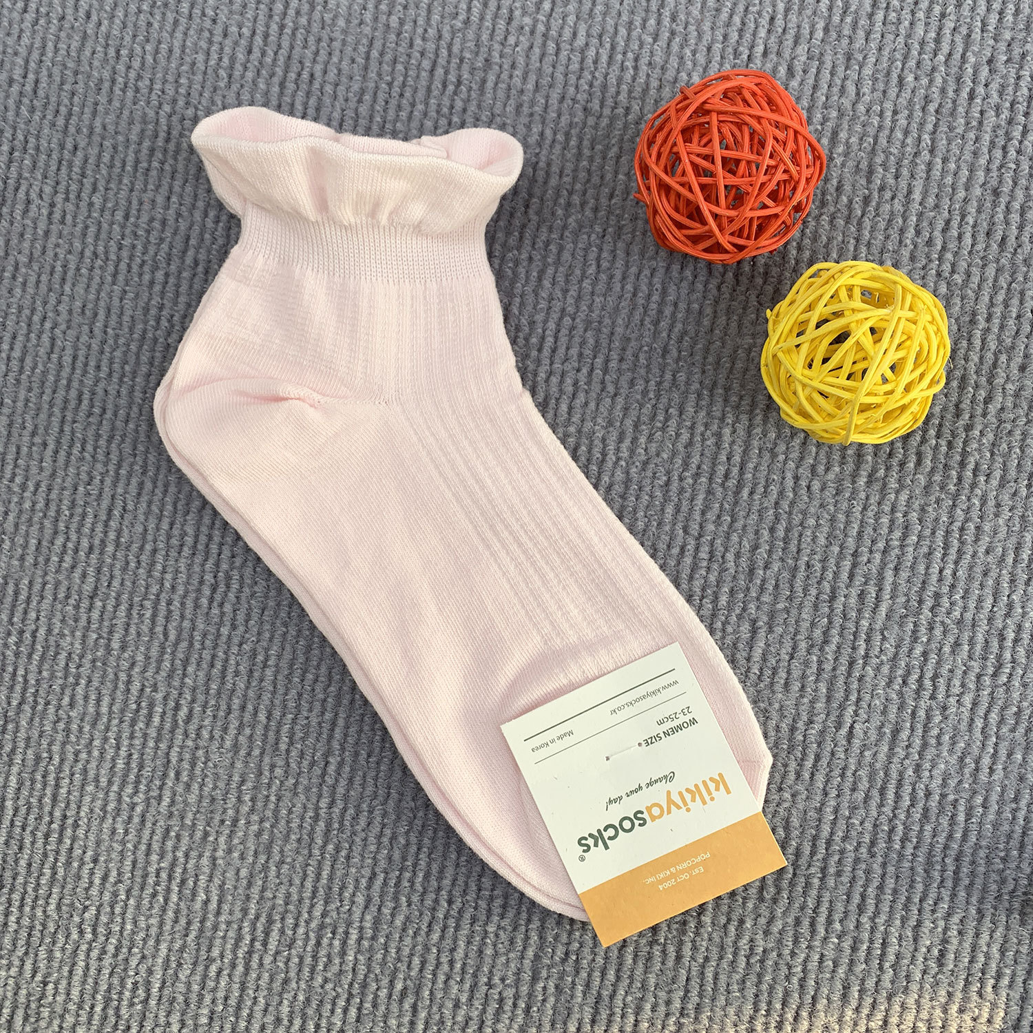 WA092 한국 키키야 이른 봄 새 캔디 컬러 솔리드 컬러 플리츠 사이드 양말 여성용 코튼 양말스토어 가기