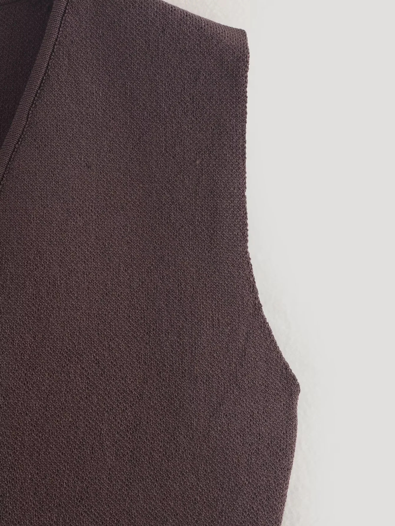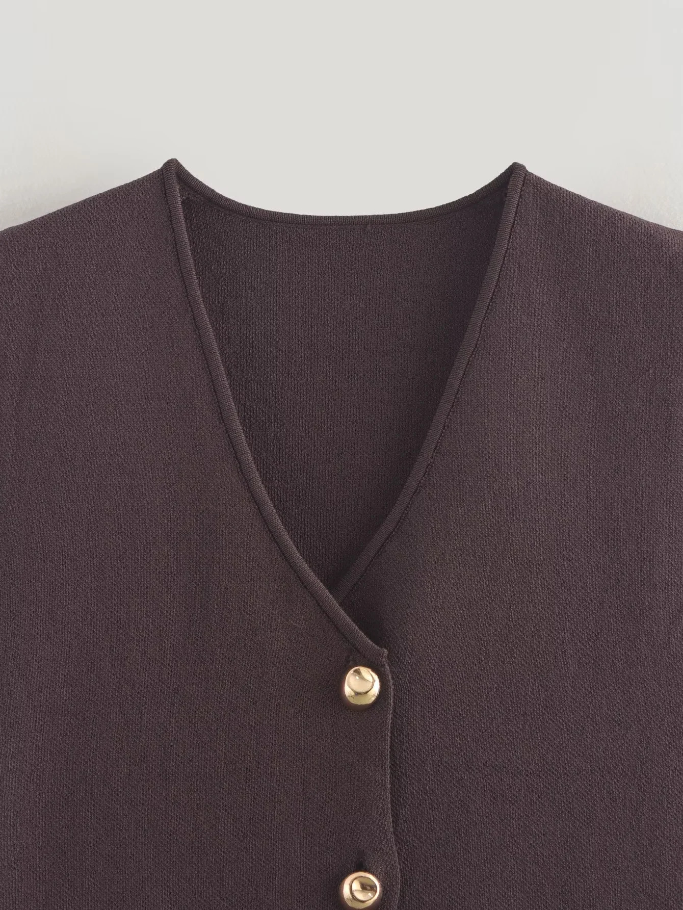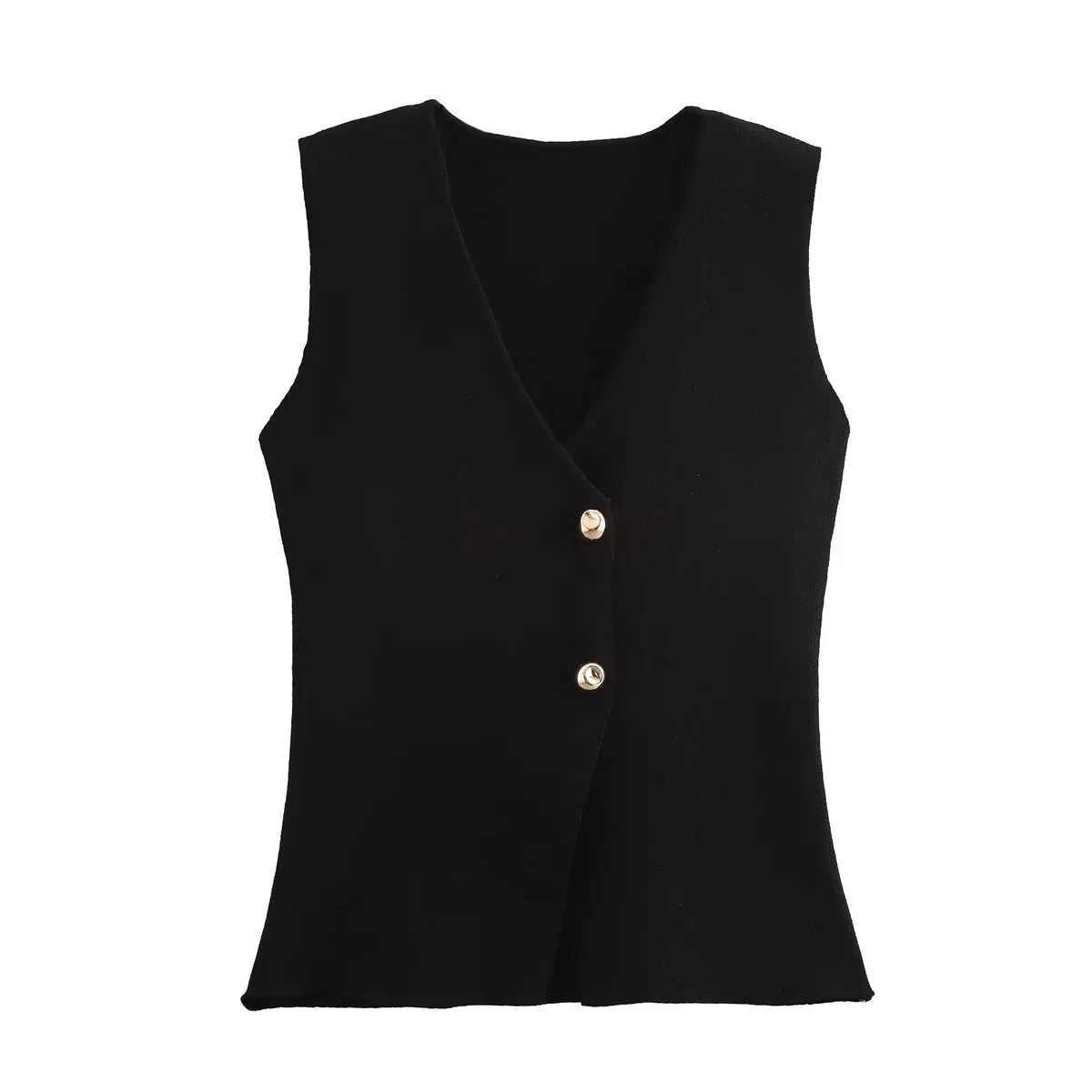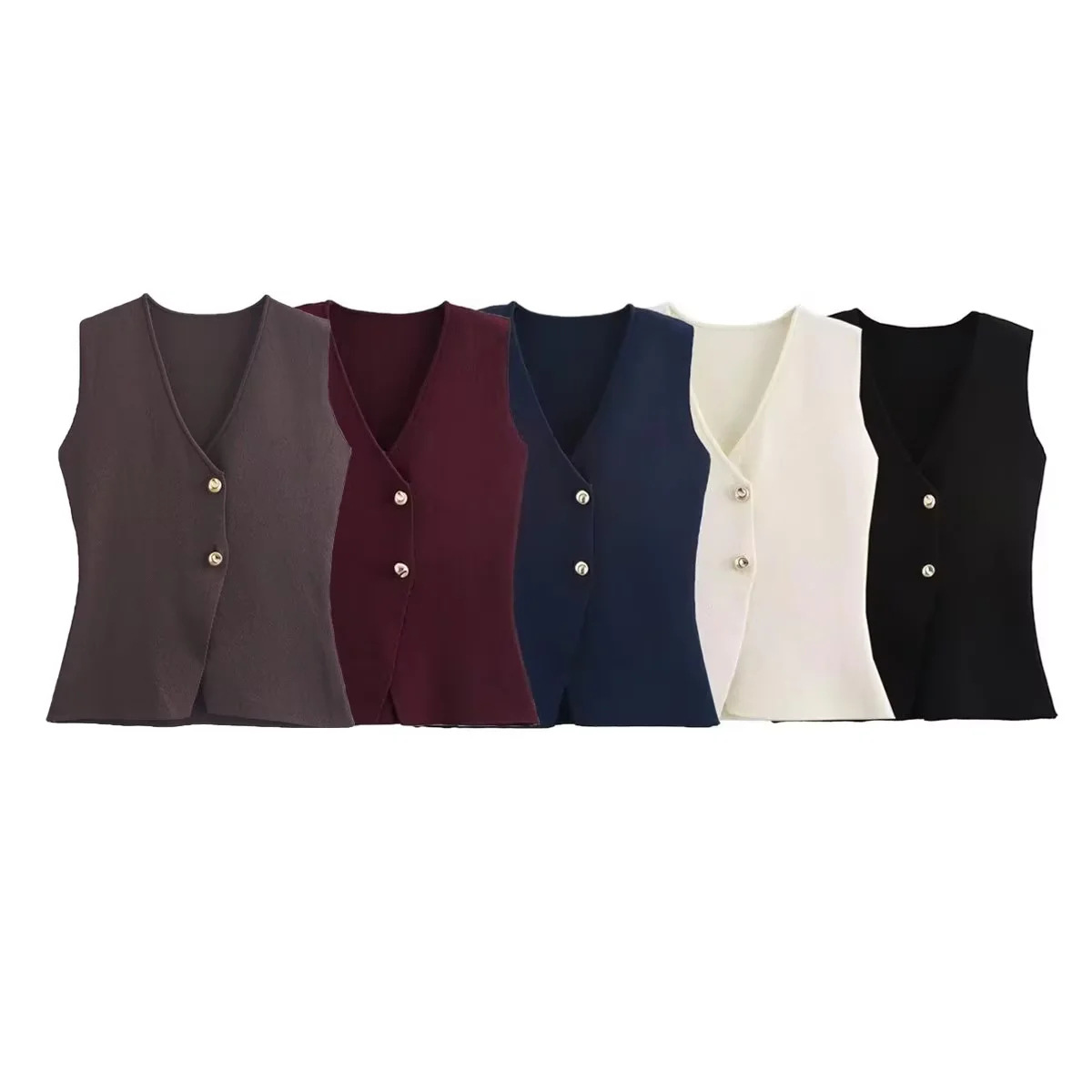 2025 년 여름 새로운 국경 유럽 및 미국 V 넥 골든 버튼 니트 조끼 주름 오버 스커트 세트 여성 의류스토어 가기