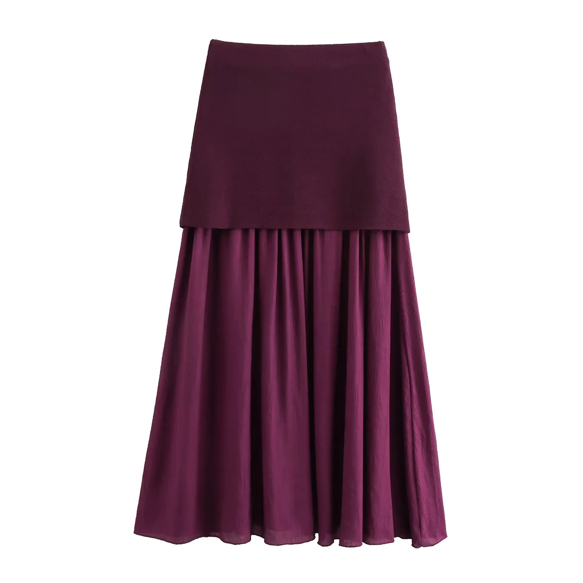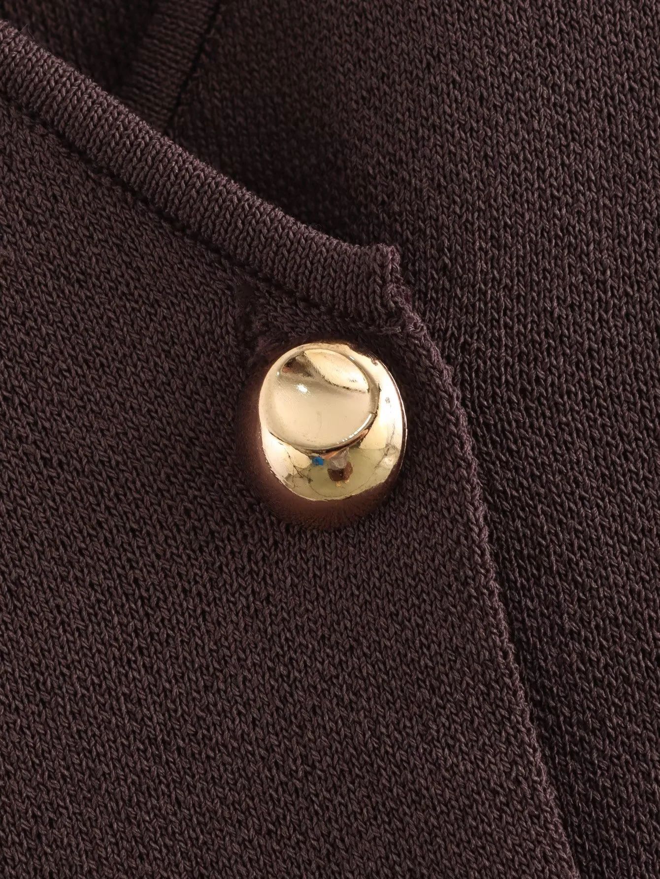 2025 년 여름 새로운 국경 유럽 및 미국 V 넥 골든 버튼 니트 조끼 주름 오버 스커트 세트 여성 의류