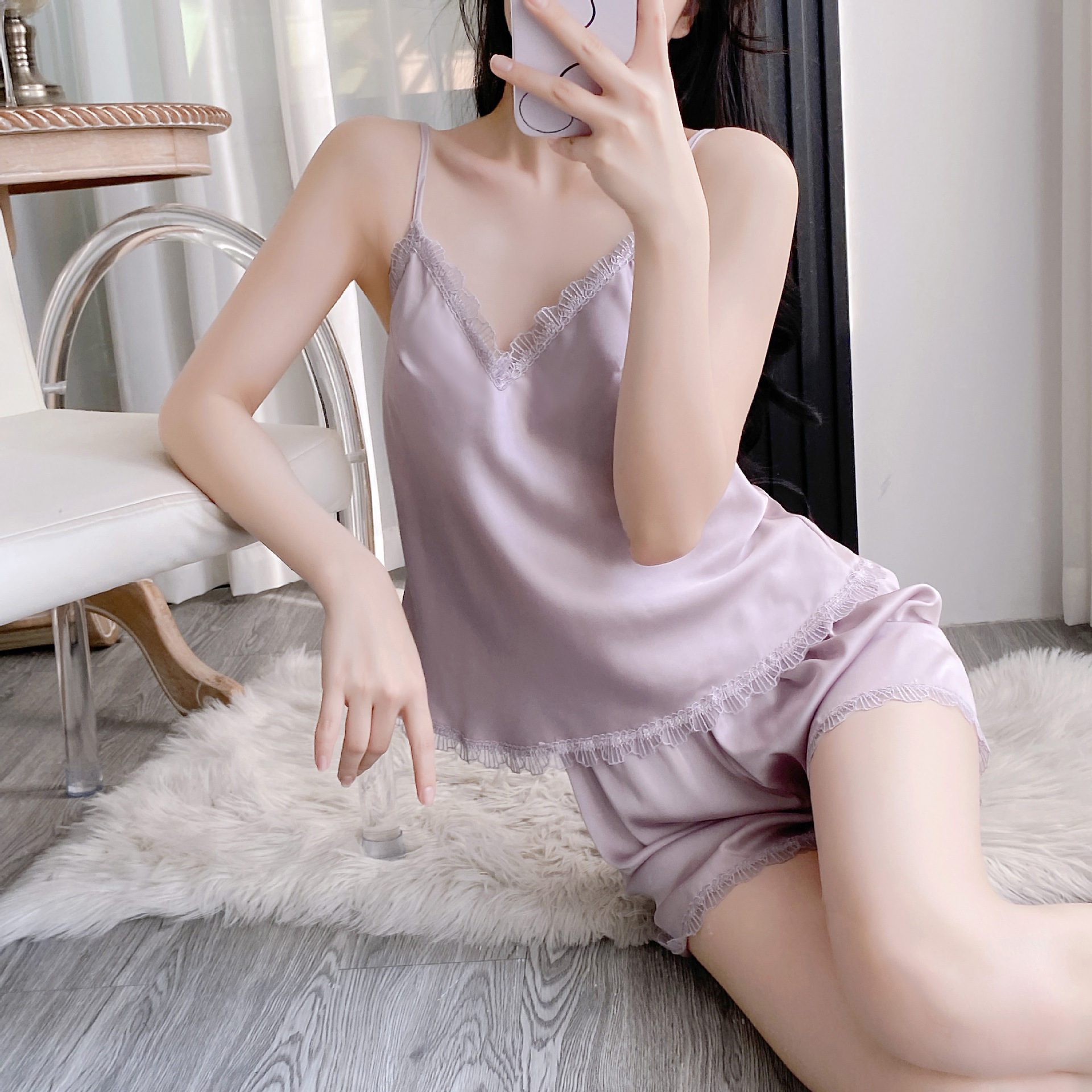 面料:丝绸,带胸垫,可拆卸