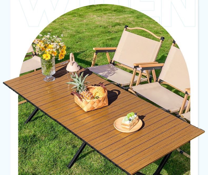야외 캠핑 계란 롤 테이블 피크닉 BBQ 휴대용 접이식 테이블 광고 스톨 X 모양의 야외 금속 접이식 테이블스토어 가기