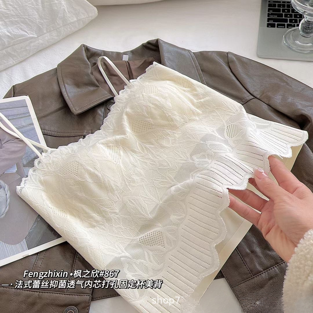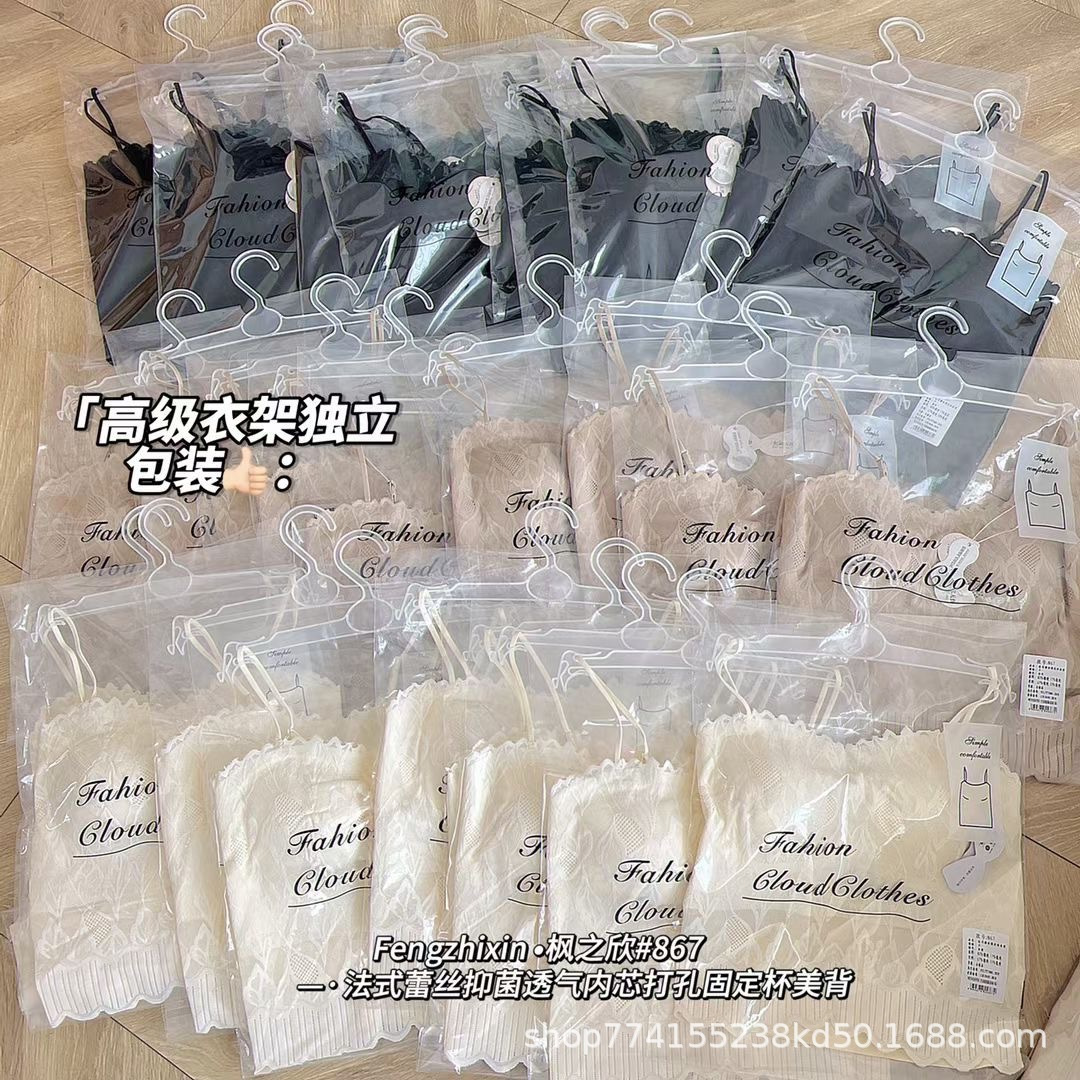 봄과 여름 새로운 하이 엔드 행거 독립 포장 프랑스 레이스 고정 컵 아름다운 백 슬링 원활한 구름 느낌 의류 시리즈스토어 가기