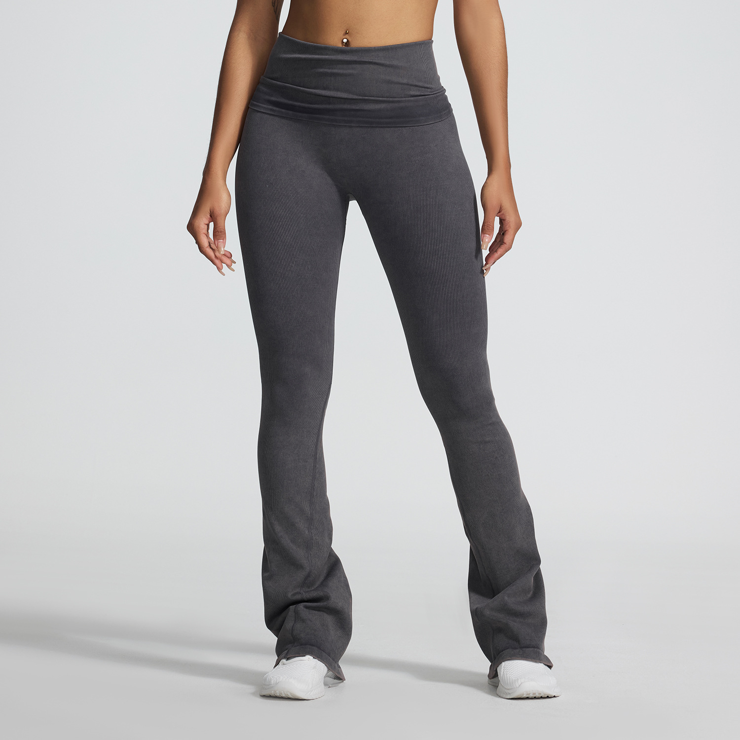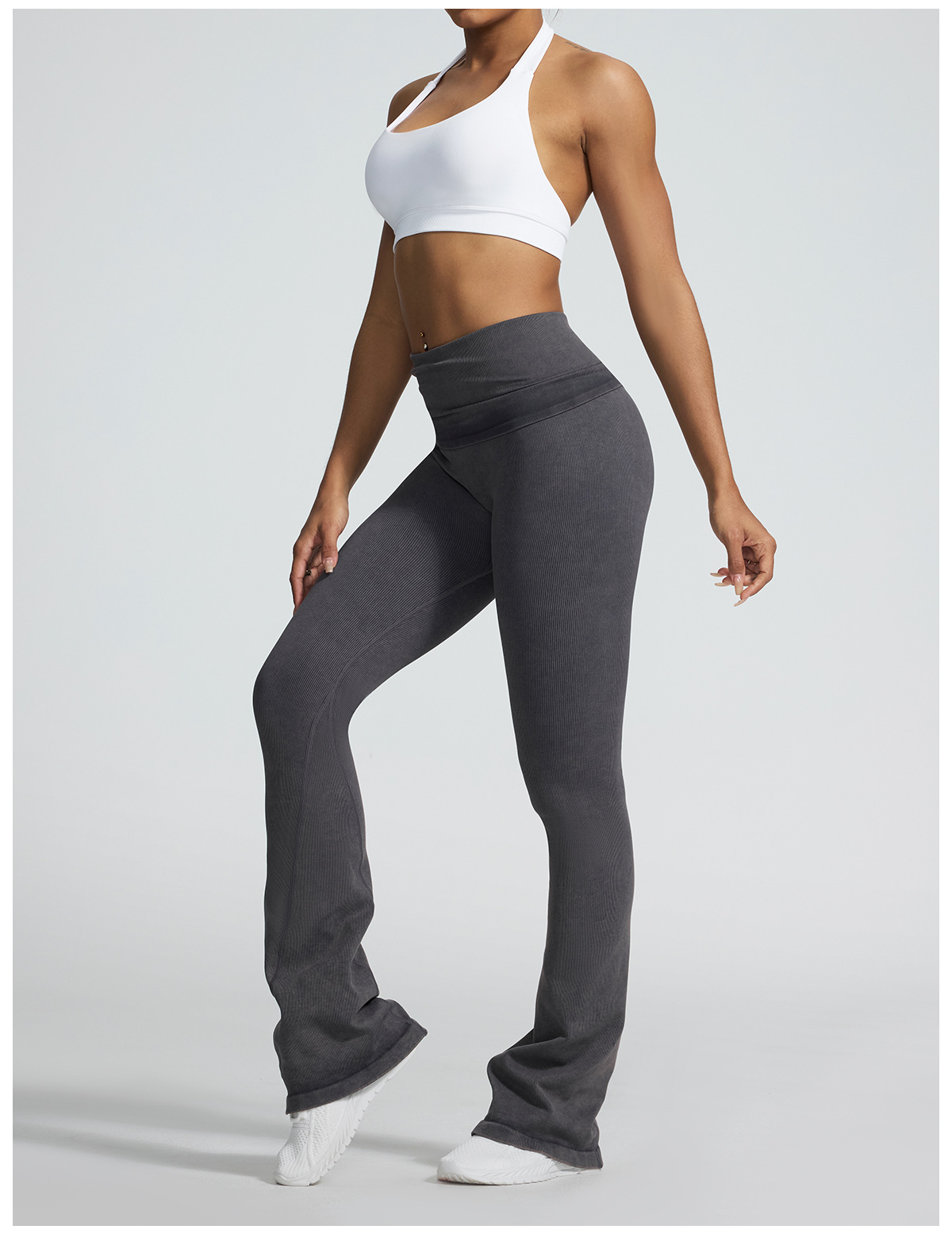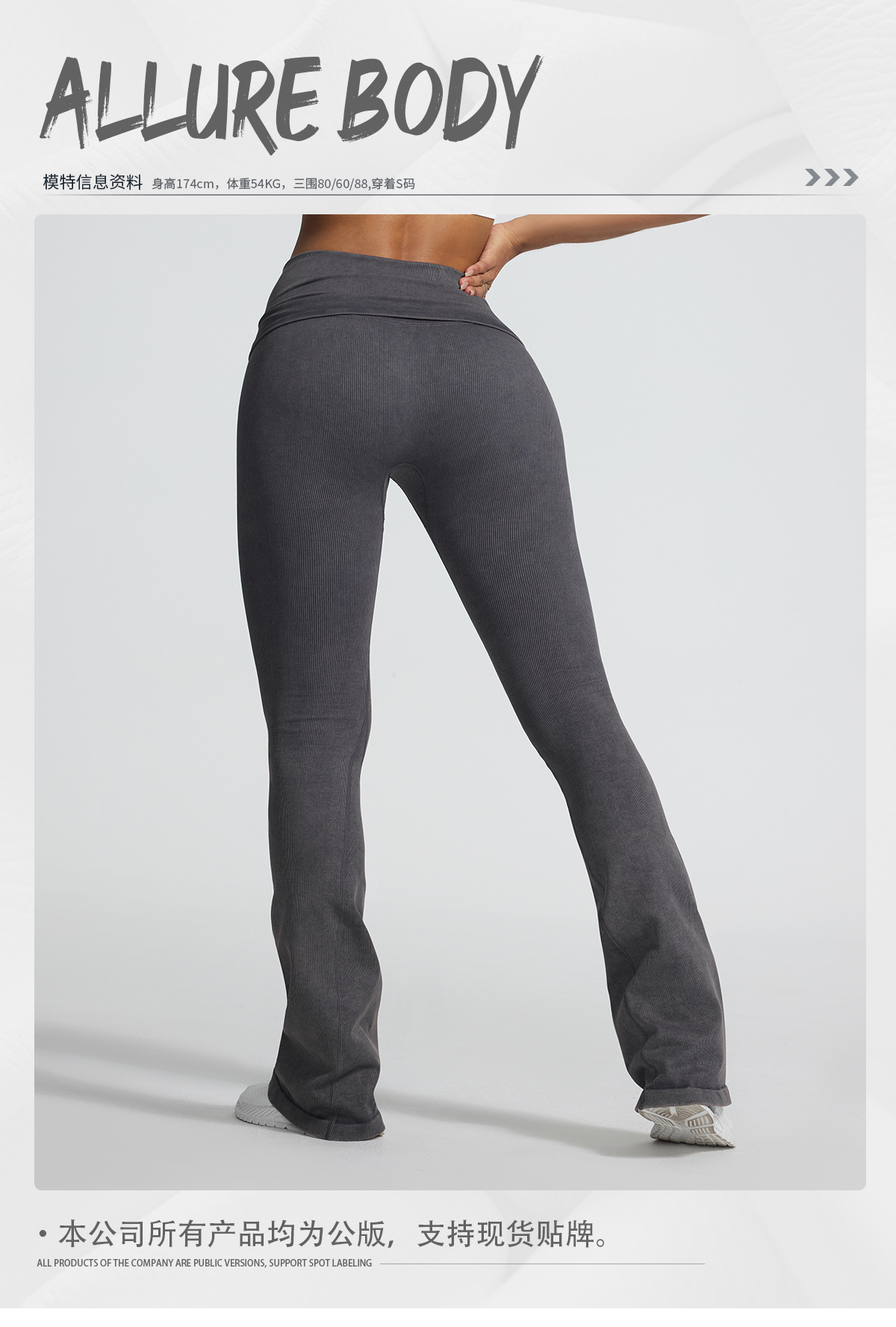 국경 간 유럽과 미국 원활한 모래 세척 허리 요가 바지 높은 탄성 슬림 슬림 피트니스 바지 여성 스포츠 벨 바지