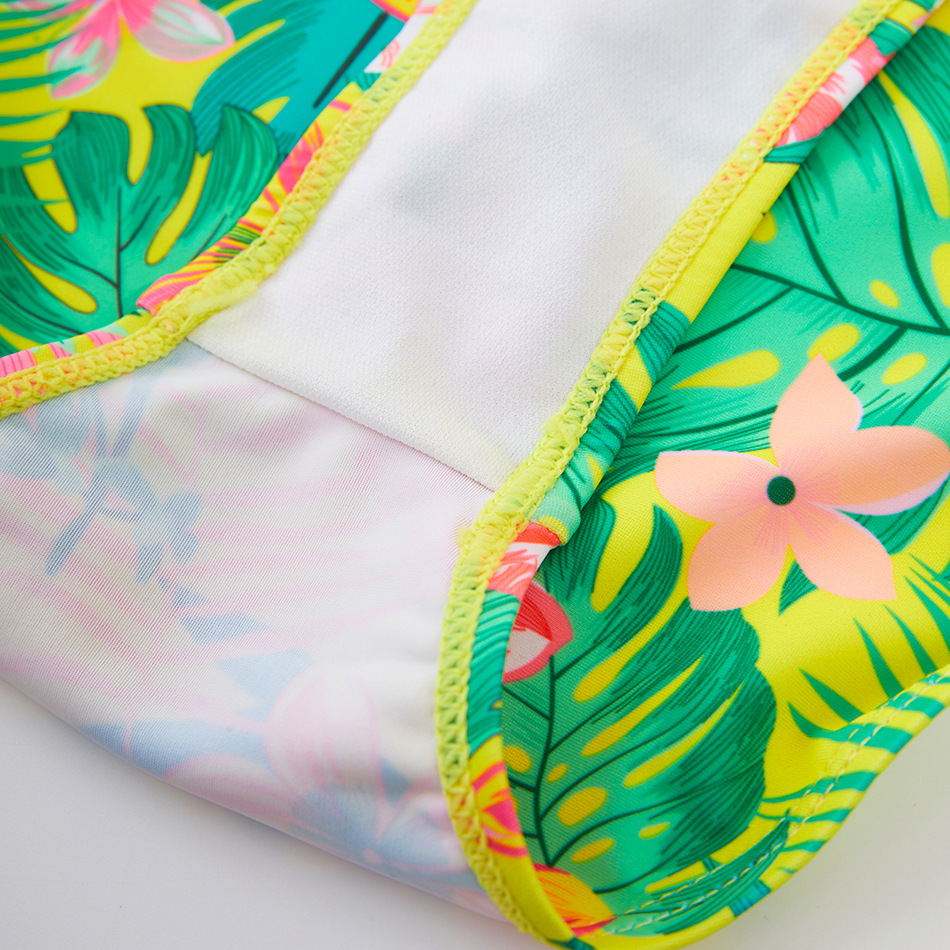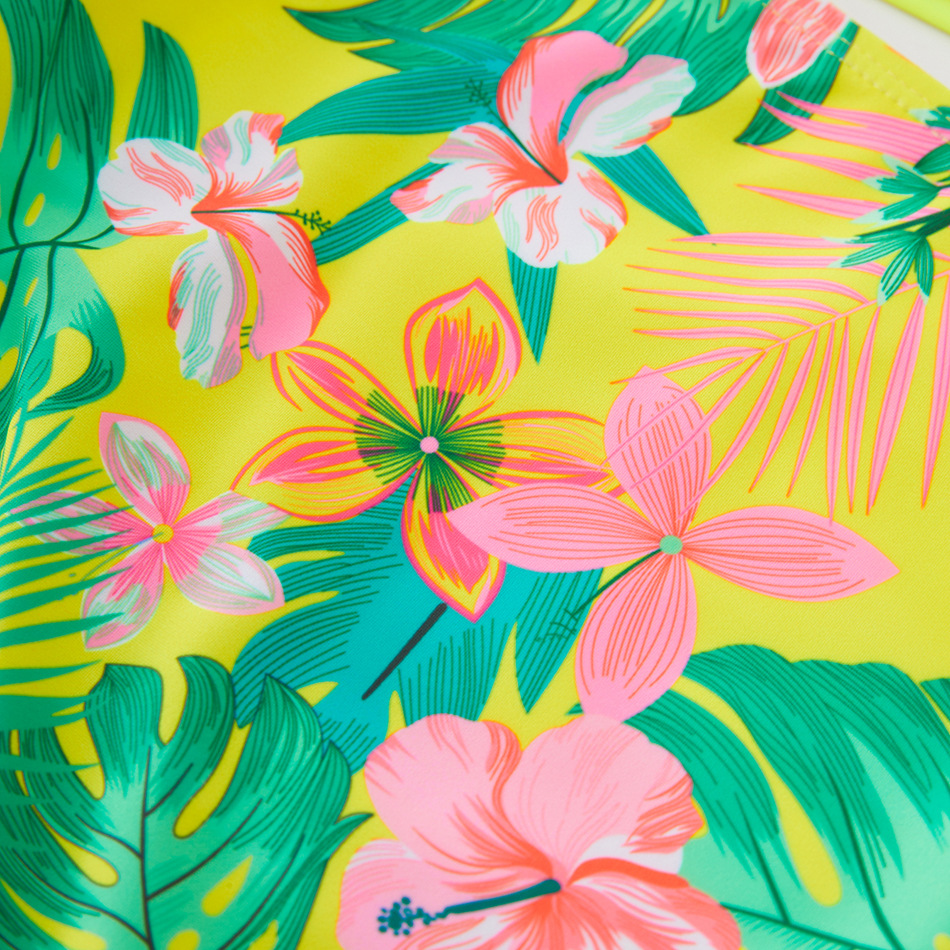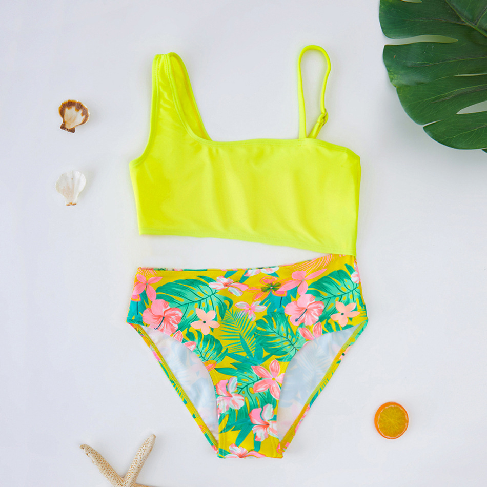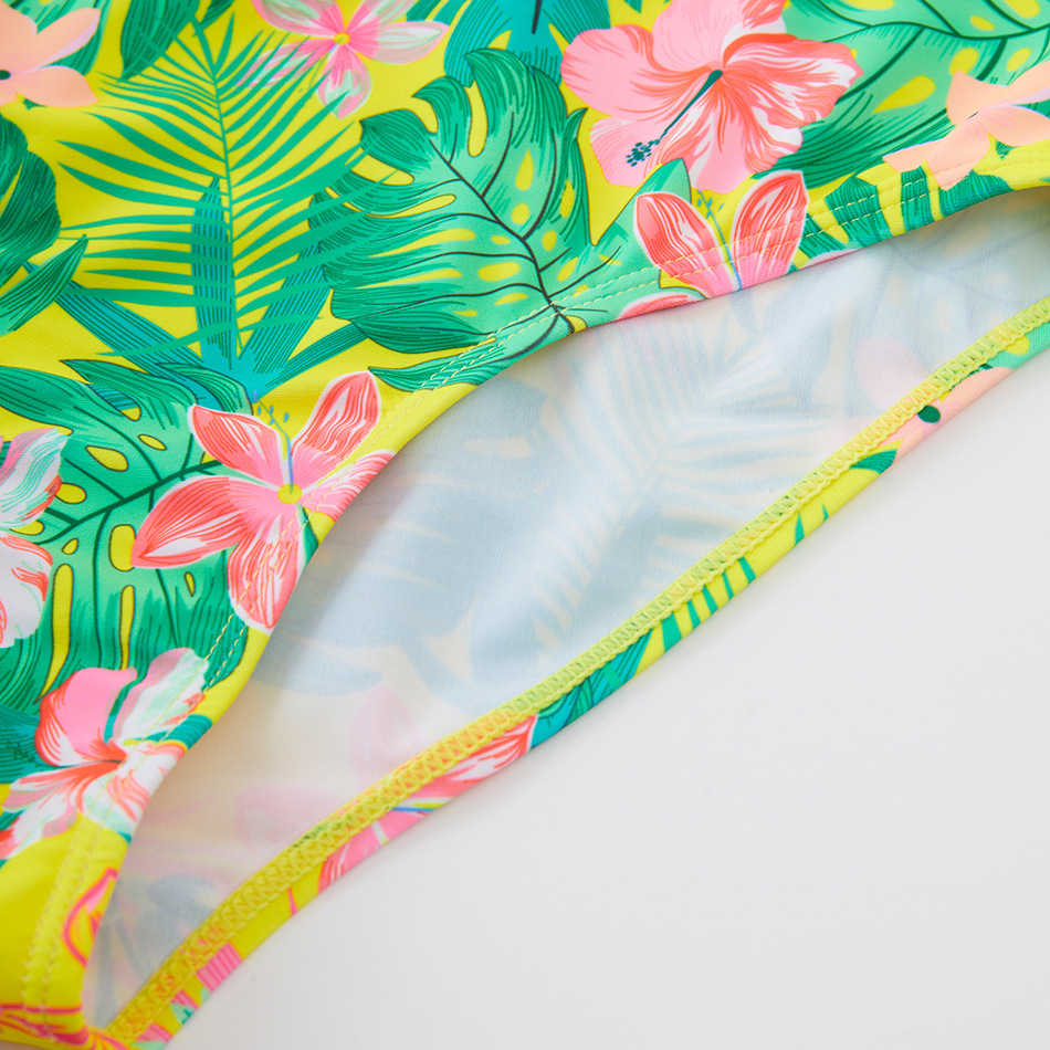 2025 새로운 여자 원피스 수영복 노란색 꽃 누출 허리 큰 어린이 원피스 수영복스토어 가기
