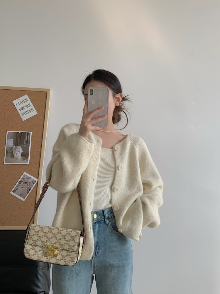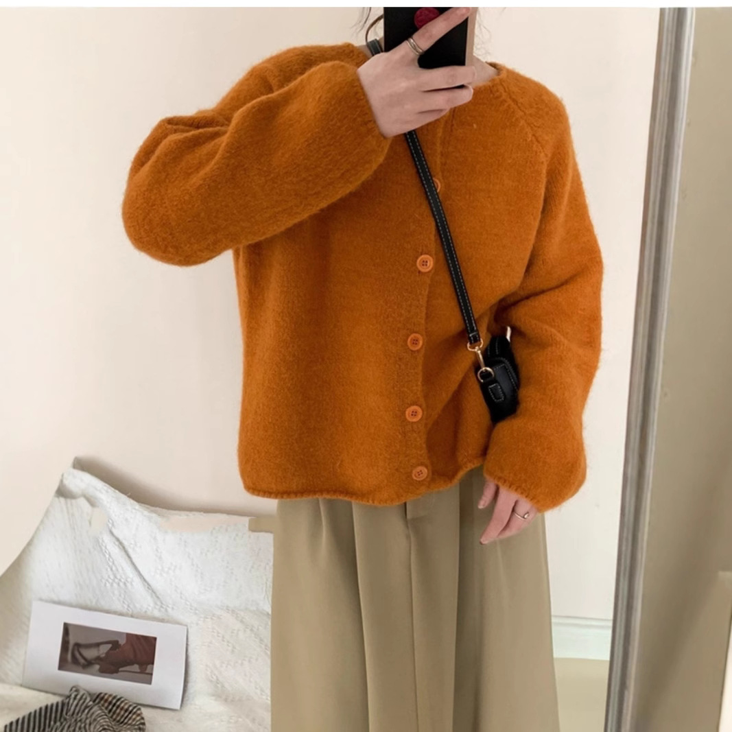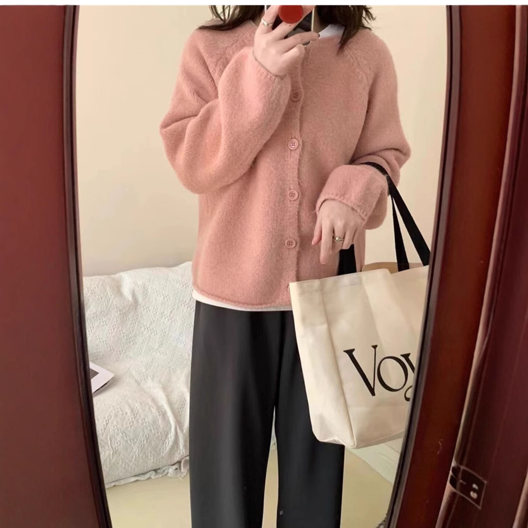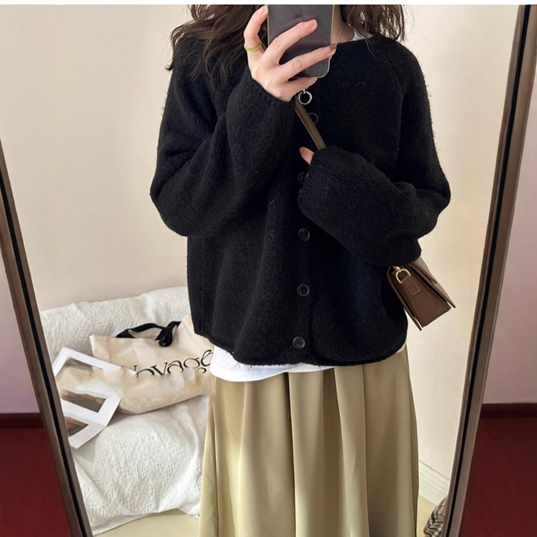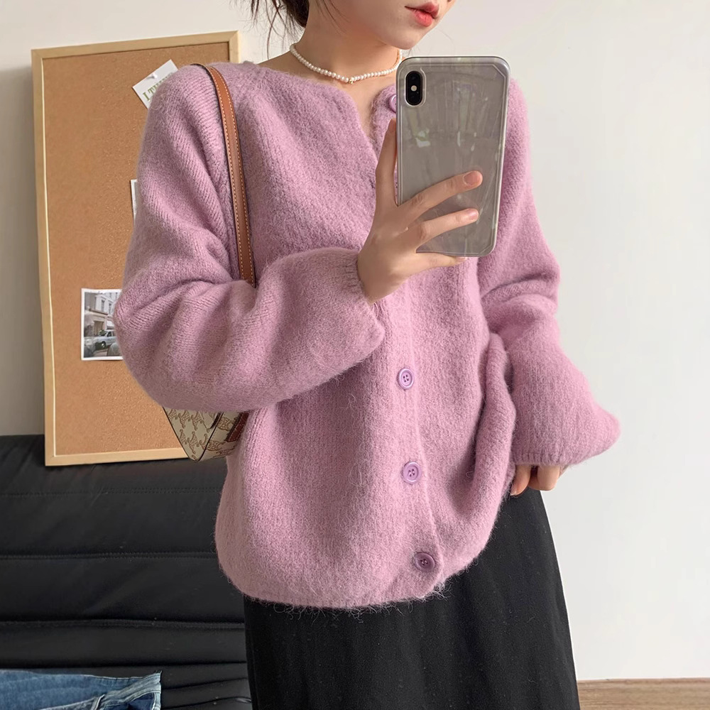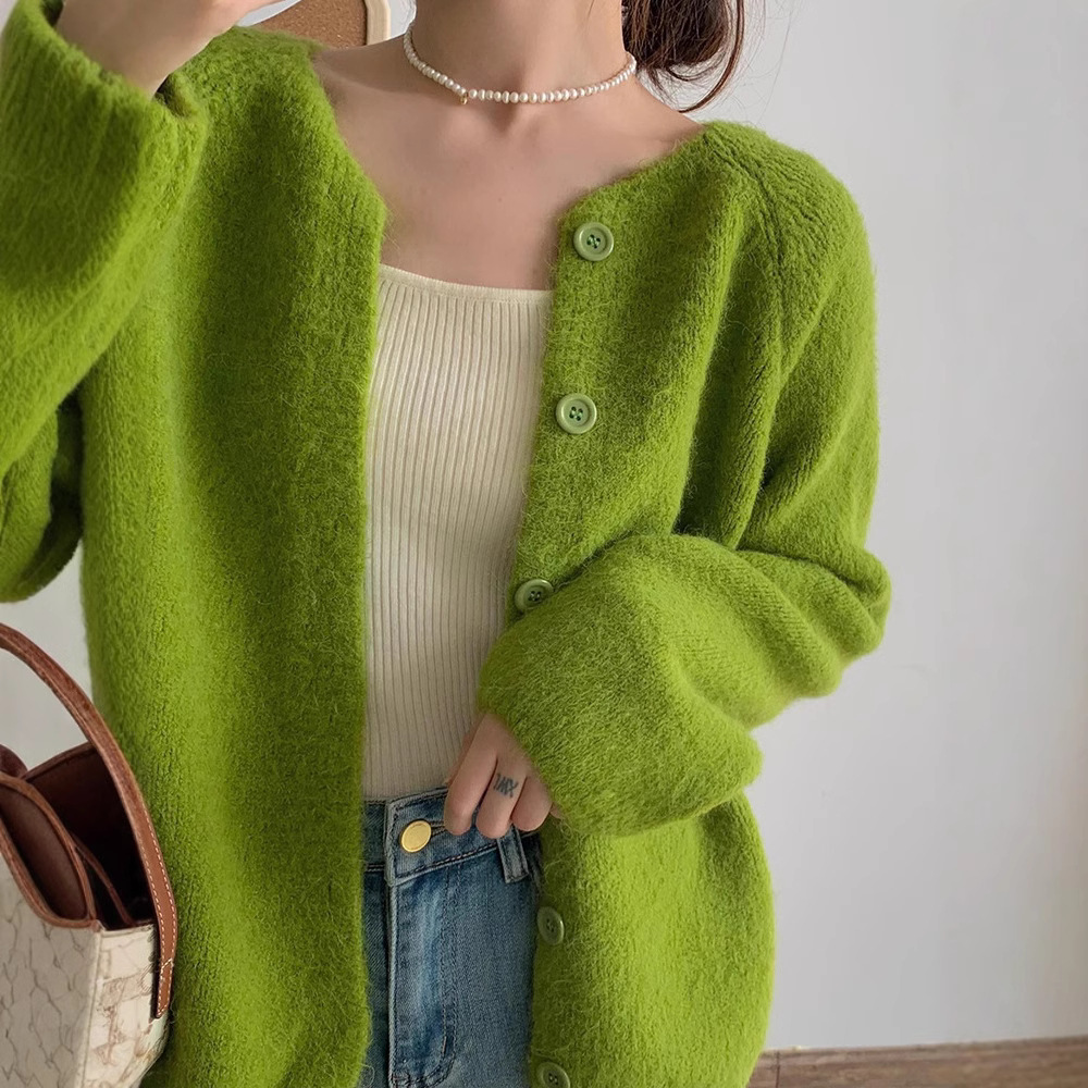 한국 스타일 소프트 왁스 니트 카디건 최고의 여성 봄과 가을 2025 새로운 느슨한 라운드 넥 긴 소매 단색 스웨터 코트 여성스토어 가기