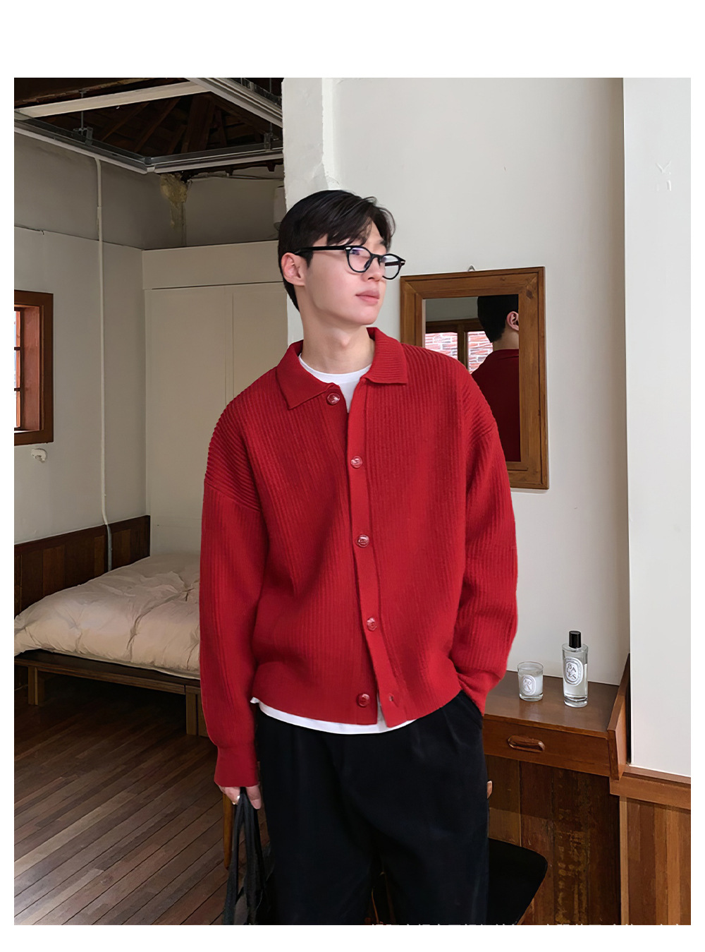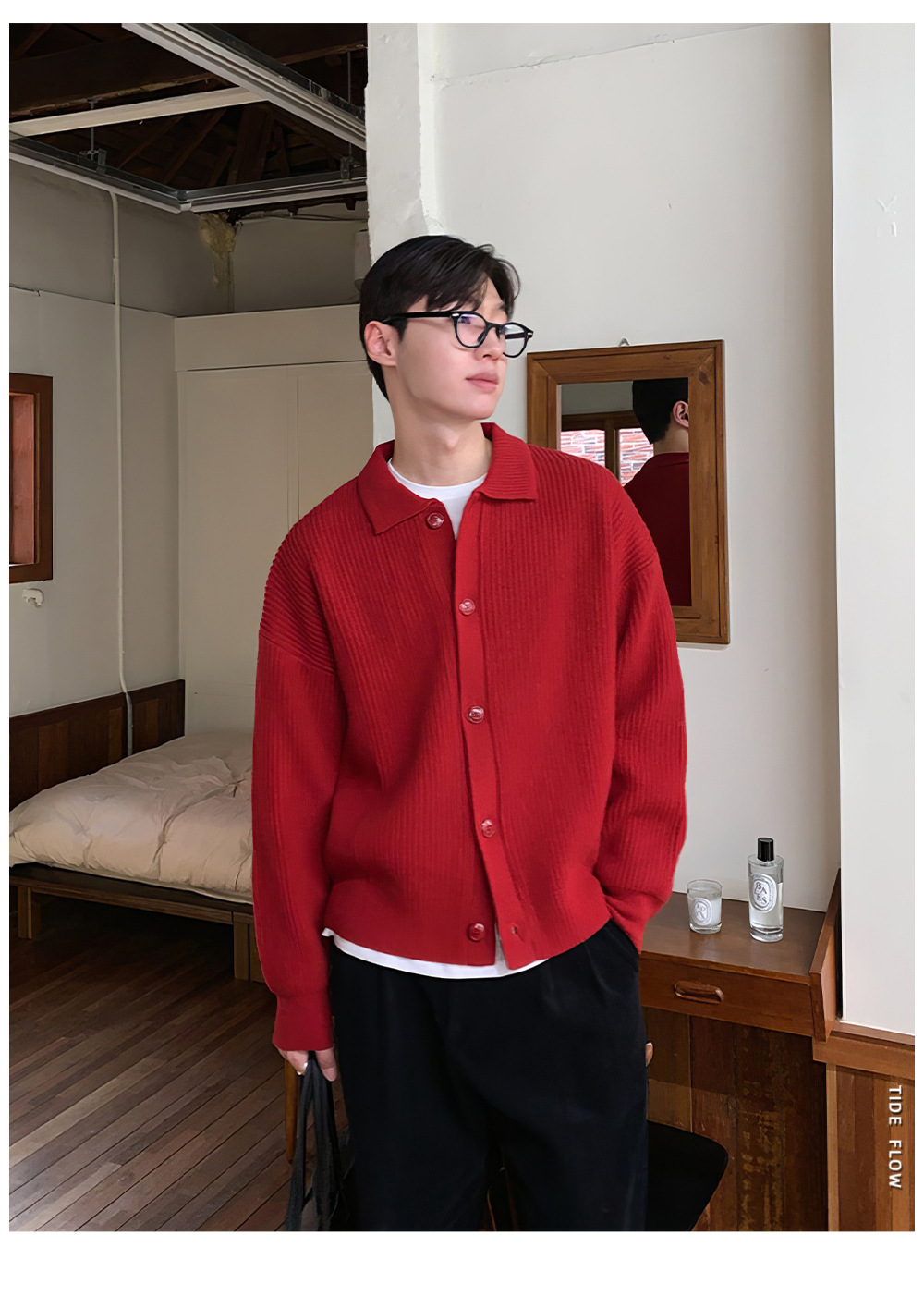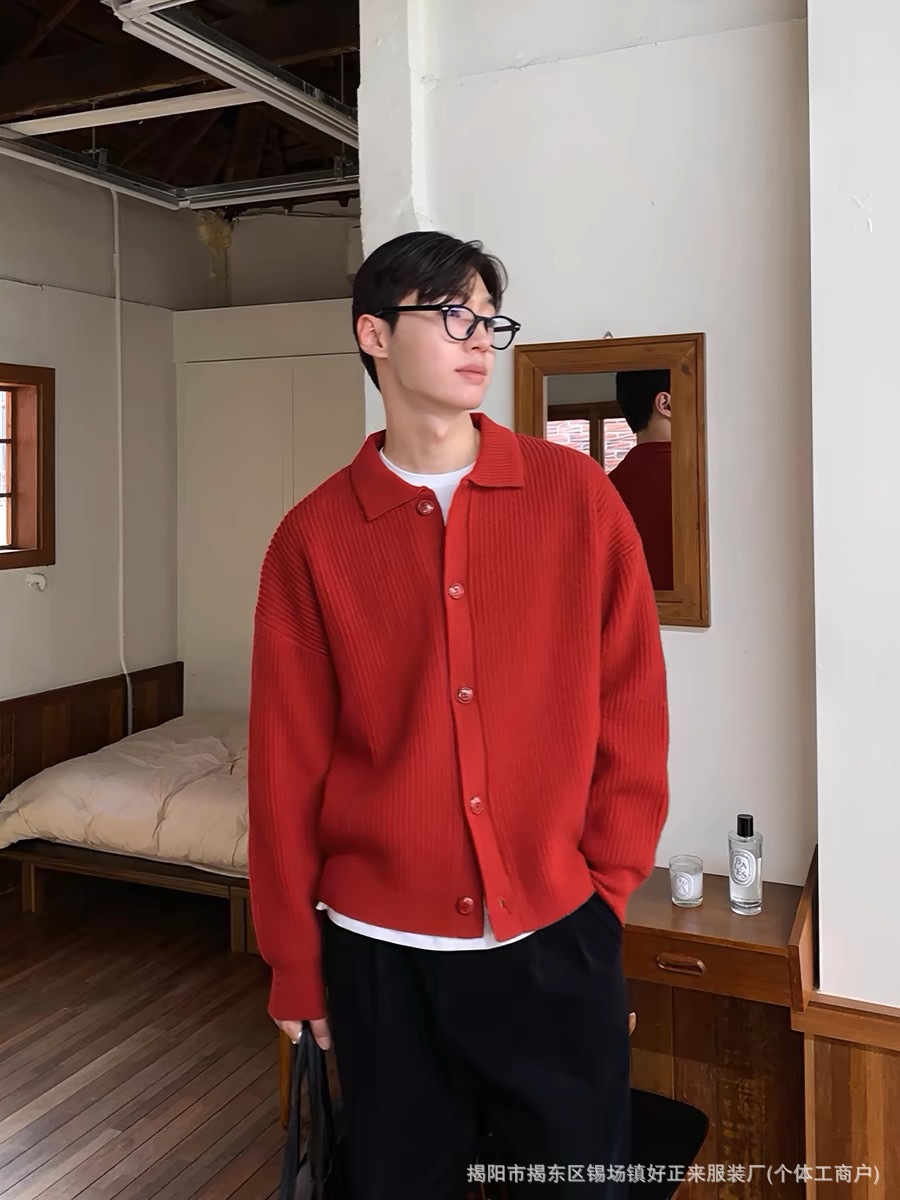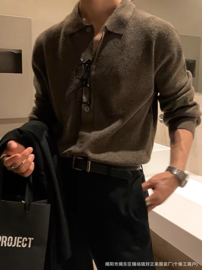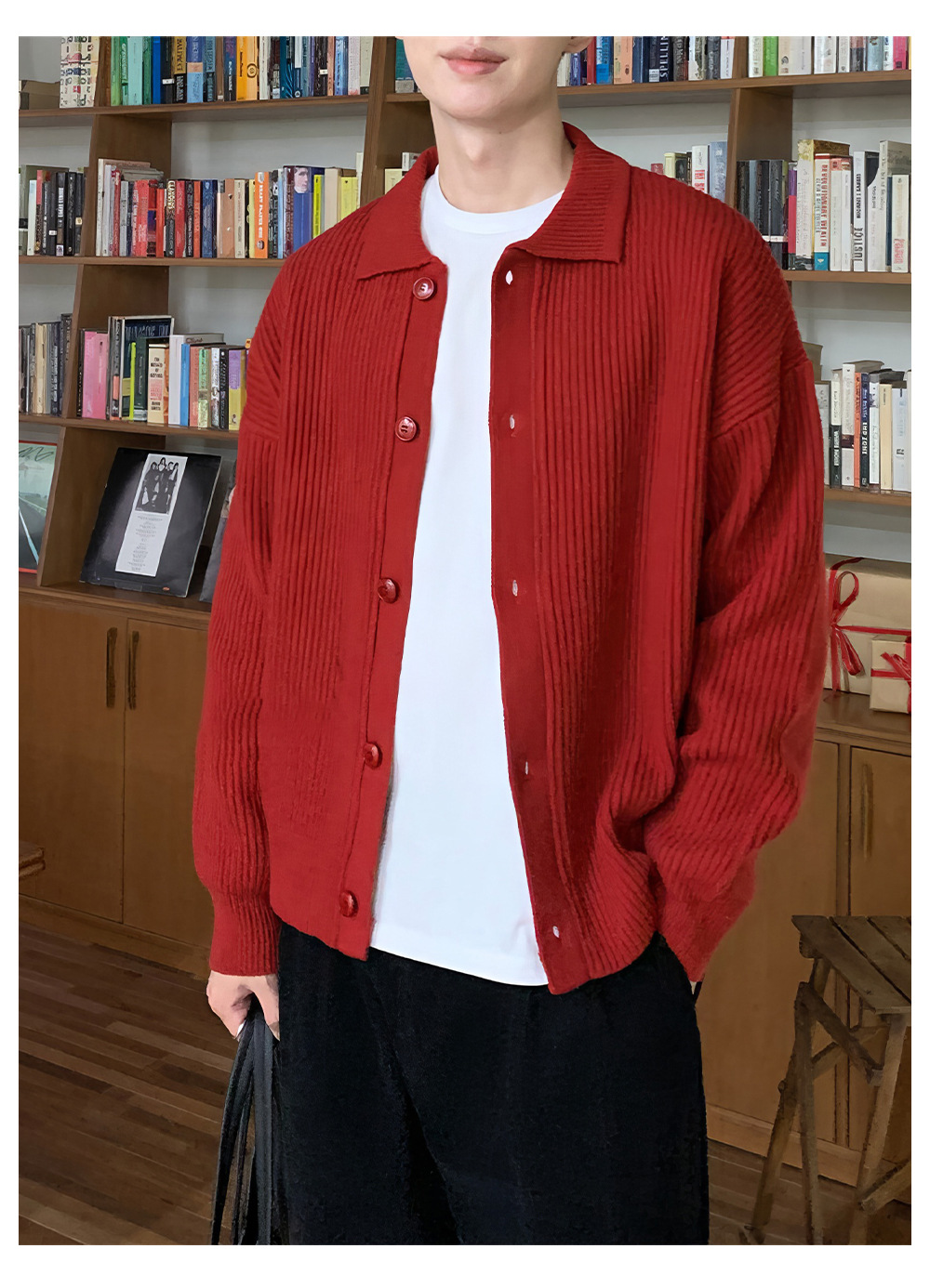 소스 가을과 겨울 두꺼운 스웨터 재킷 남자의 단색 느슨한 잘 생긴 게으른 스타일 니트 카디건 캐주얼 중립 스타일스토어 가기