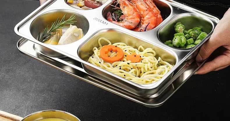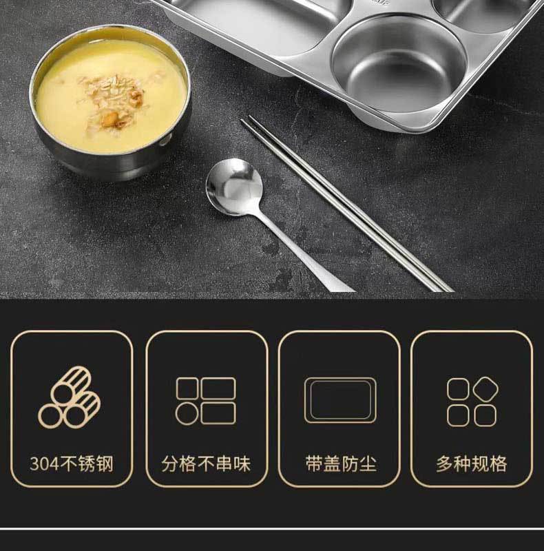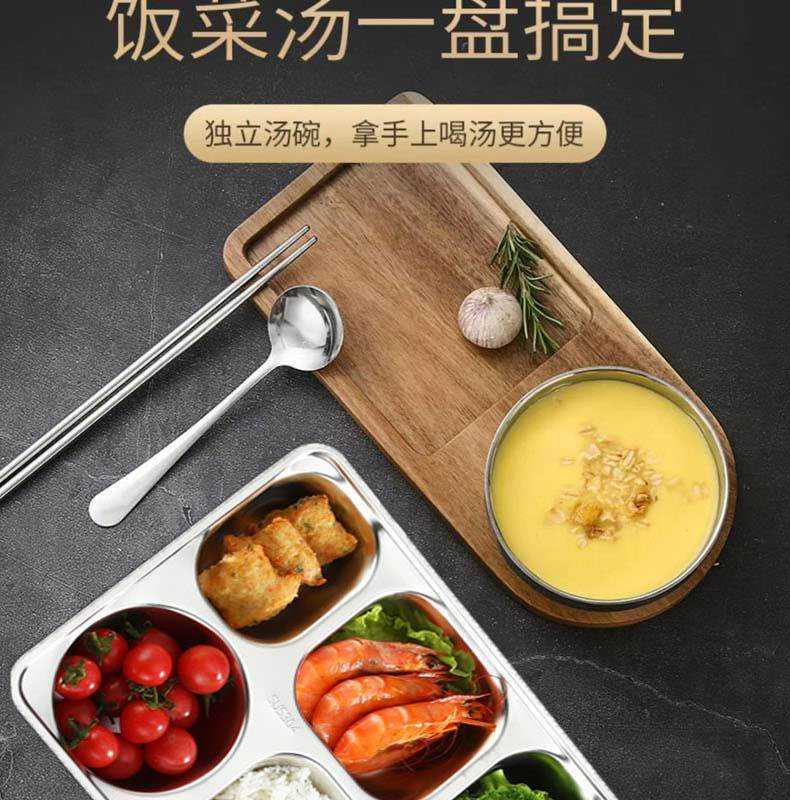 스테인레스 스틸 디너 접시, 학교 구내식당 패스트푸드 접시, 구내식당 학생용 수프 접시, 5칸 분리형, 제조업체 도매스토어 가기