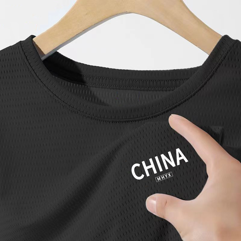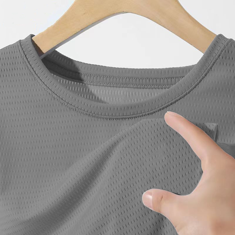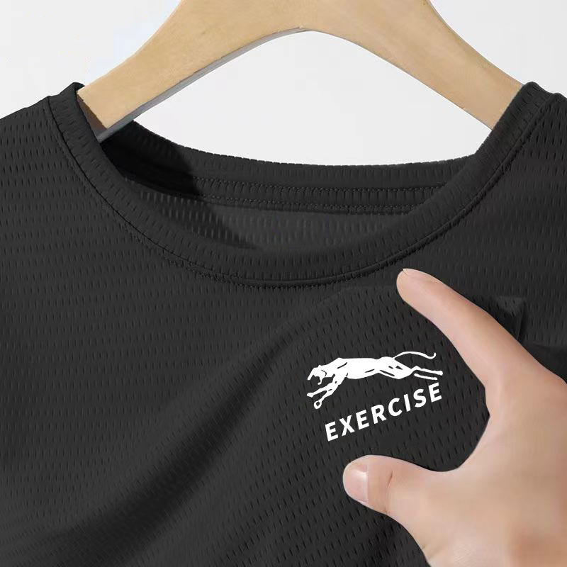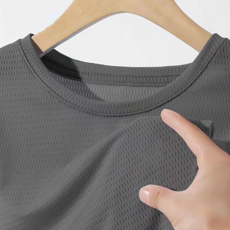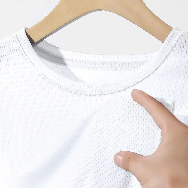 2025 여름 라이트급 피트니스 반팔 티셔츠 남성용 통기성 스웨트 위킹 쿨 스웨터 크루 넥 풀오버 메쉬 T 크로스-보더
